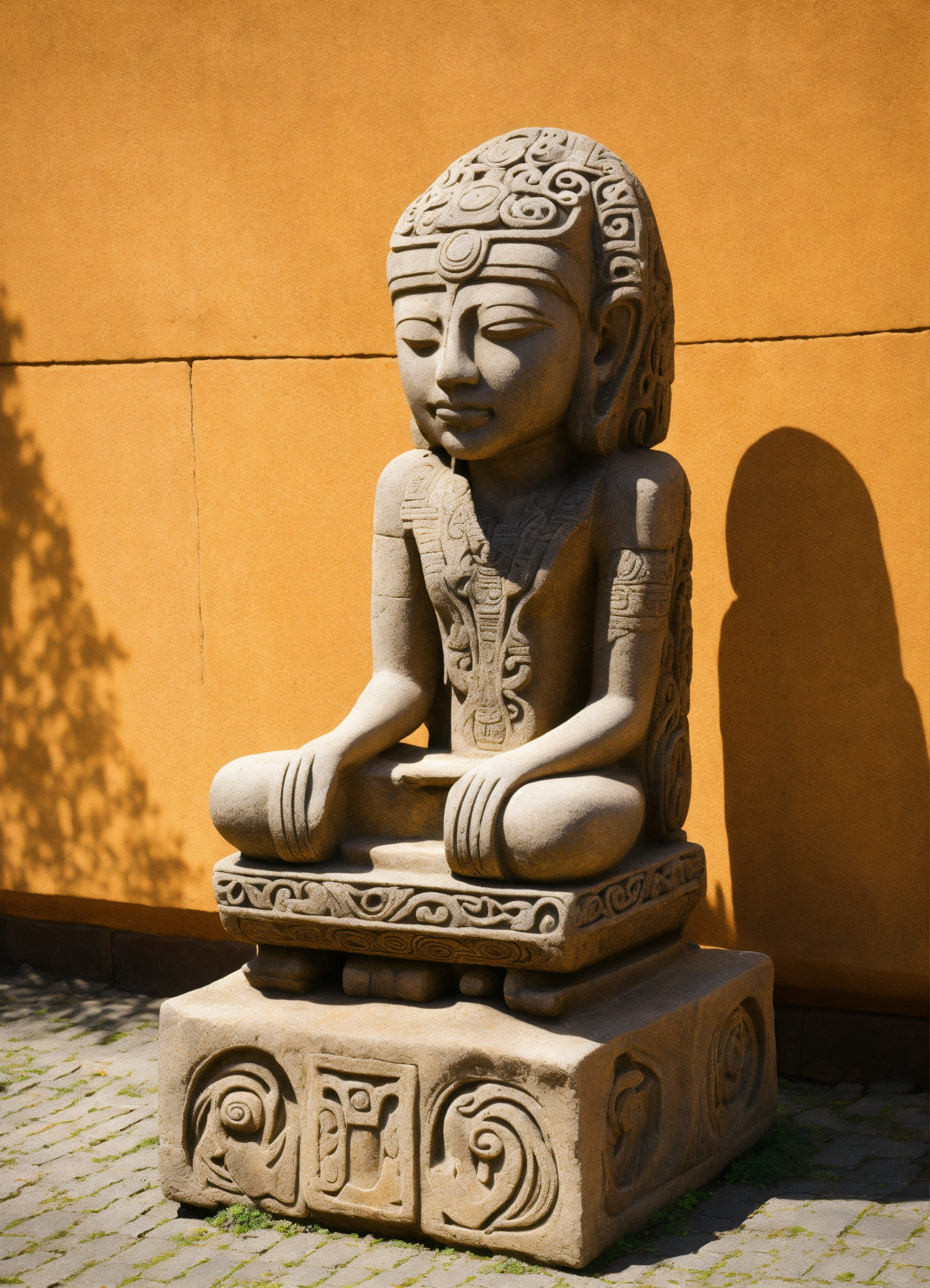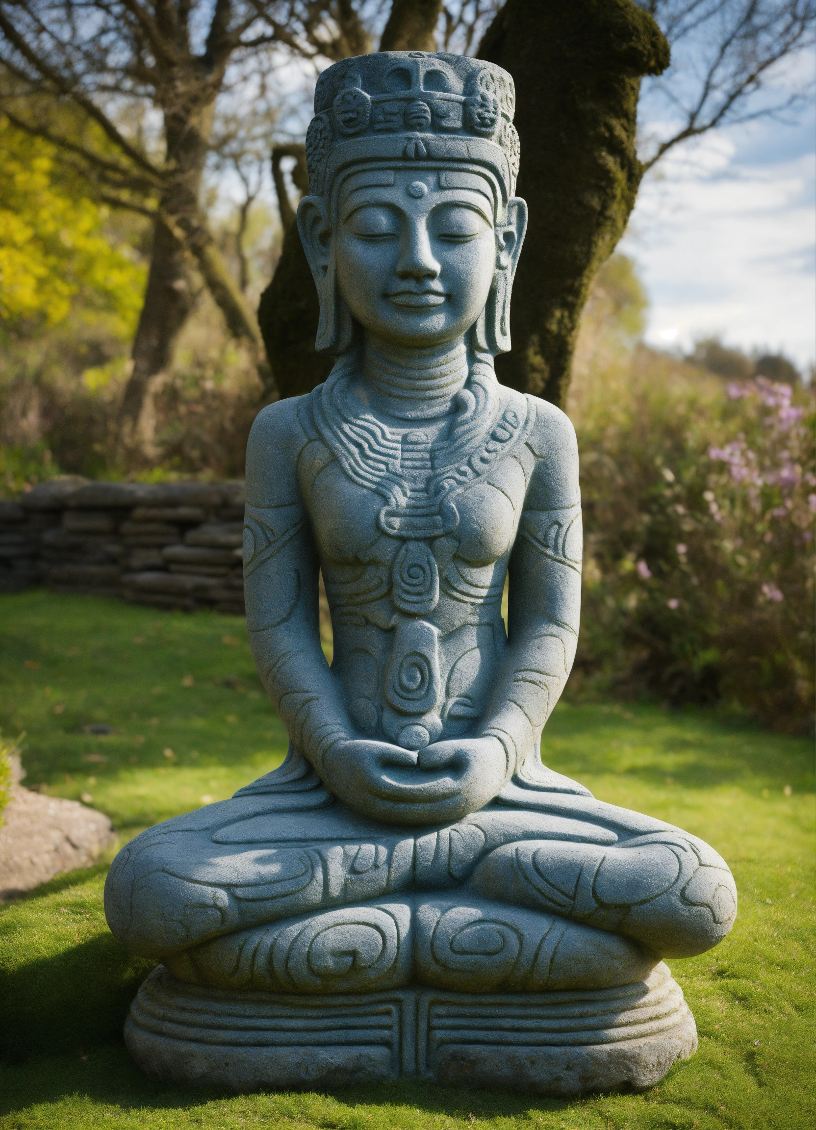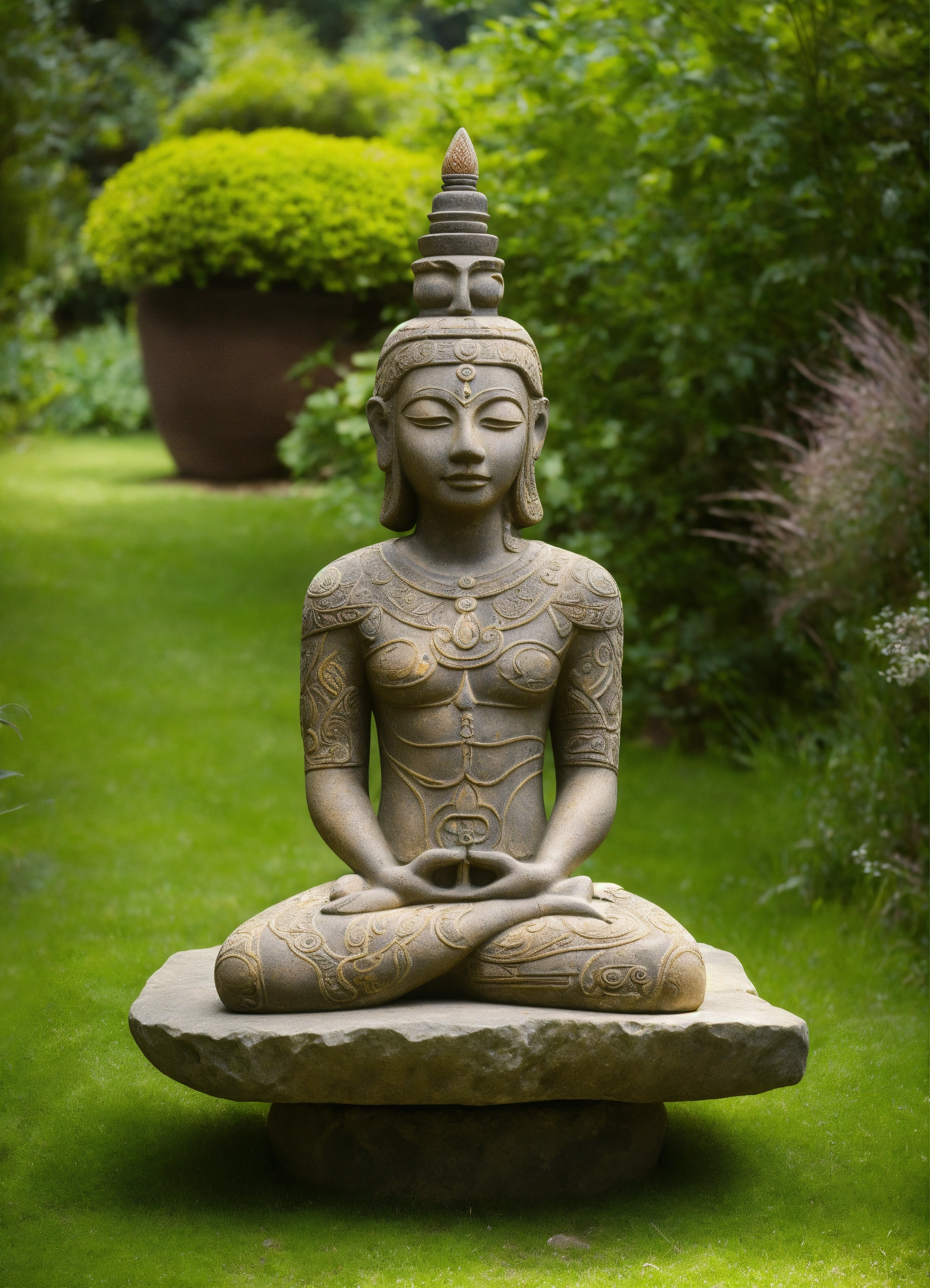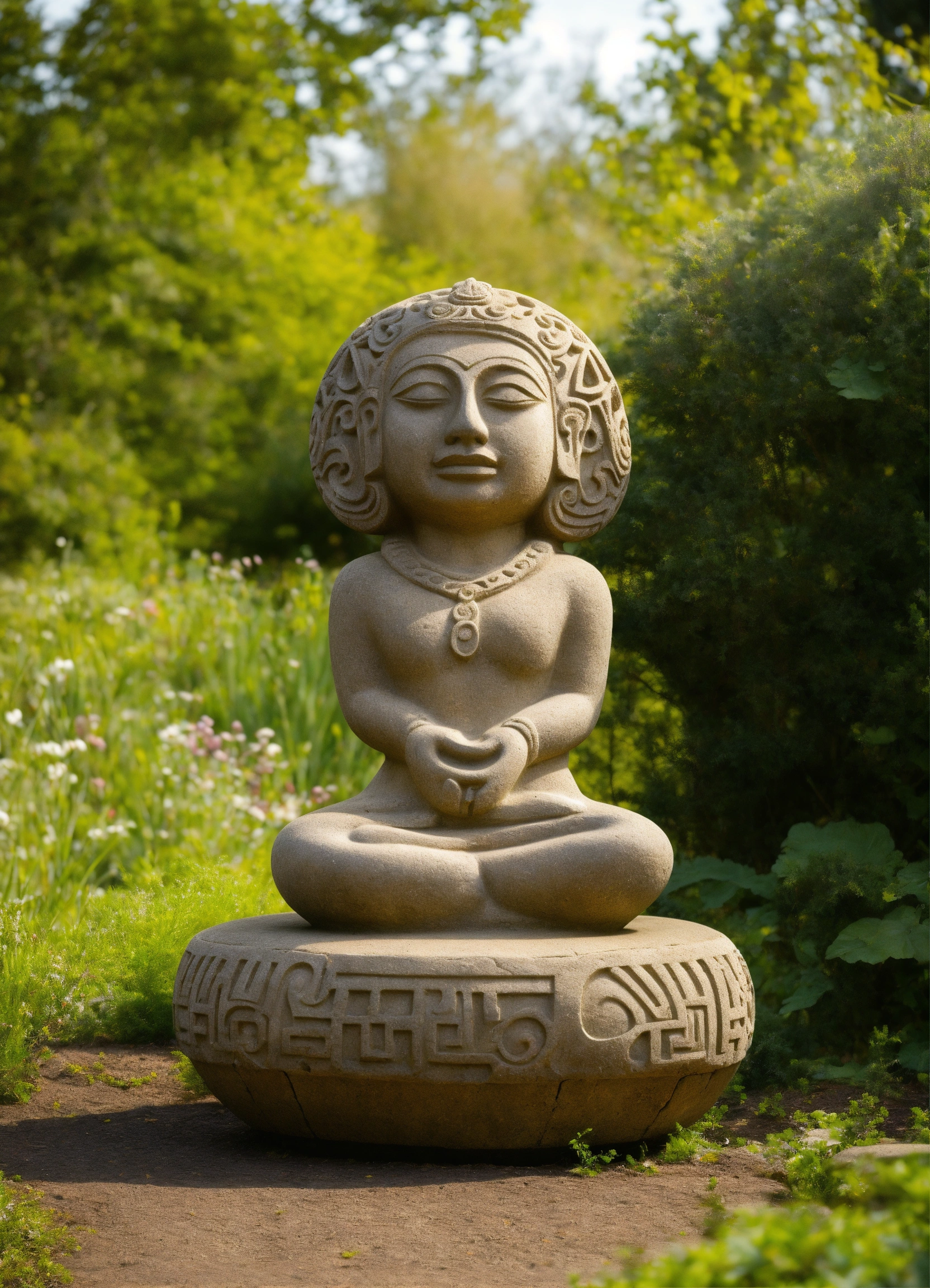 An ancient stone meditative seat totem garden ornament style of alex grey