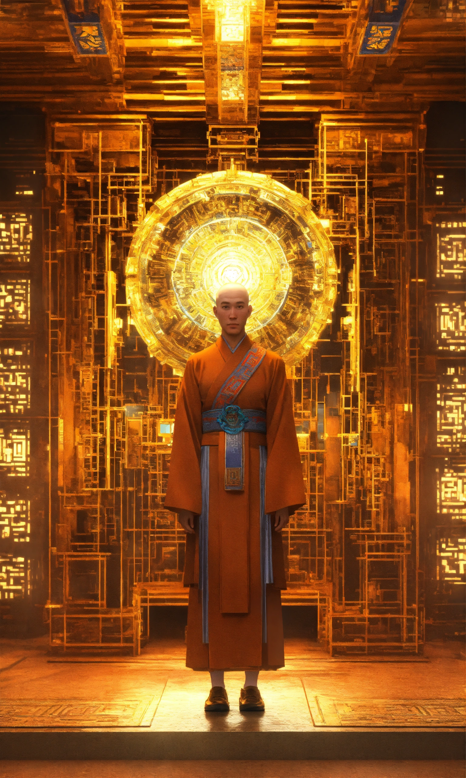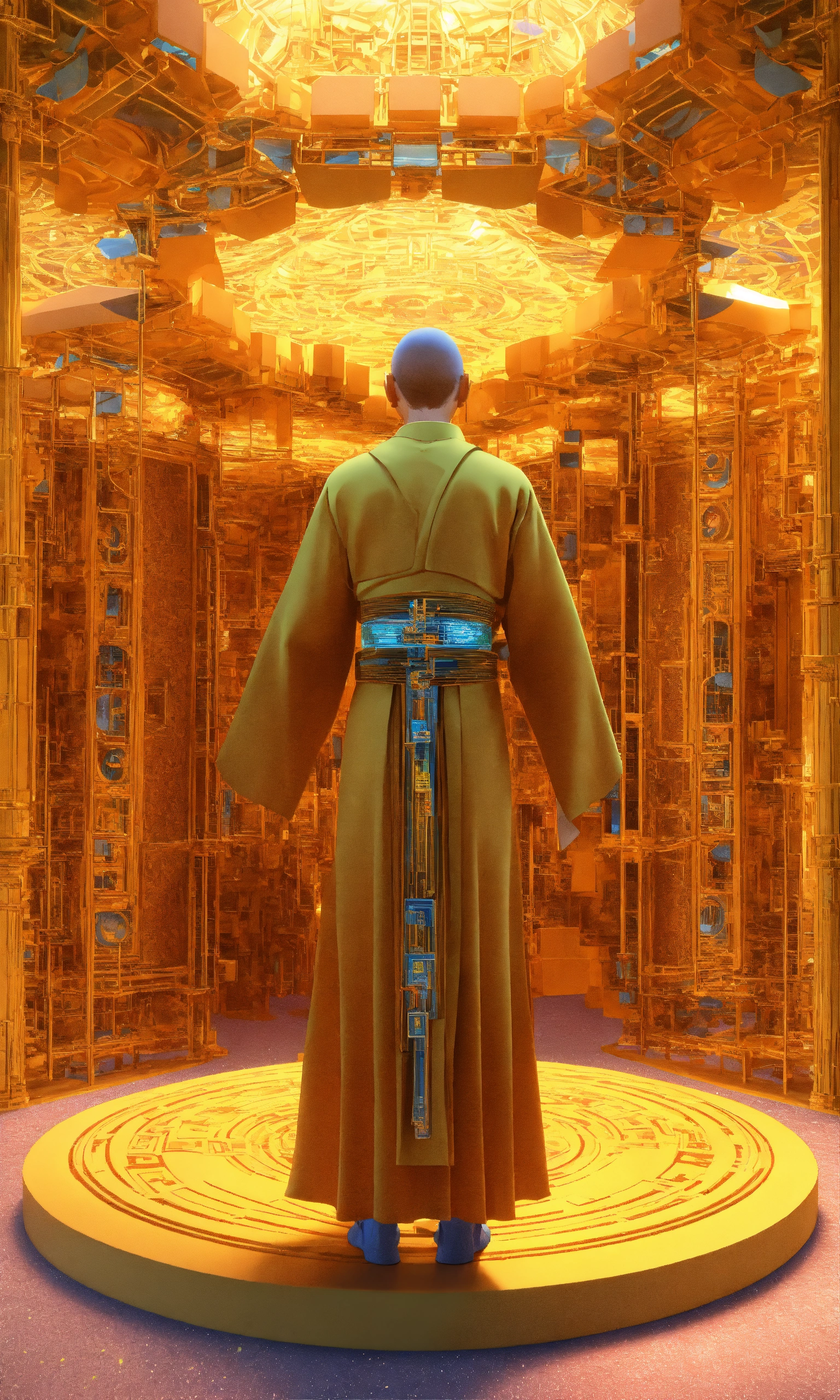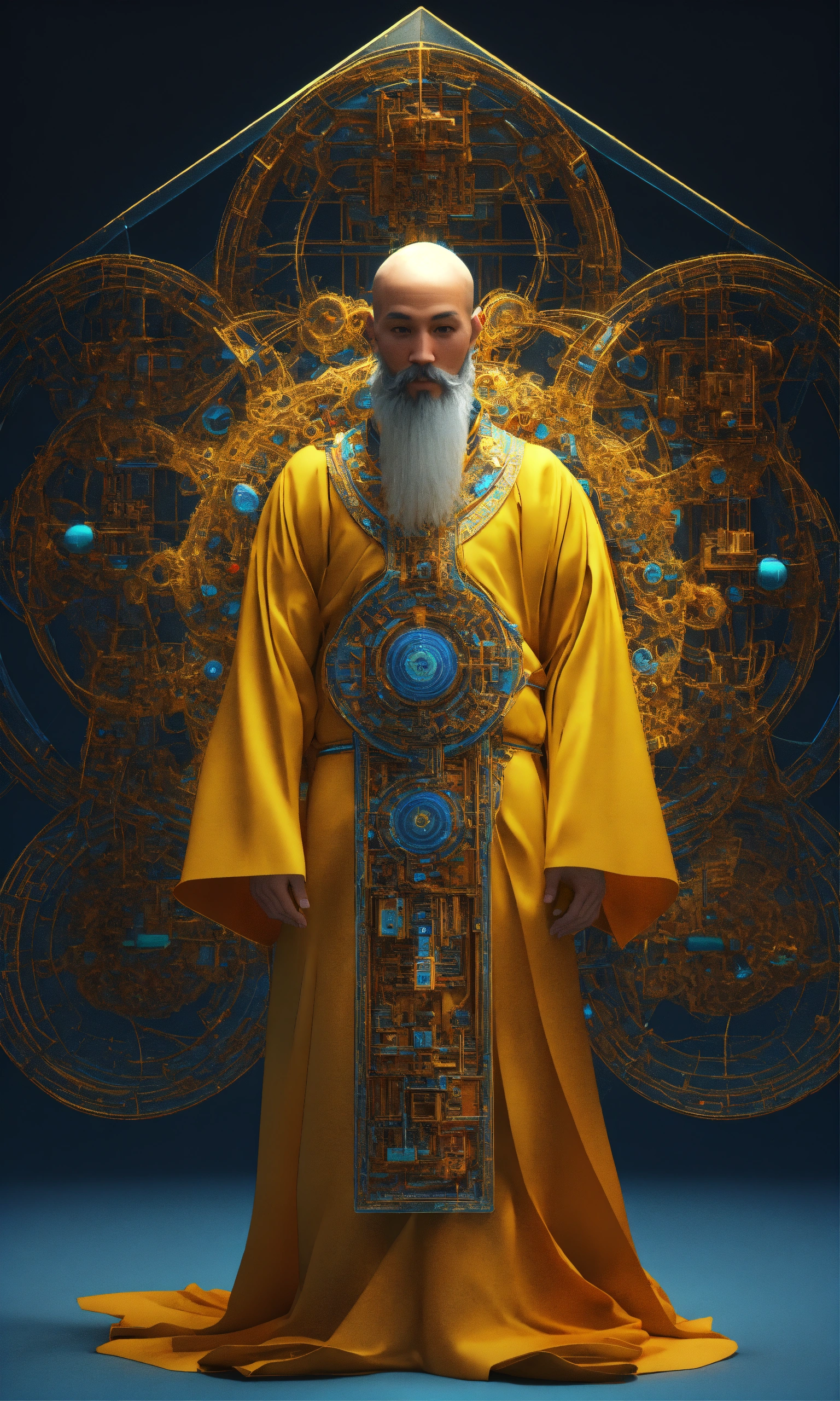 4th dimension complex fractal geometry tesseracts life daoist monk self-transforming machines 3d render
