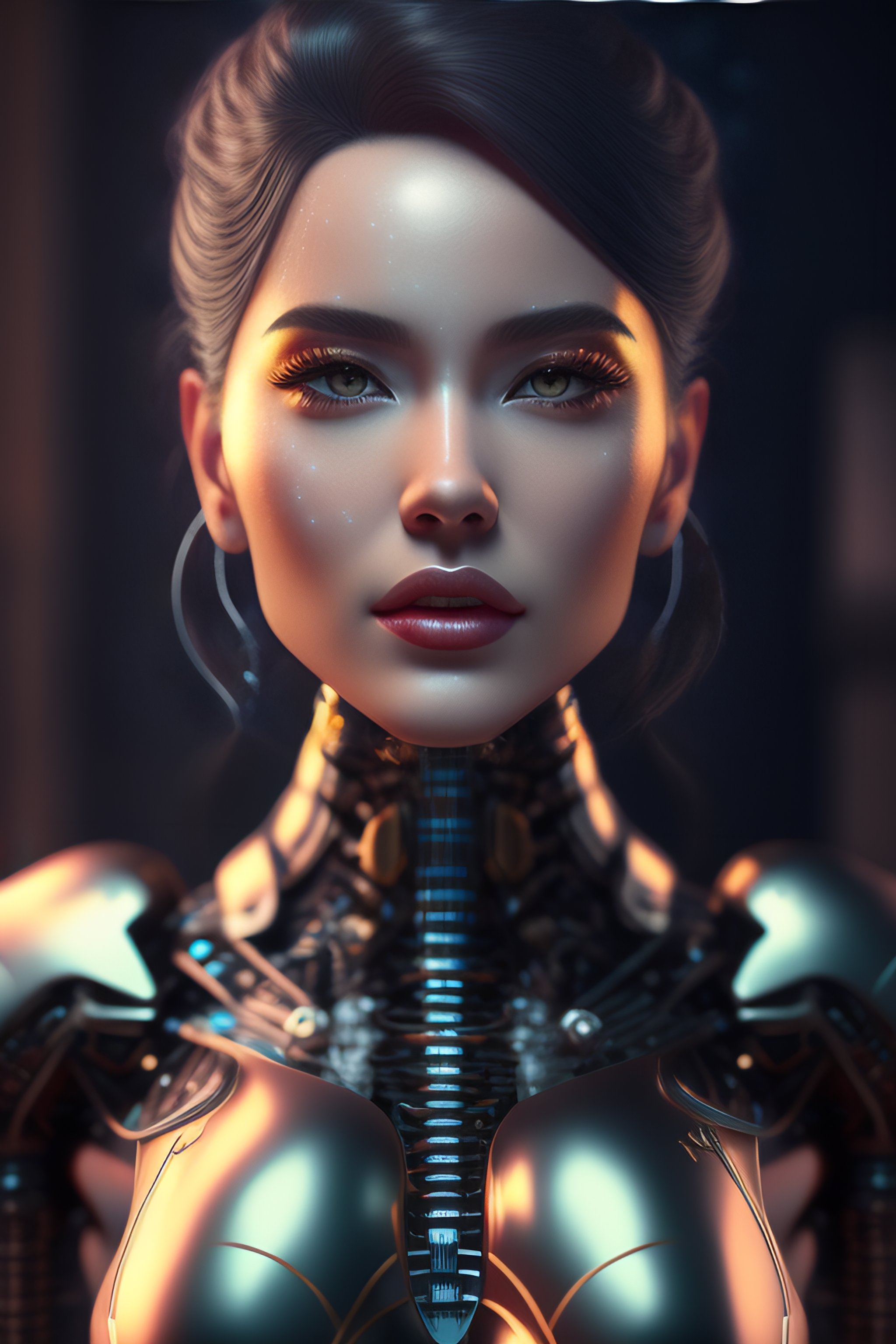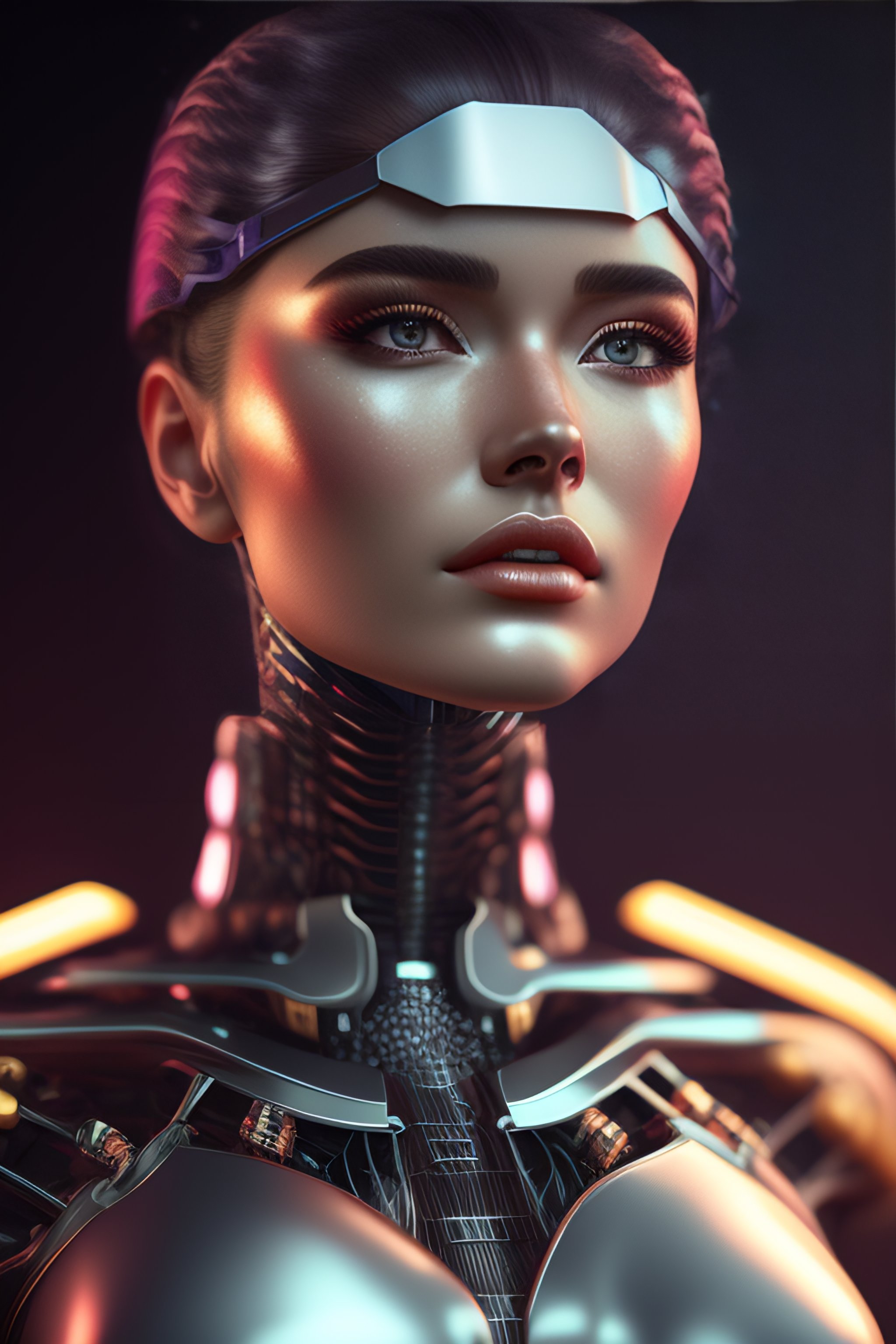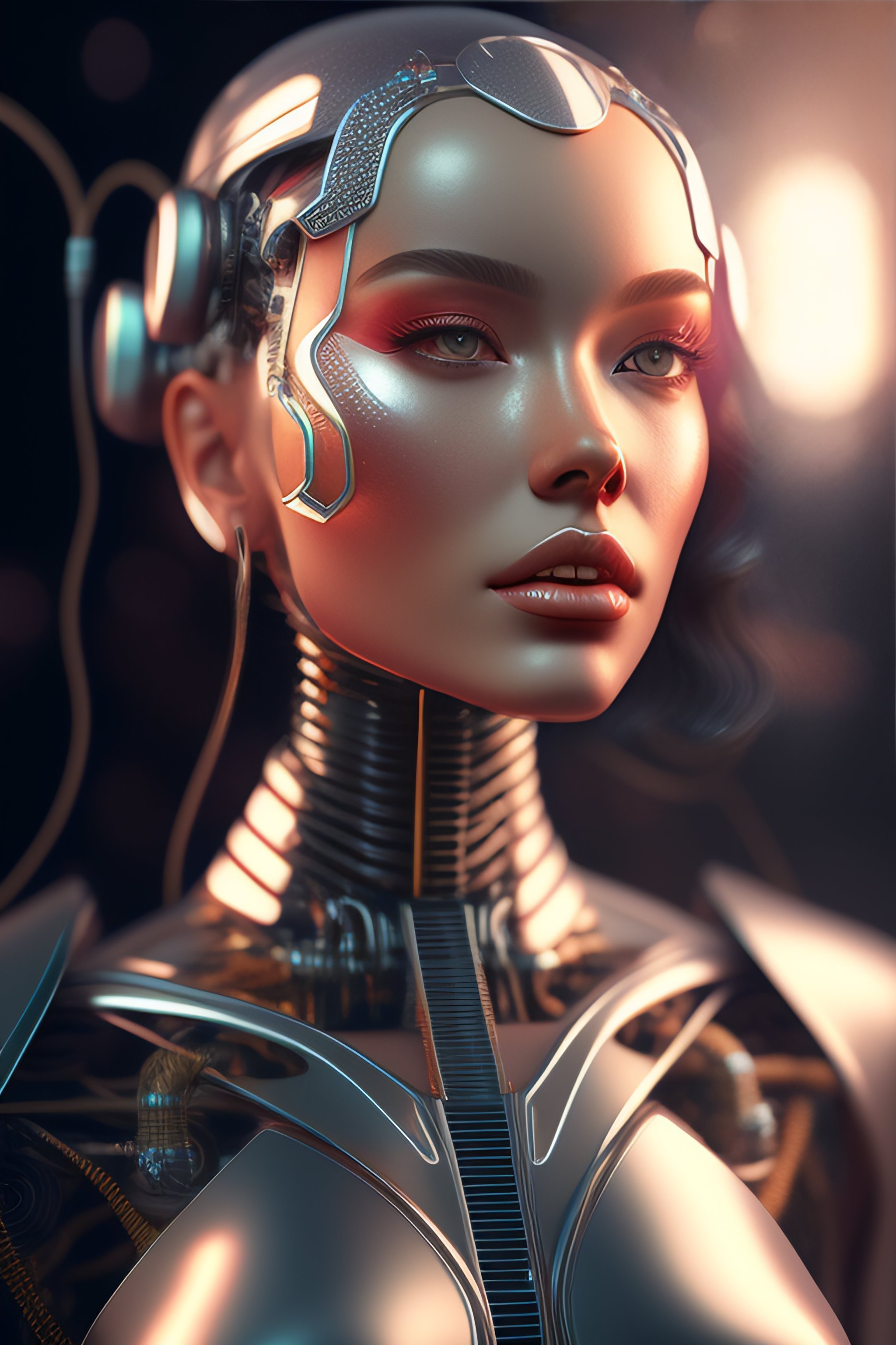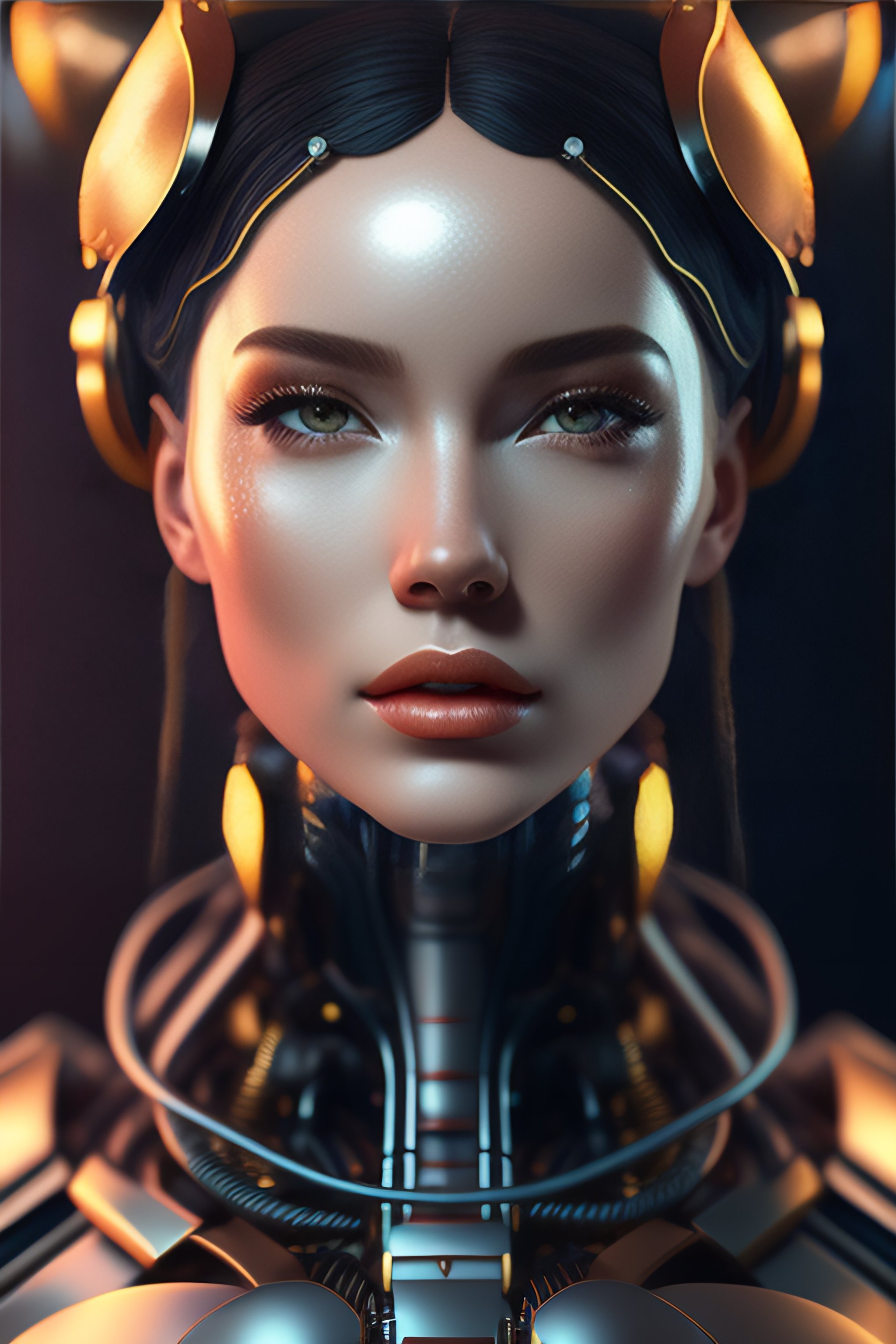 Portrait of a robot girl, enormous lips, transparent neck, porcelain face and head, robotic parts, cyberpunk, cable electric wires, hyperrealistic, fantasy, octane render, intricate, concept art, 8k, professional studio lighting