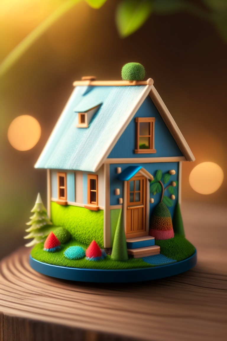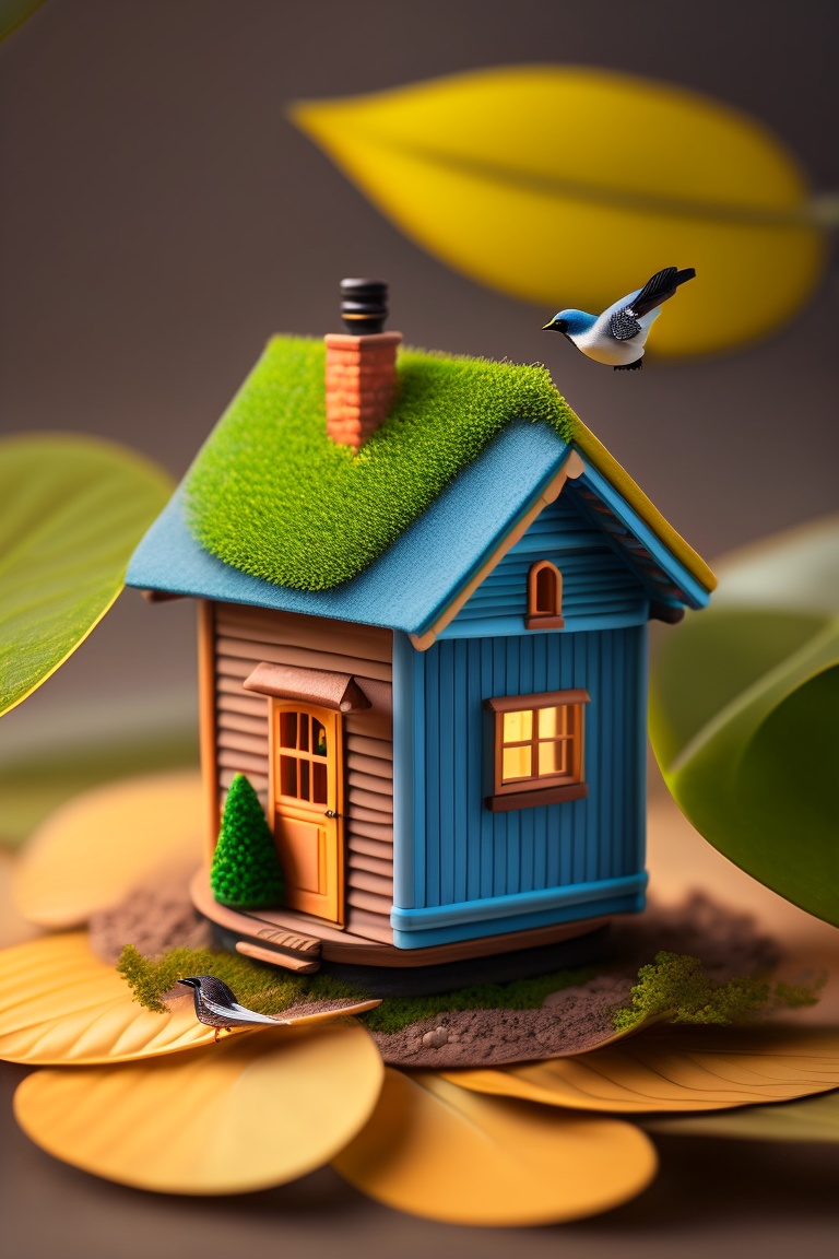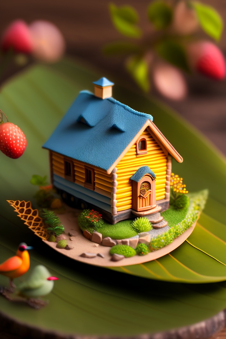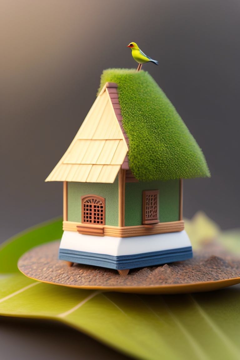 Tiny macro photo of a tiny house on a leaf