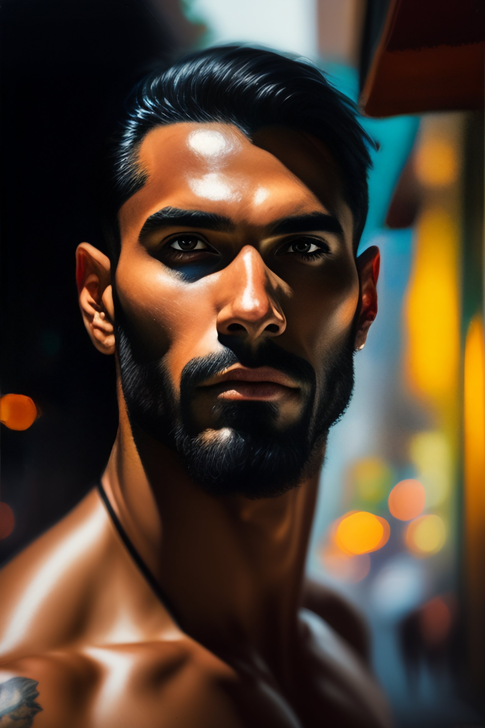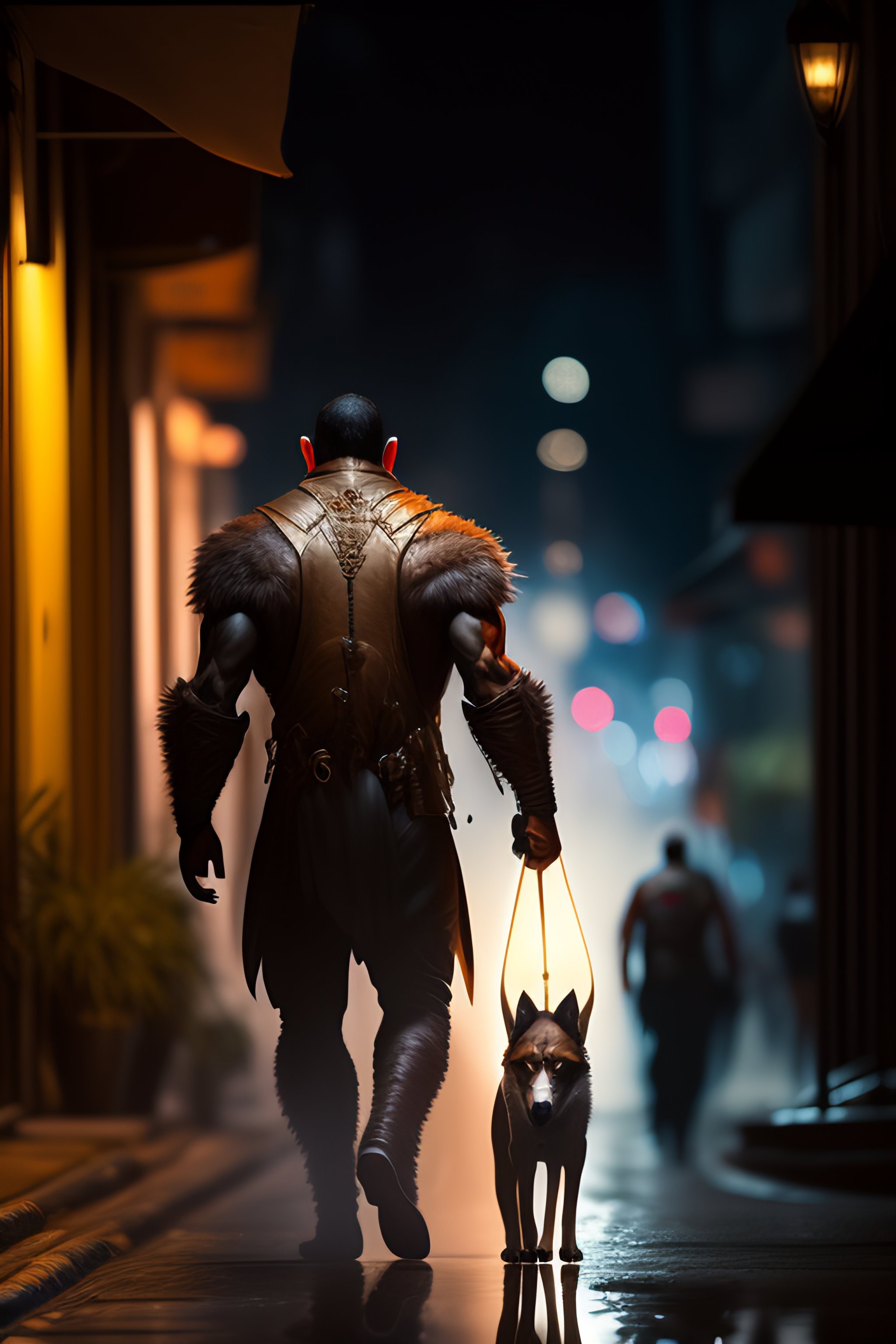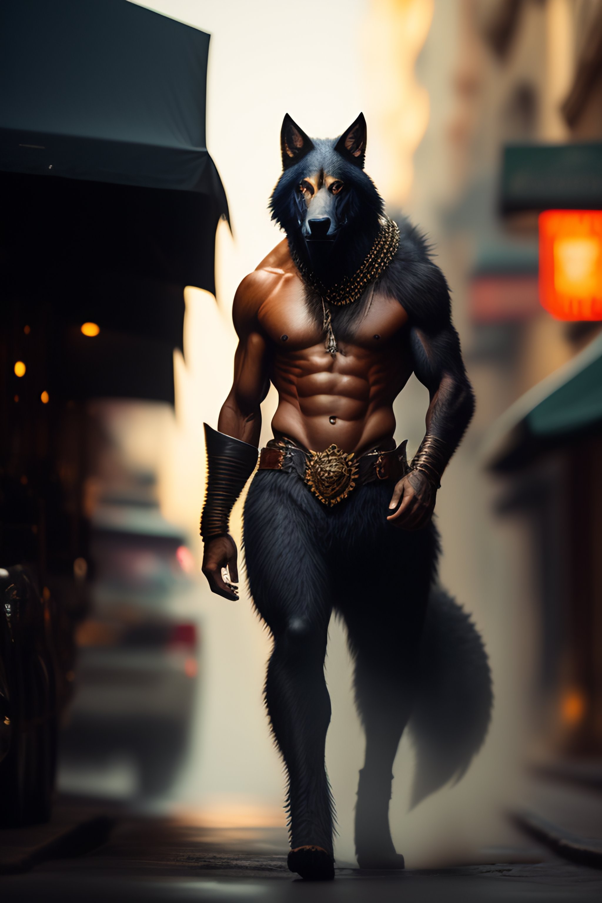A brazilian werewolf walking through the brazil streets, shot body photo, creepy, unsettling, professional majestic oil painting by ed blinkey, atey ghailan, by jeremy mann, greg manchess, antonio moro, trending on artstation, trending on cgsociety, intricate, high detail, sharp focus, dramatic, photorealistic painting art by midjourney and greg rutkowski