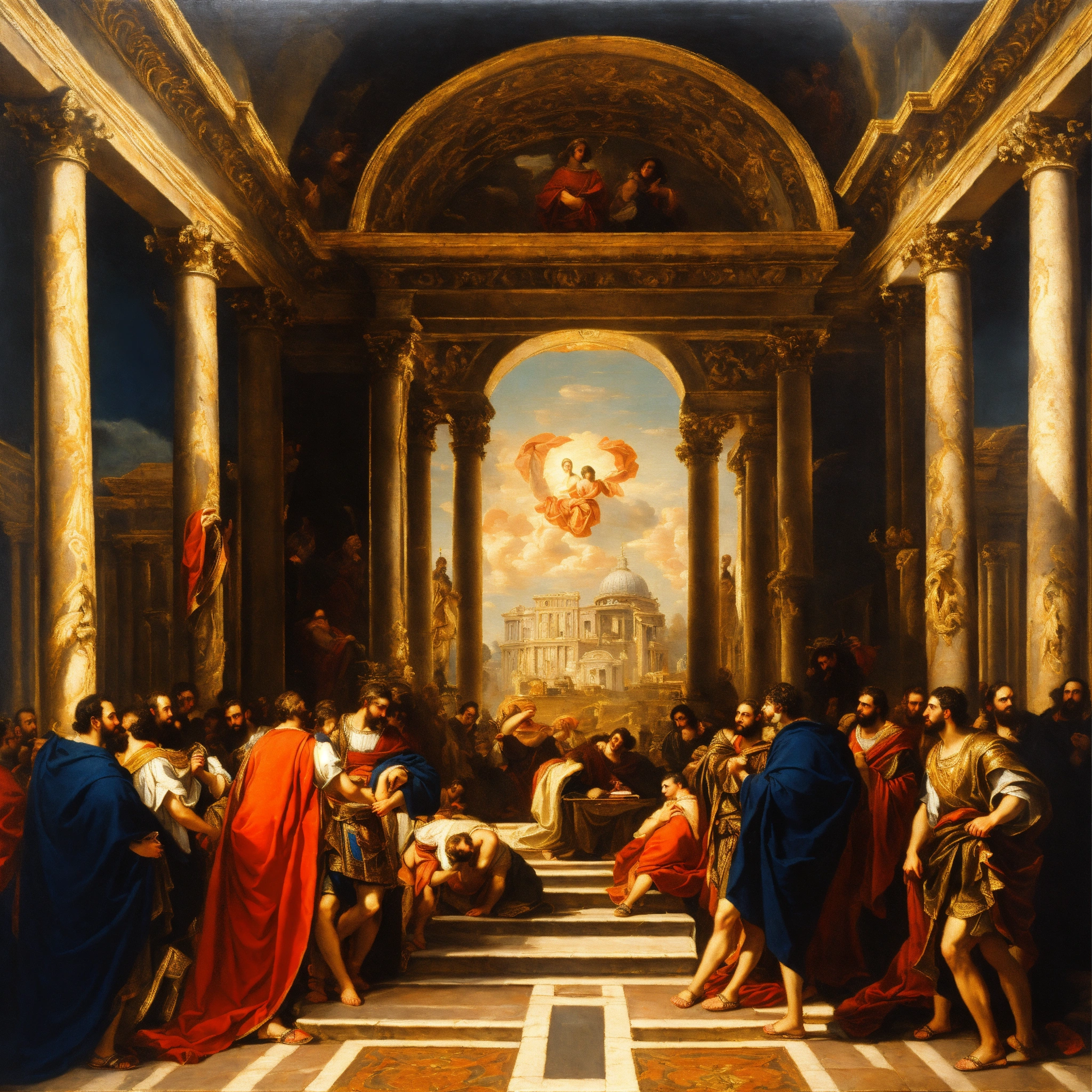 An baroque realistic oil painting of holy scene of roman empire
