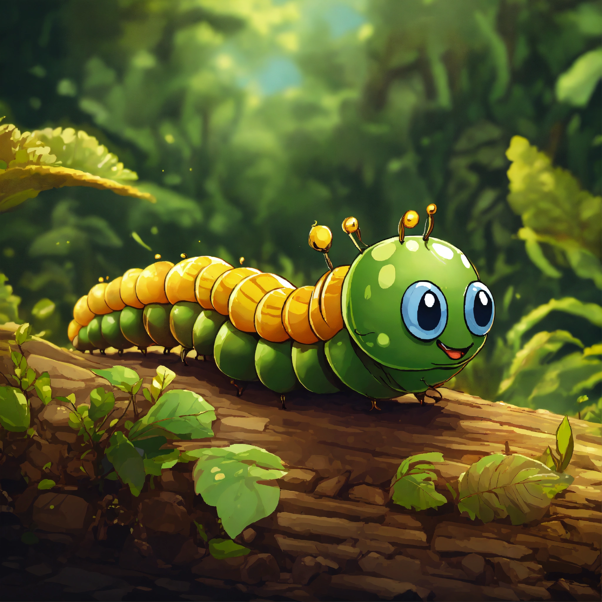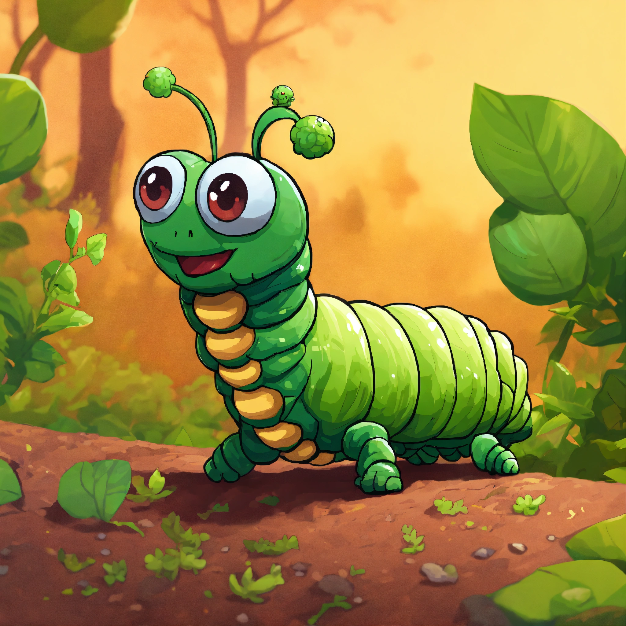 Natural animal inchworm caterpillar, 8k, high quality, oldschool, wise, competative, cartoon, comicbook, pixelart