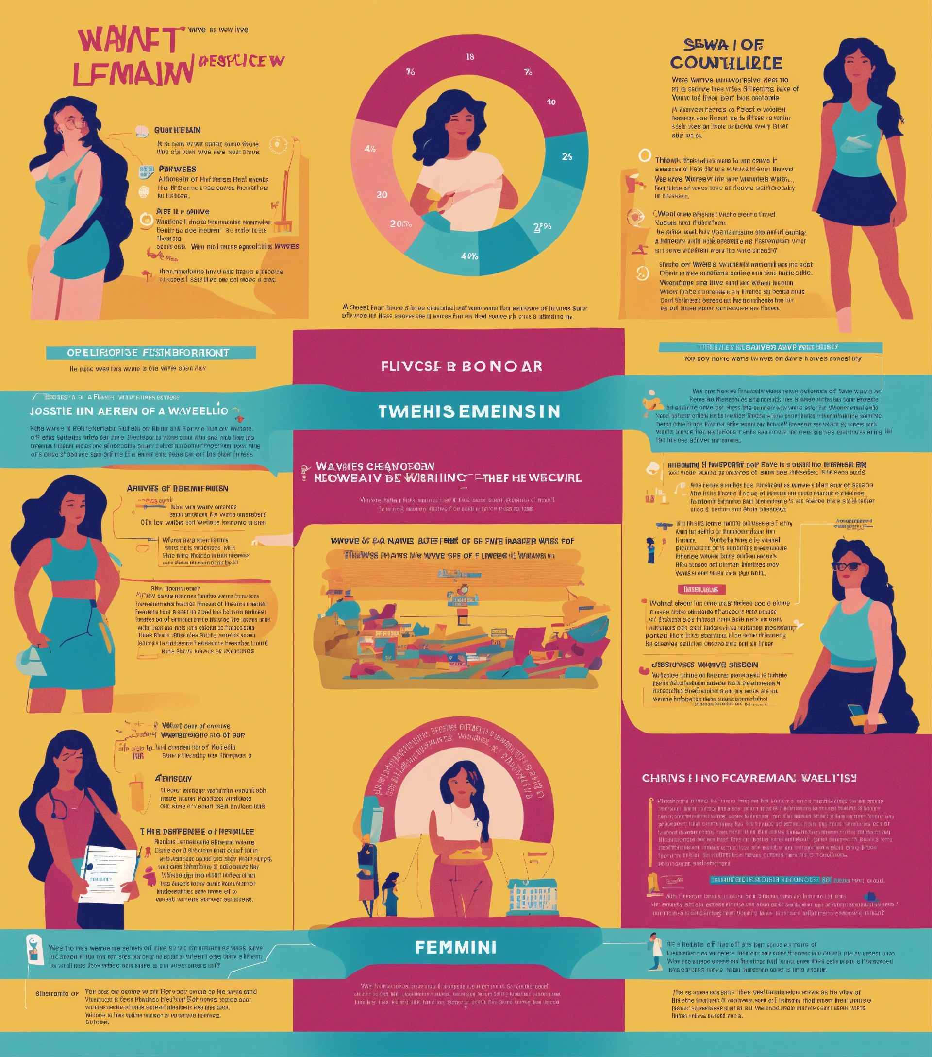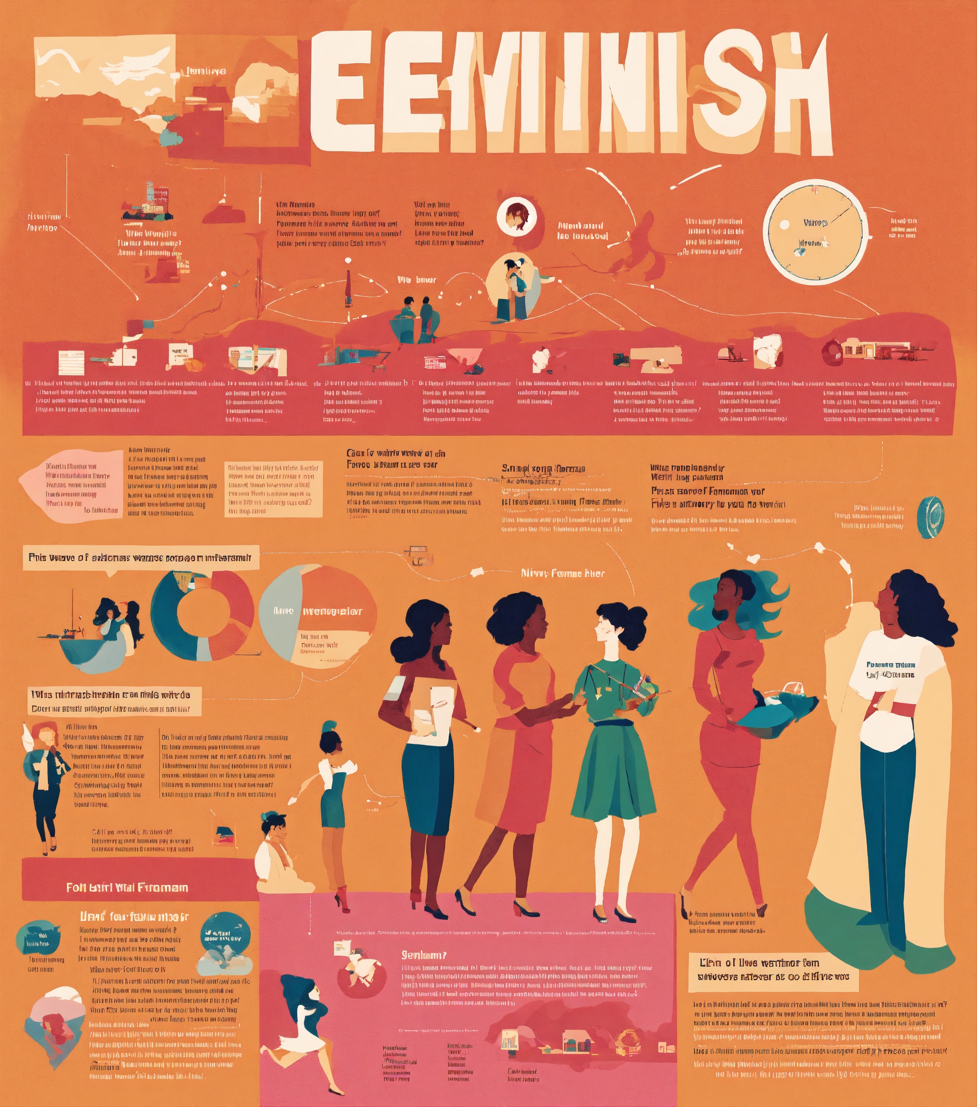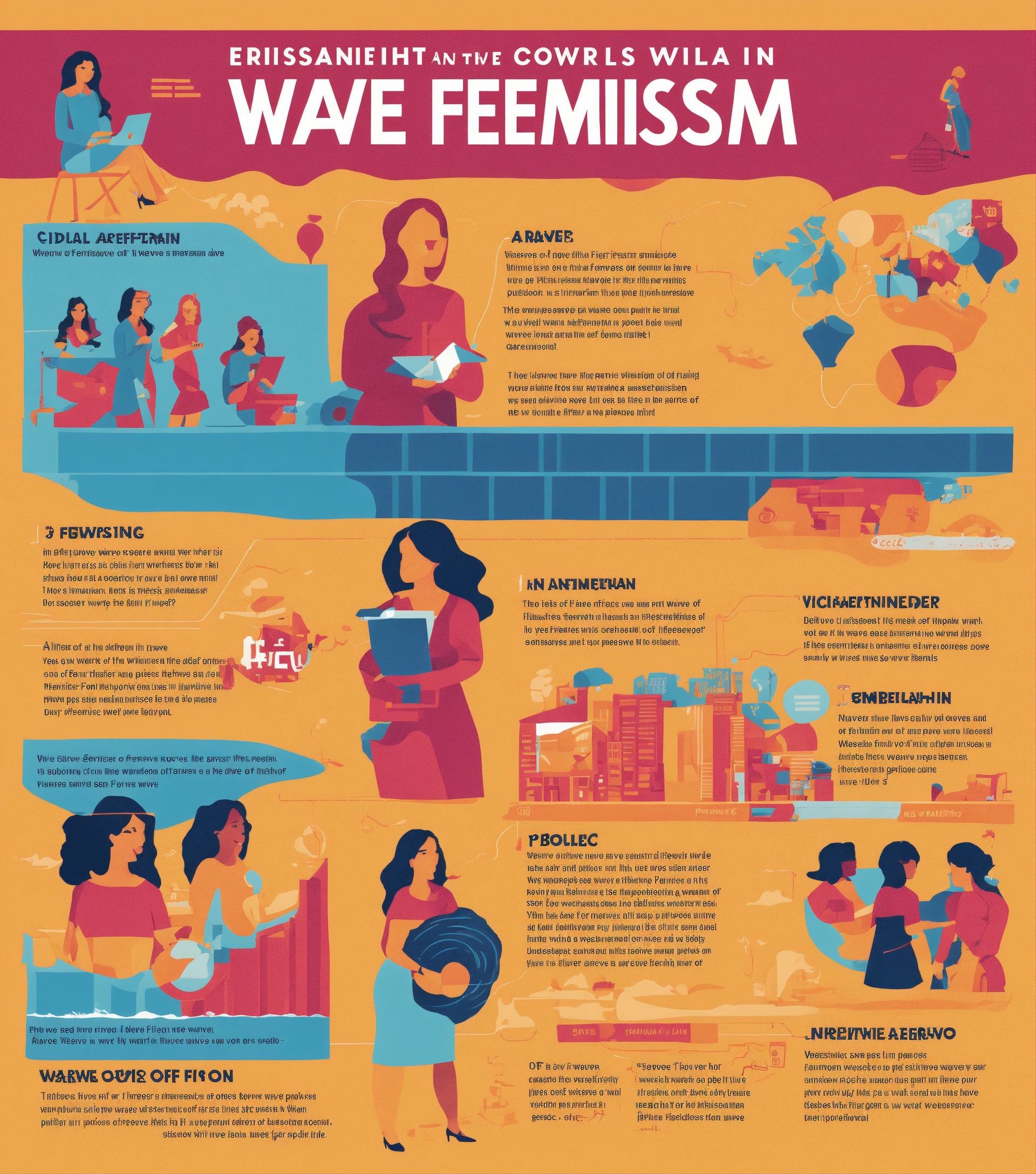 An illustration of infographic showcasing the different waves of feminism