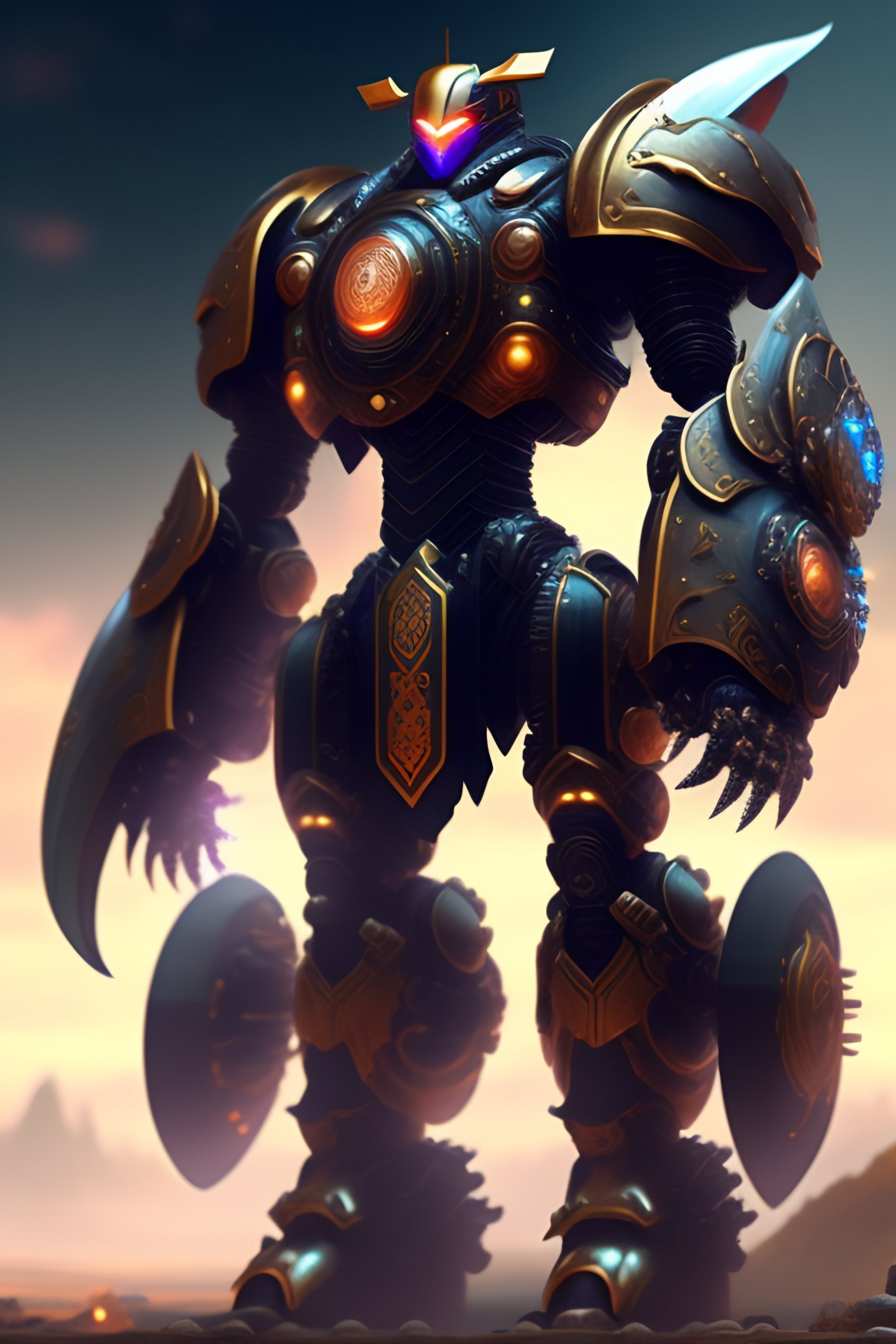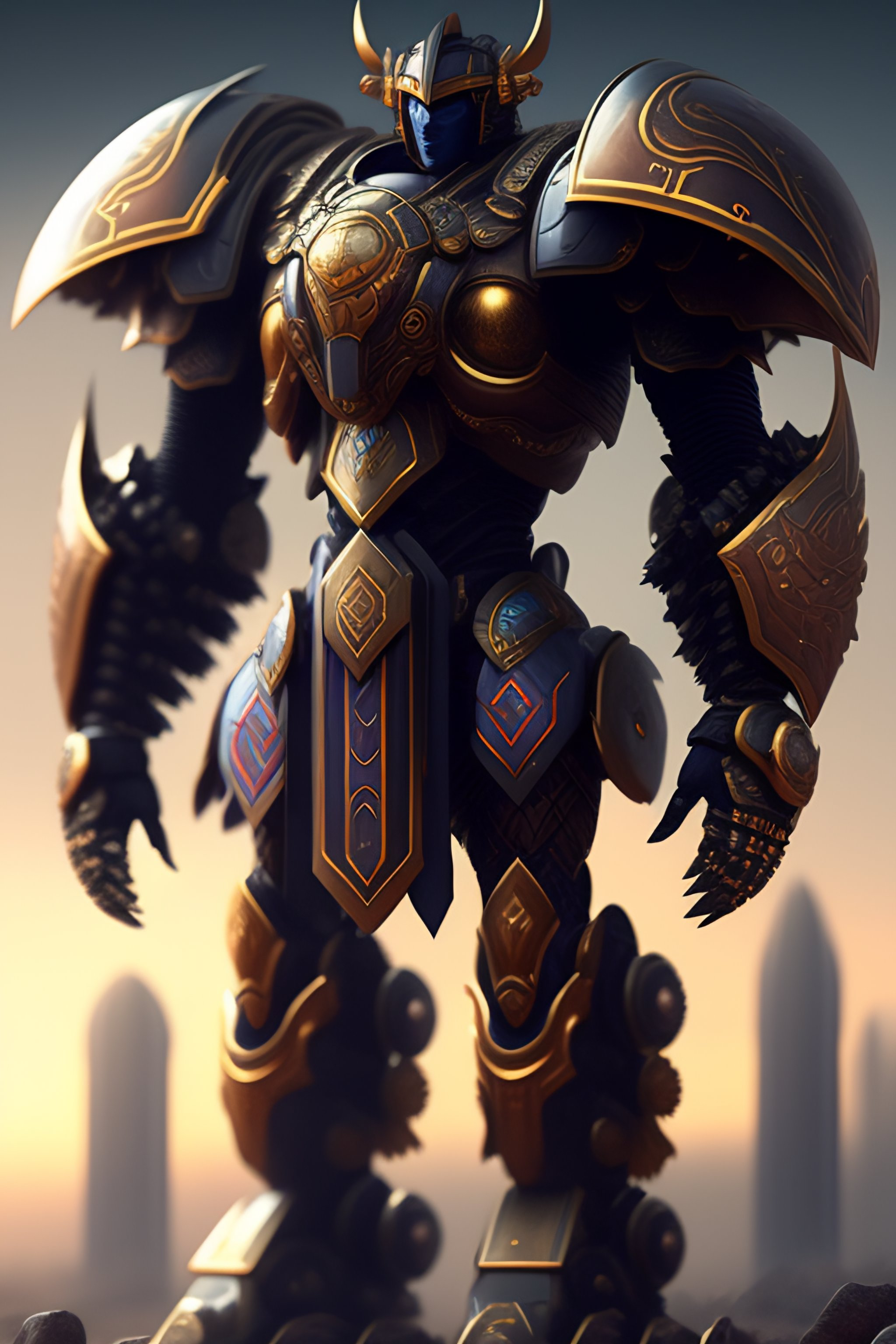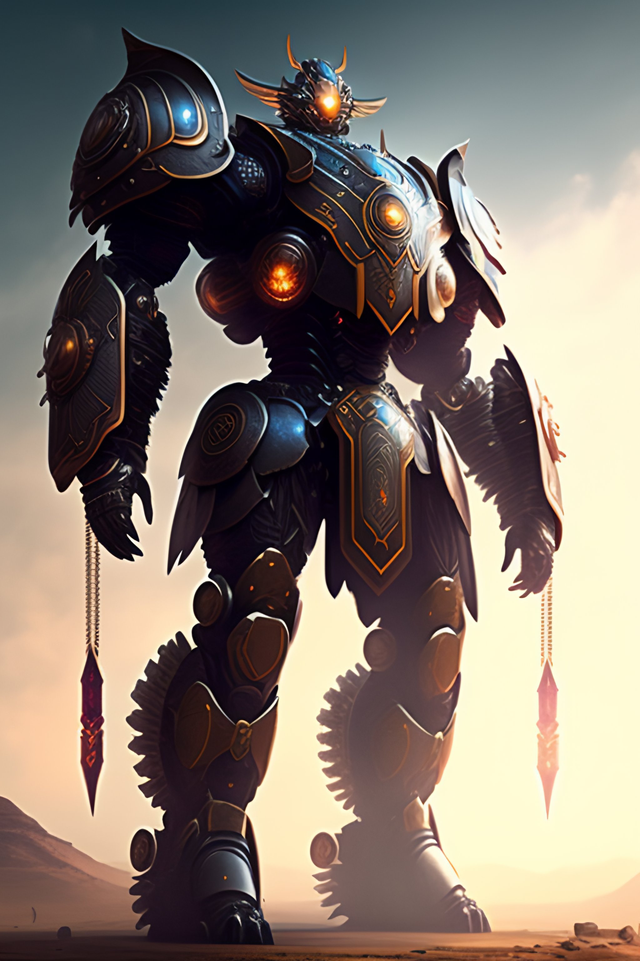 An ancient warrior of a robot civilization, a futuristic appearance, with visible gears, cogs, and other moving parts. his body is more armored and powerful