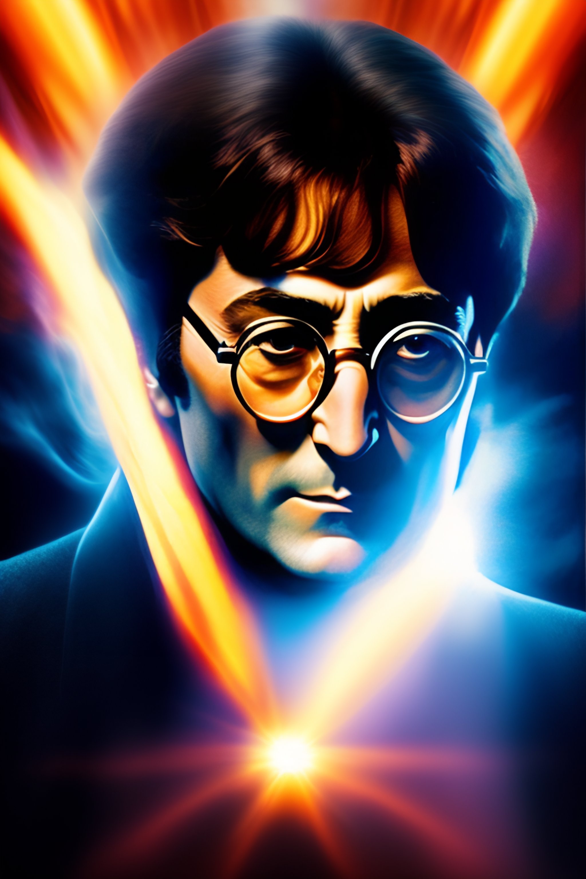 Dramatic movie poster of john lennon throwing a fully charged spirit bomb
