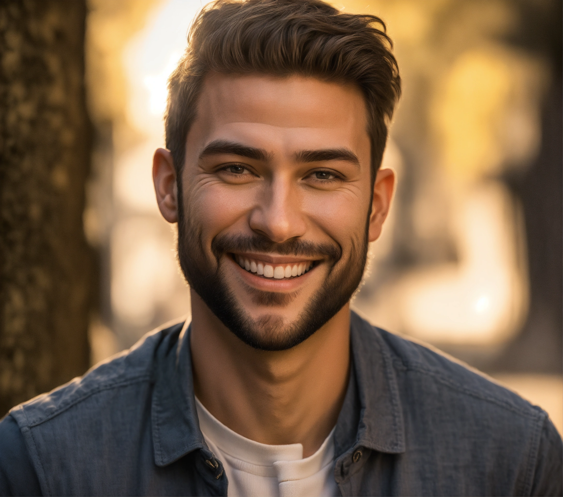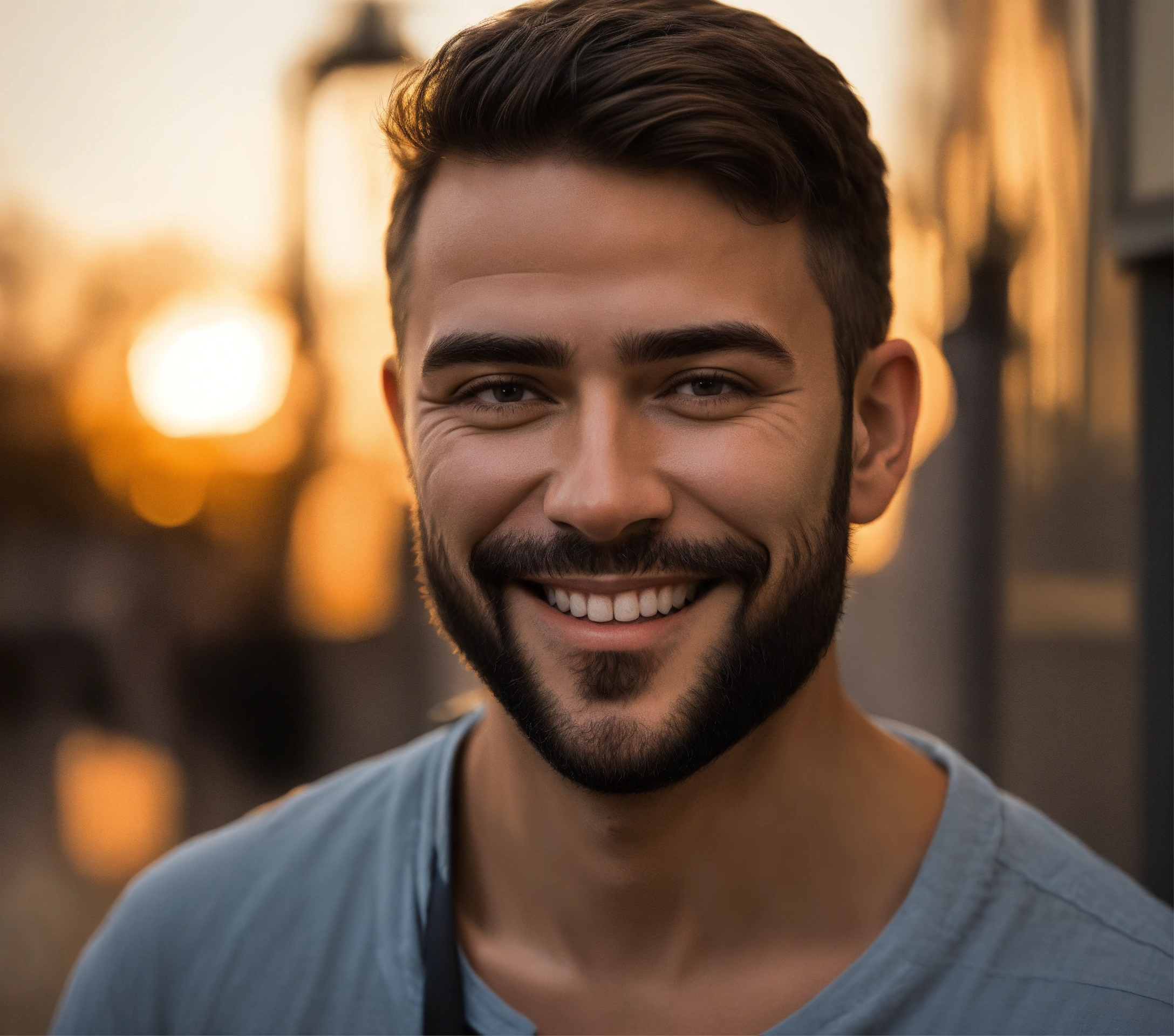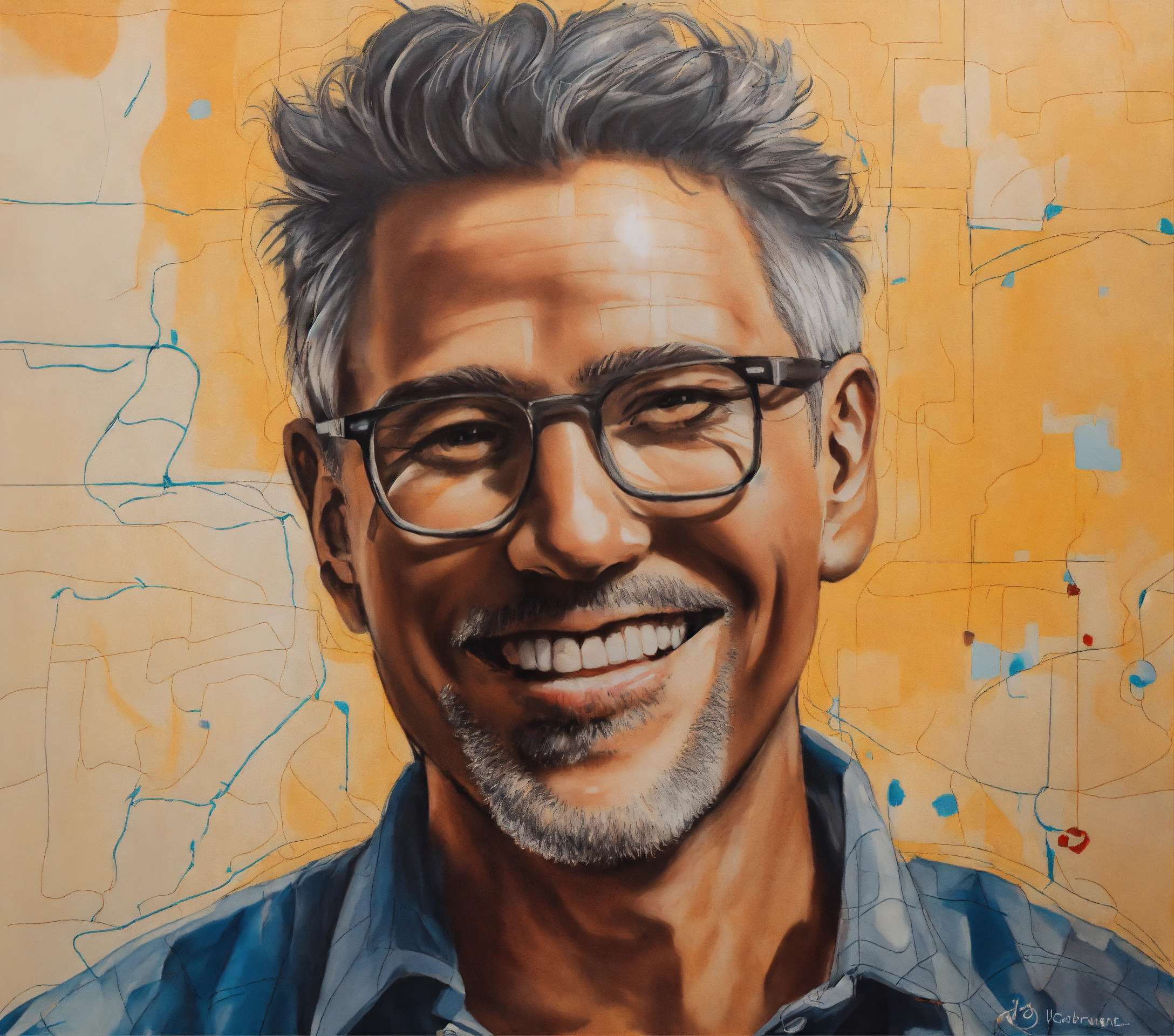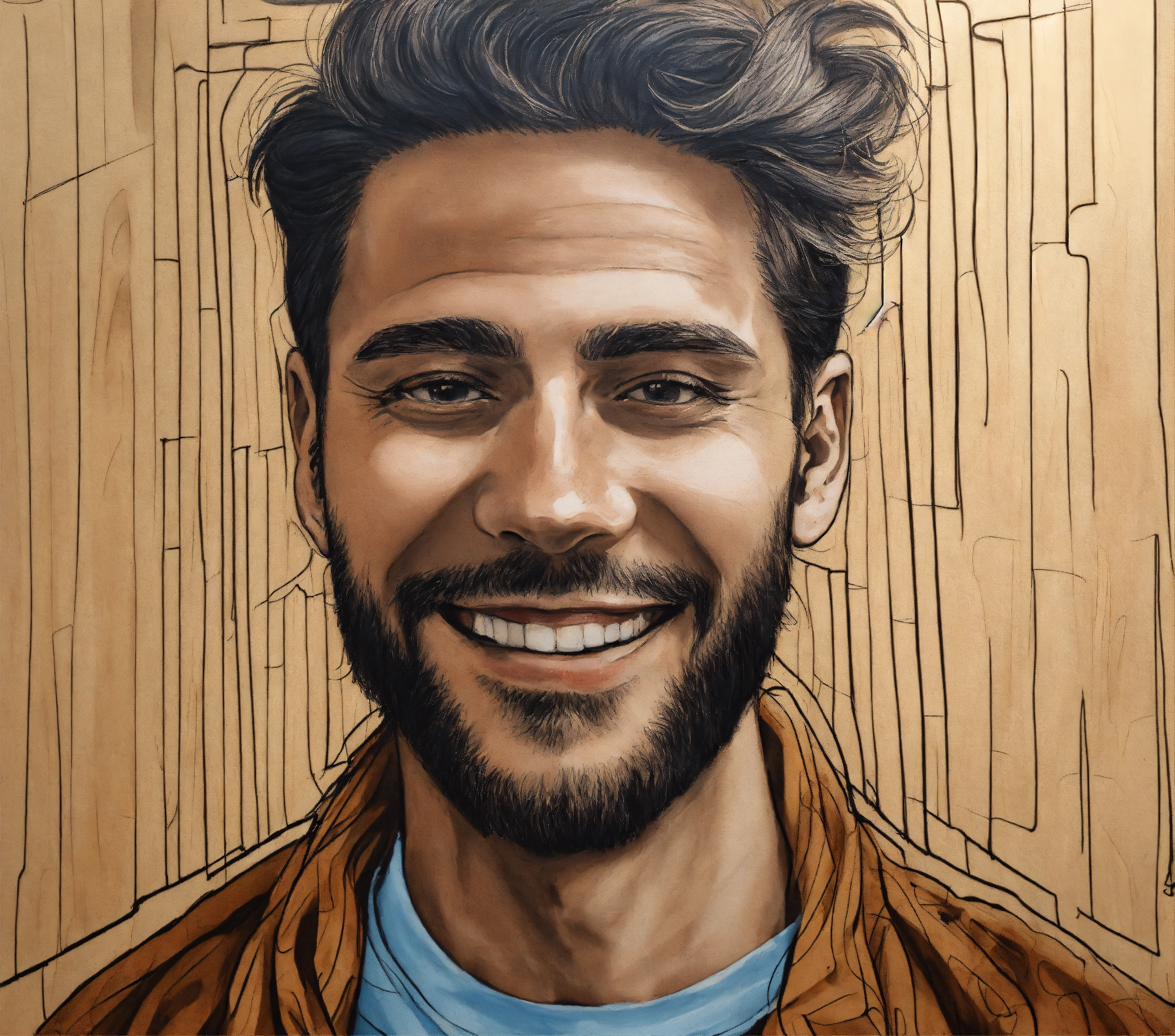 Un portrait en style "outline art" d'un homme souriant dans la trentaine réalisé avec un crayon