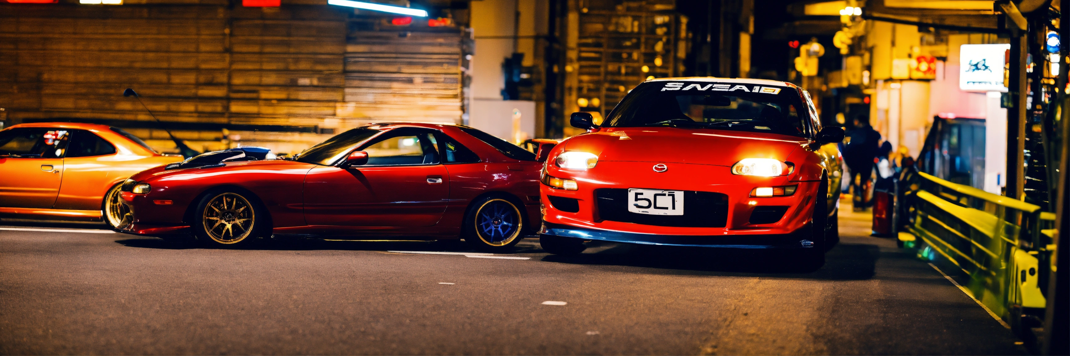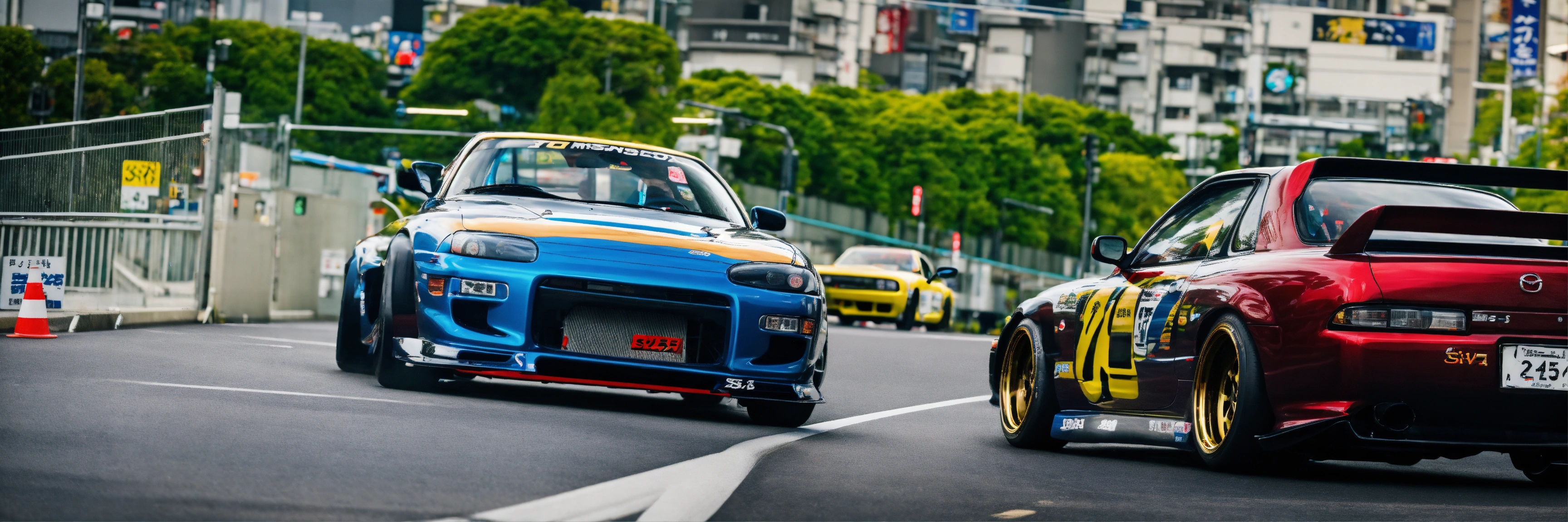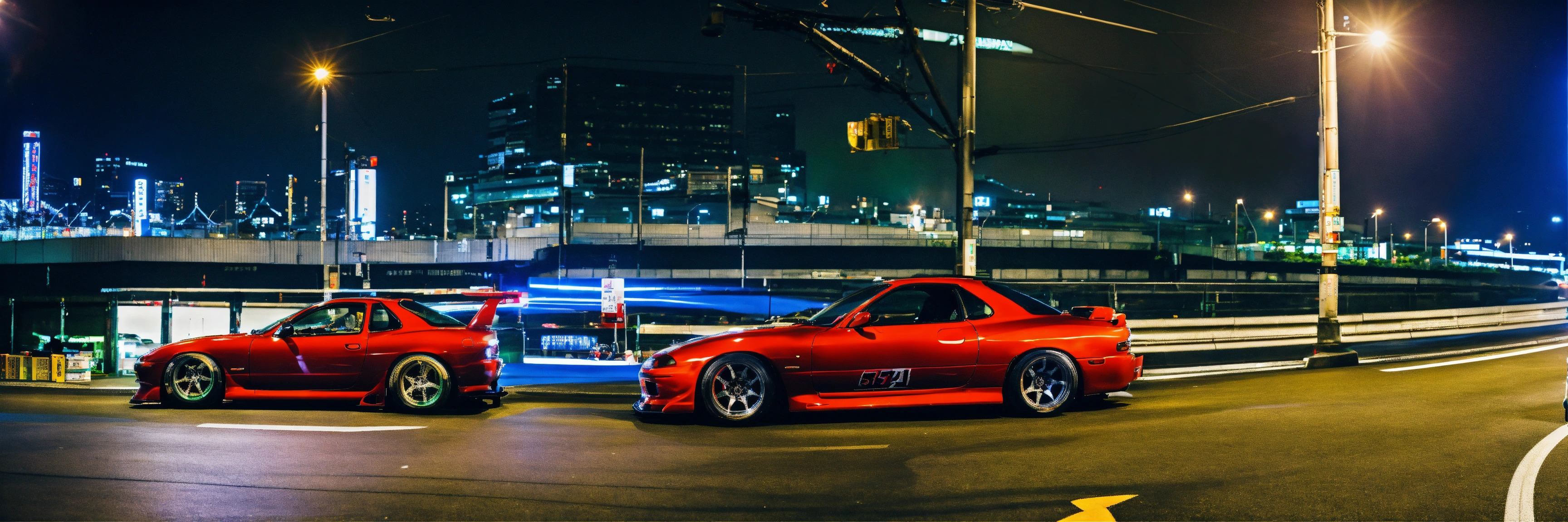 A nissan silvia s15 street racing a mazda rx7 in tokyo