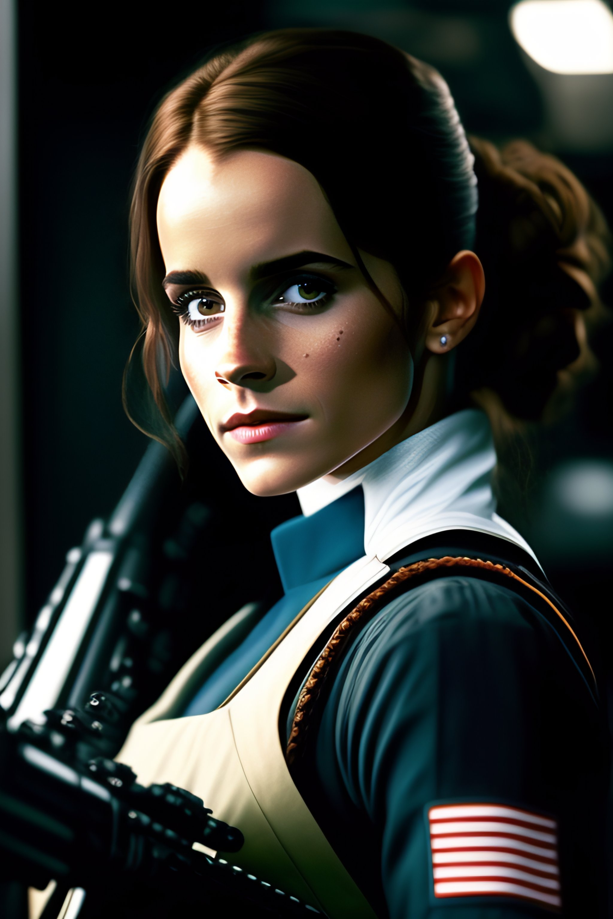 Emma watson as a colonial marine from aliens cleaning rifle ridley scott