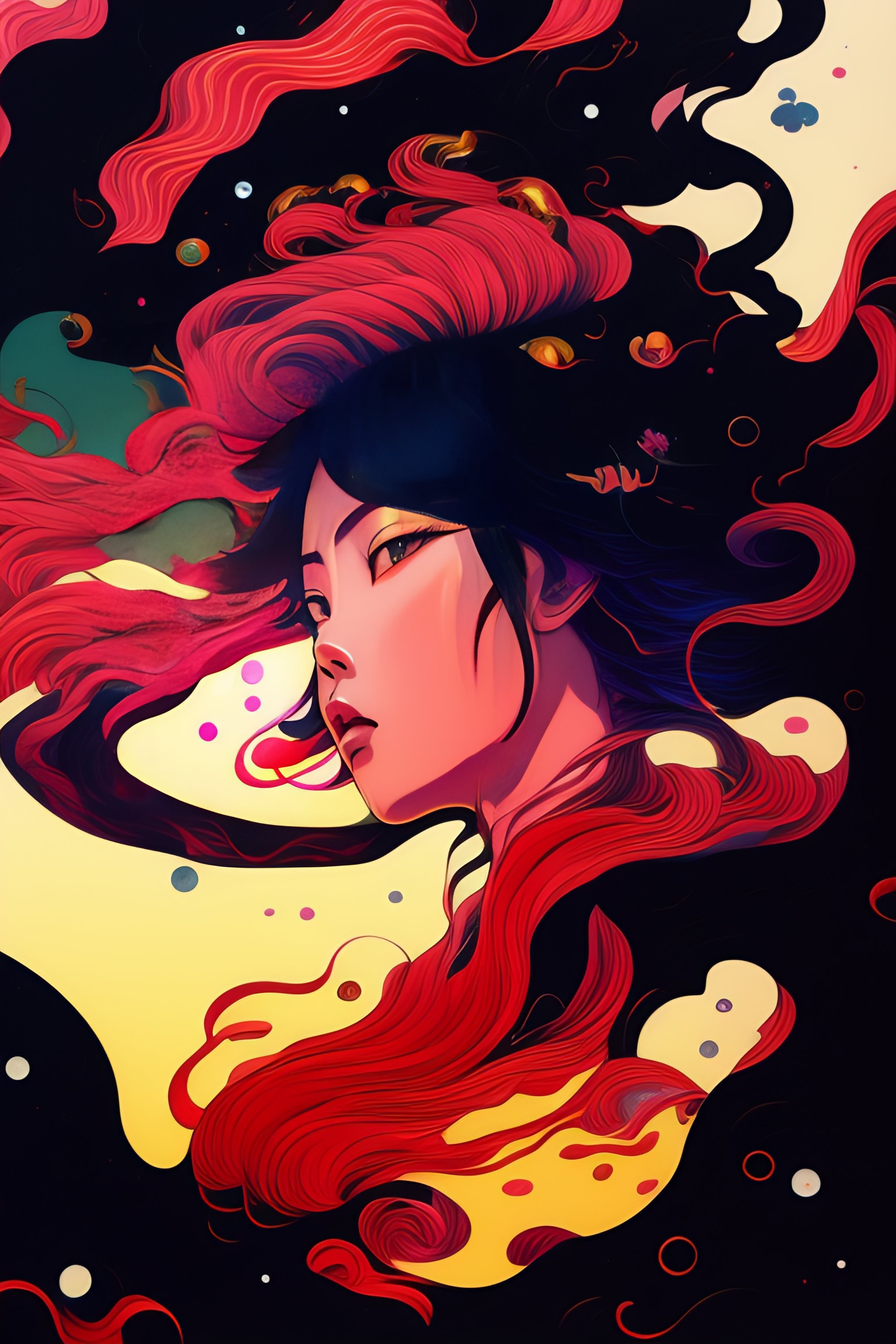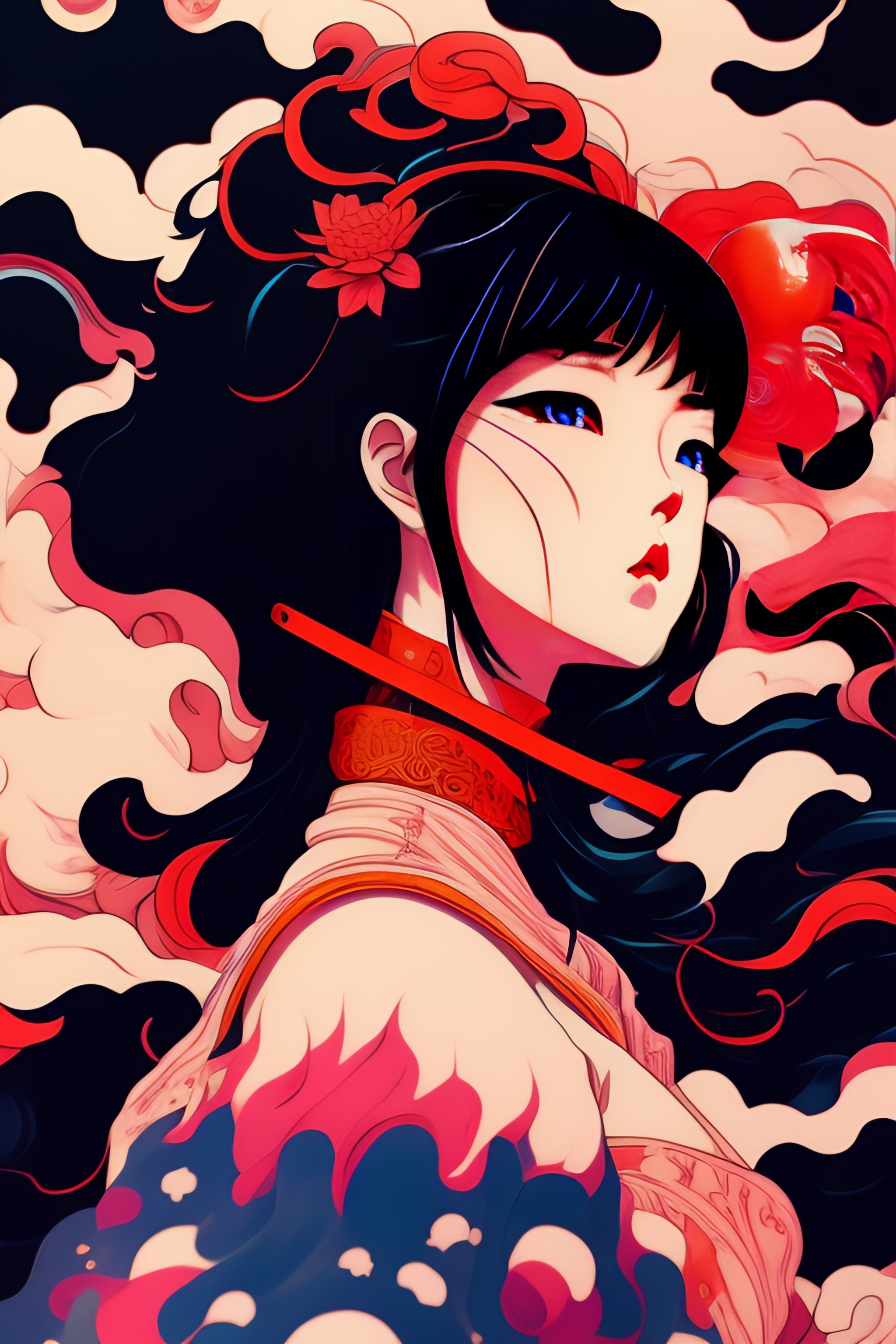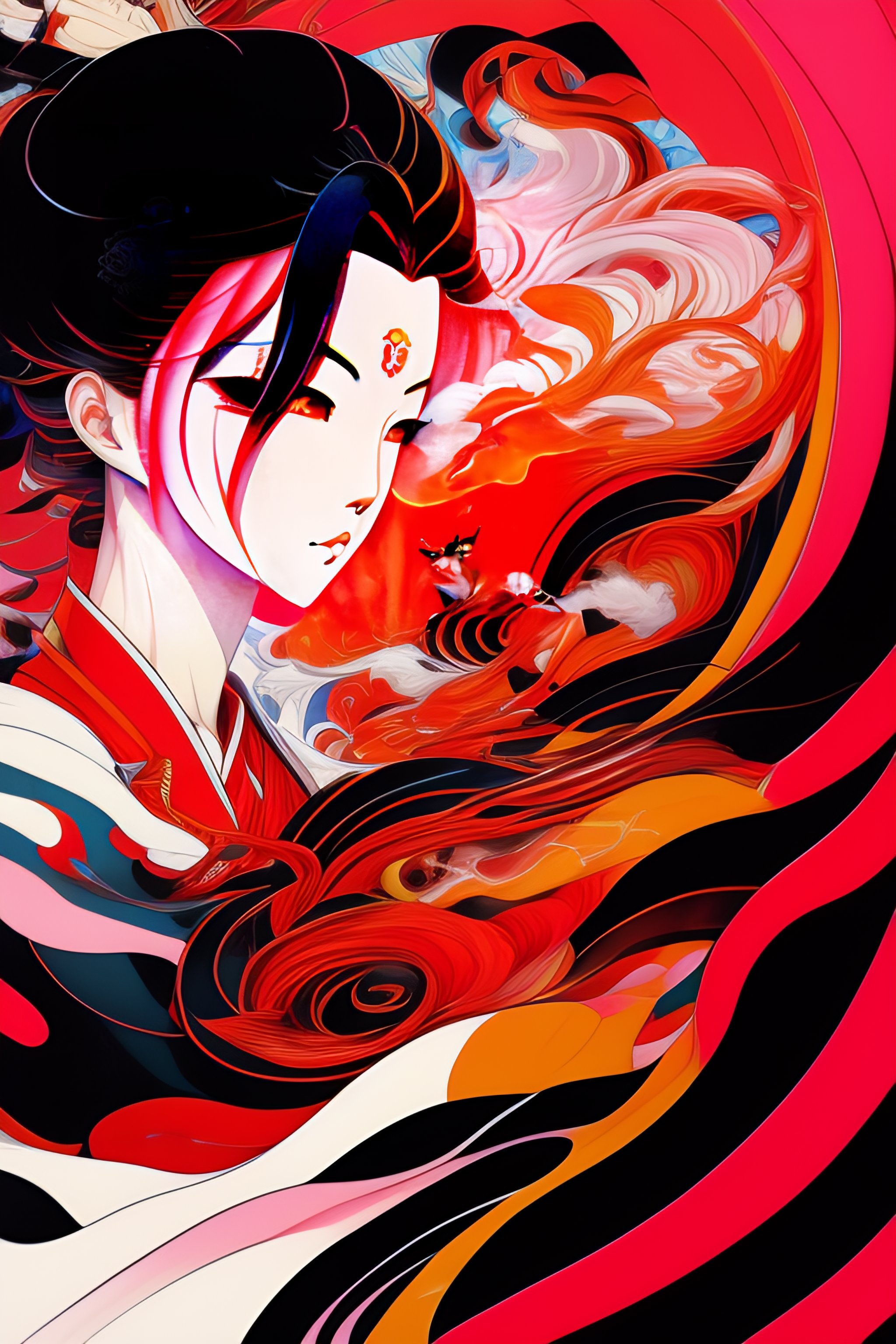 90s anime vintage anime a horror samurai dead, kitsune flying out of city in japanese style in black and red ink with some black ink sadness melting skeleton splash dark side melting red dance soft red transparent hair girl falling into a black swirl splash soft pink cloud hole ukiyo - e, radiant light, detailed and intricate environment trending, beautiful, stunning abstraction at birth by moebius art line style. by james jean and shusei nagaoka, acrylic on canvas, surrealism, neoclassicism, renaissance, hyper realistic, outline detail, line art, ultra detailed, cell shaded, 8k. minimalism