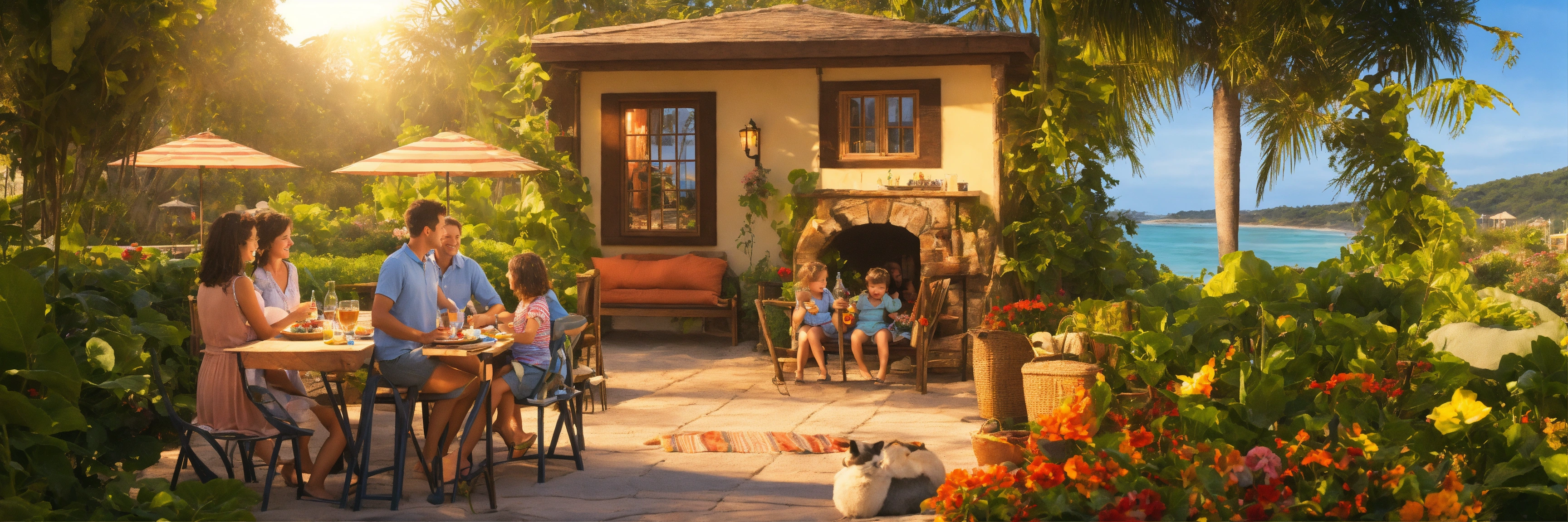 Explore a multitude of heartwarming family scenes, be it in the garden, home, dining, during play, travel, or along the beach."