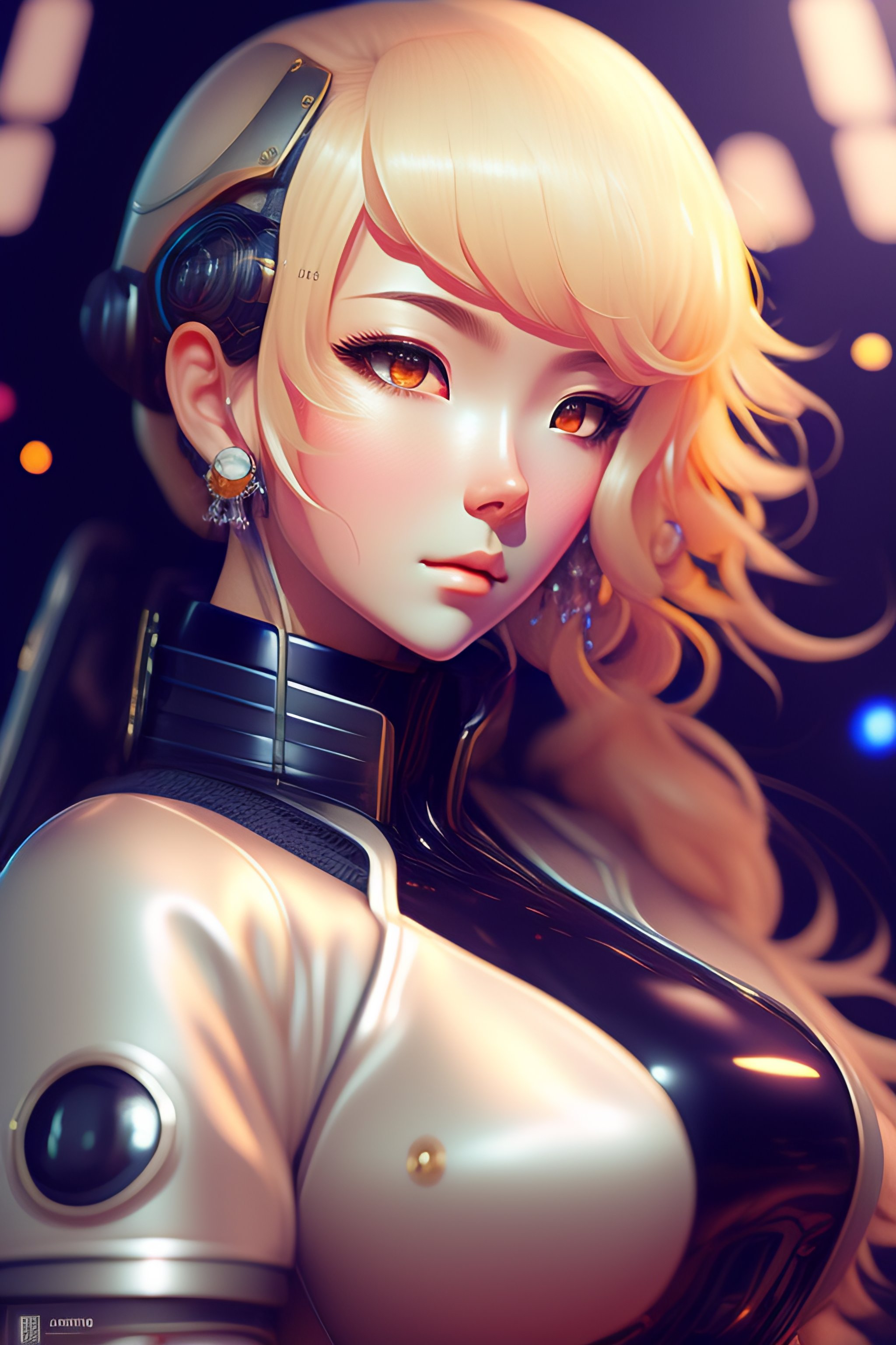 A space realistic robot with big and cute eyes, blond hair | | very anime, fine - face, realistic shaded robotic parts, fine details. anime. realistic shaded lighting poster by ilya kuvshinov katsuhiro otomo ghost - in - the - shell, magali villeneuve, artgerm, jeremy lipkin and michael garmash, rob rey and kentaro miura style, trending on art station