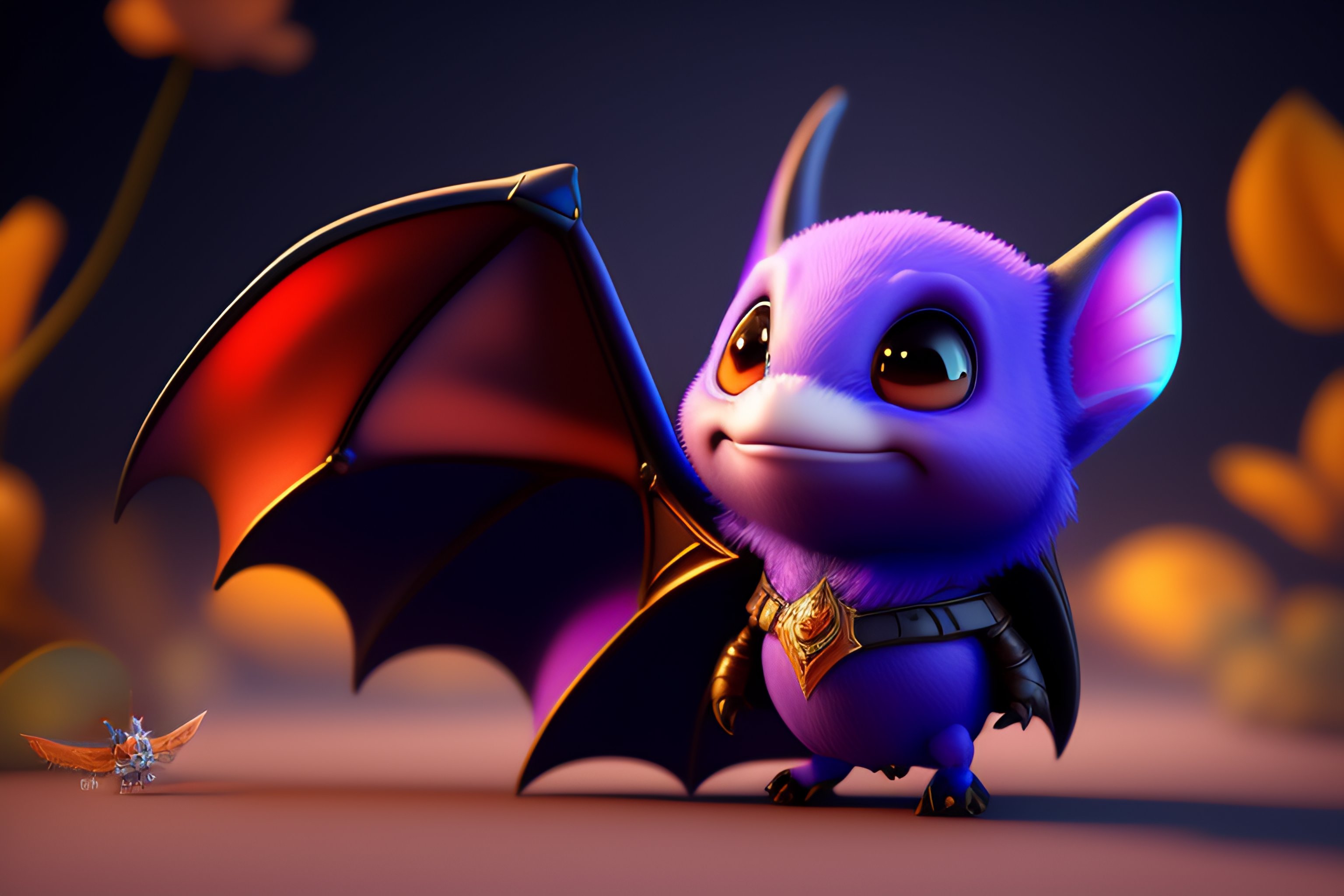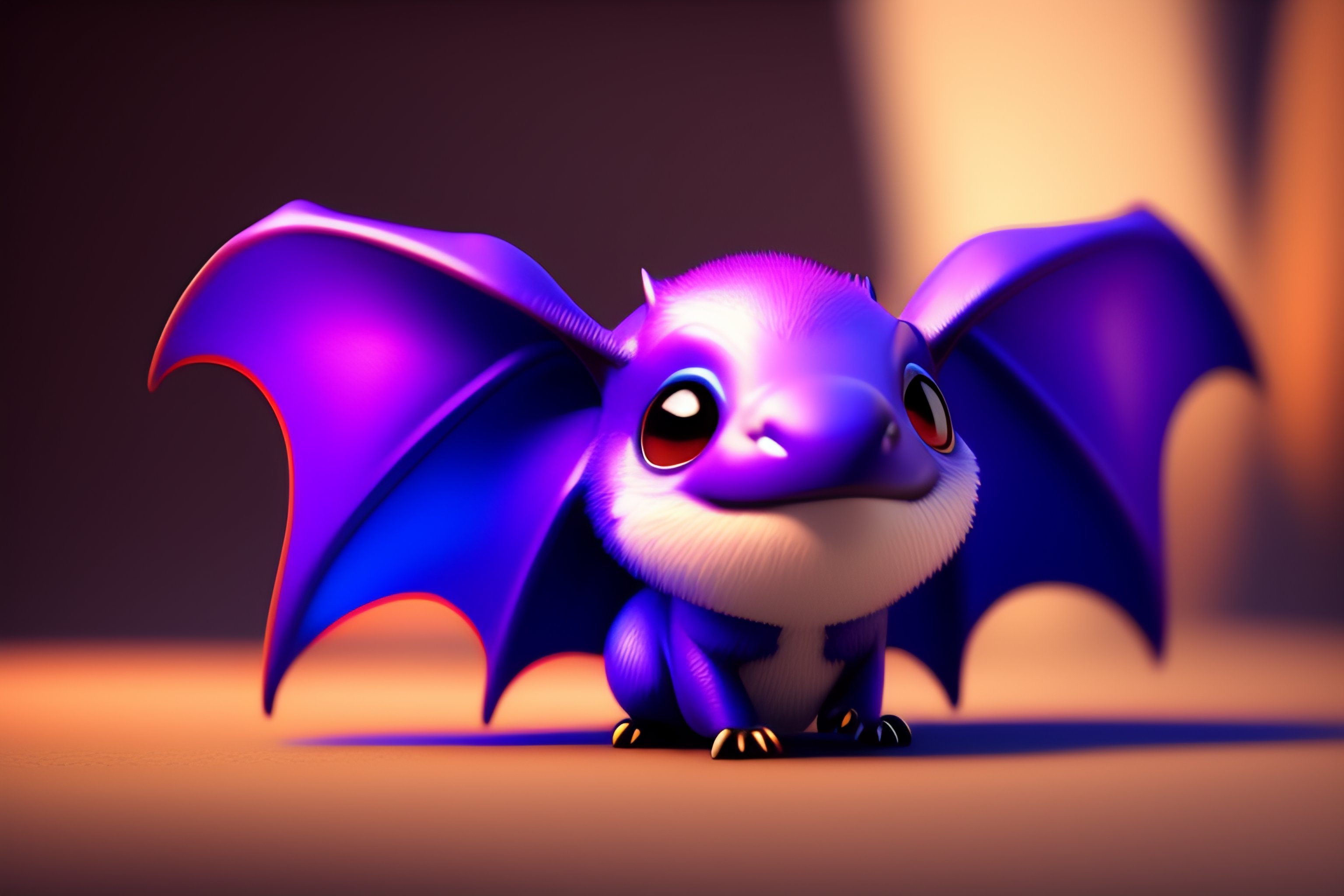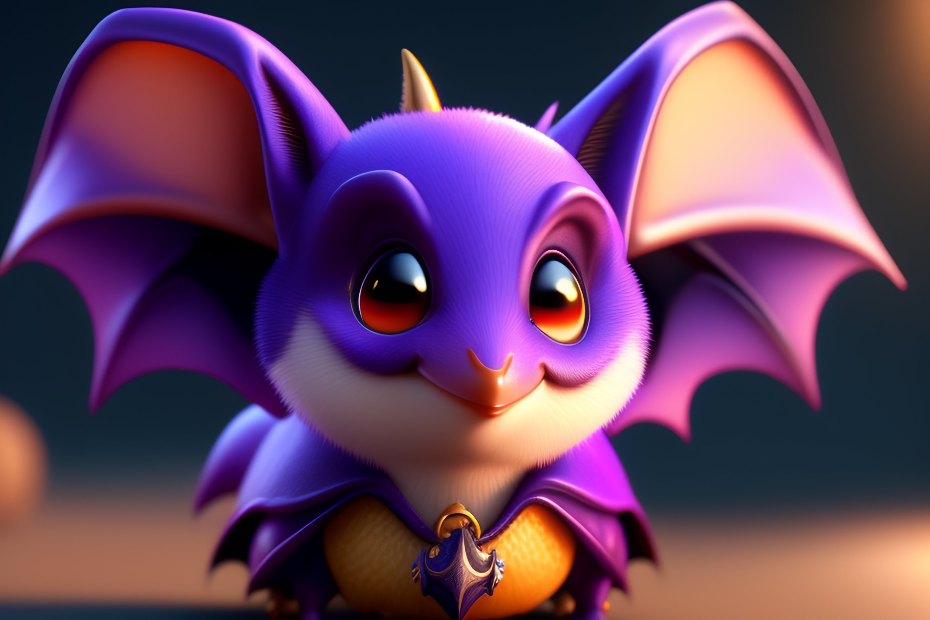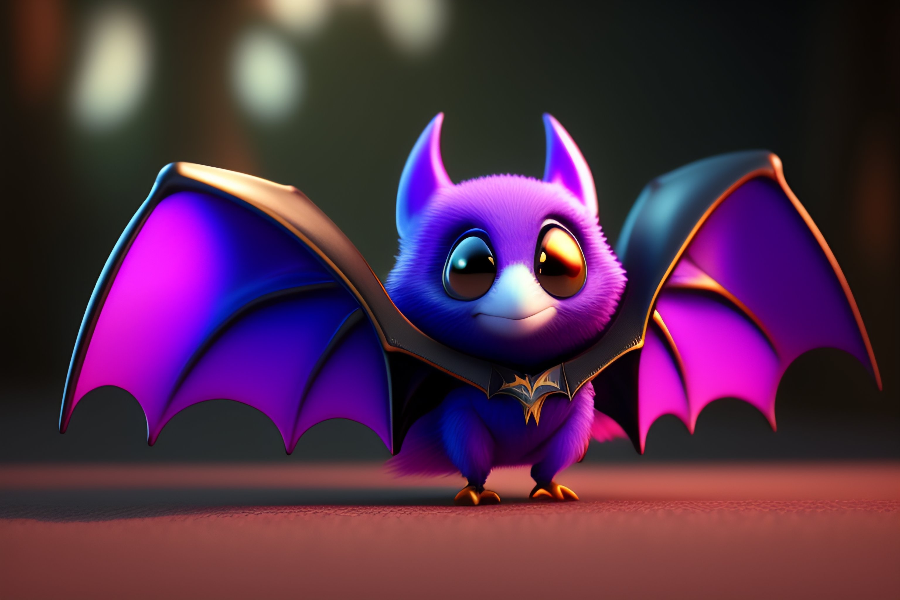 Little bat with wings and fangs, cute pixar character, violet, digital painting, octane render, unreal engine, studio lighting