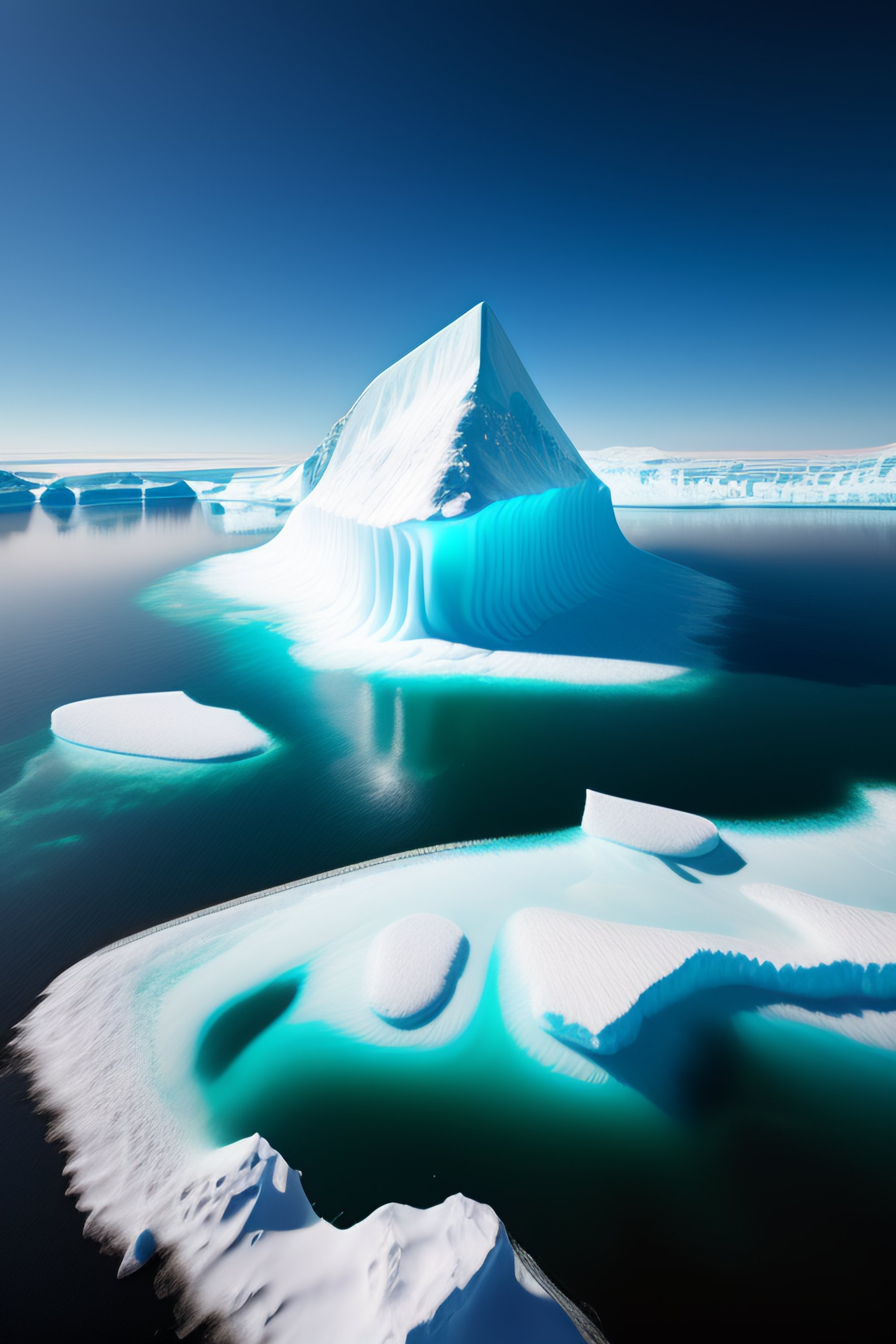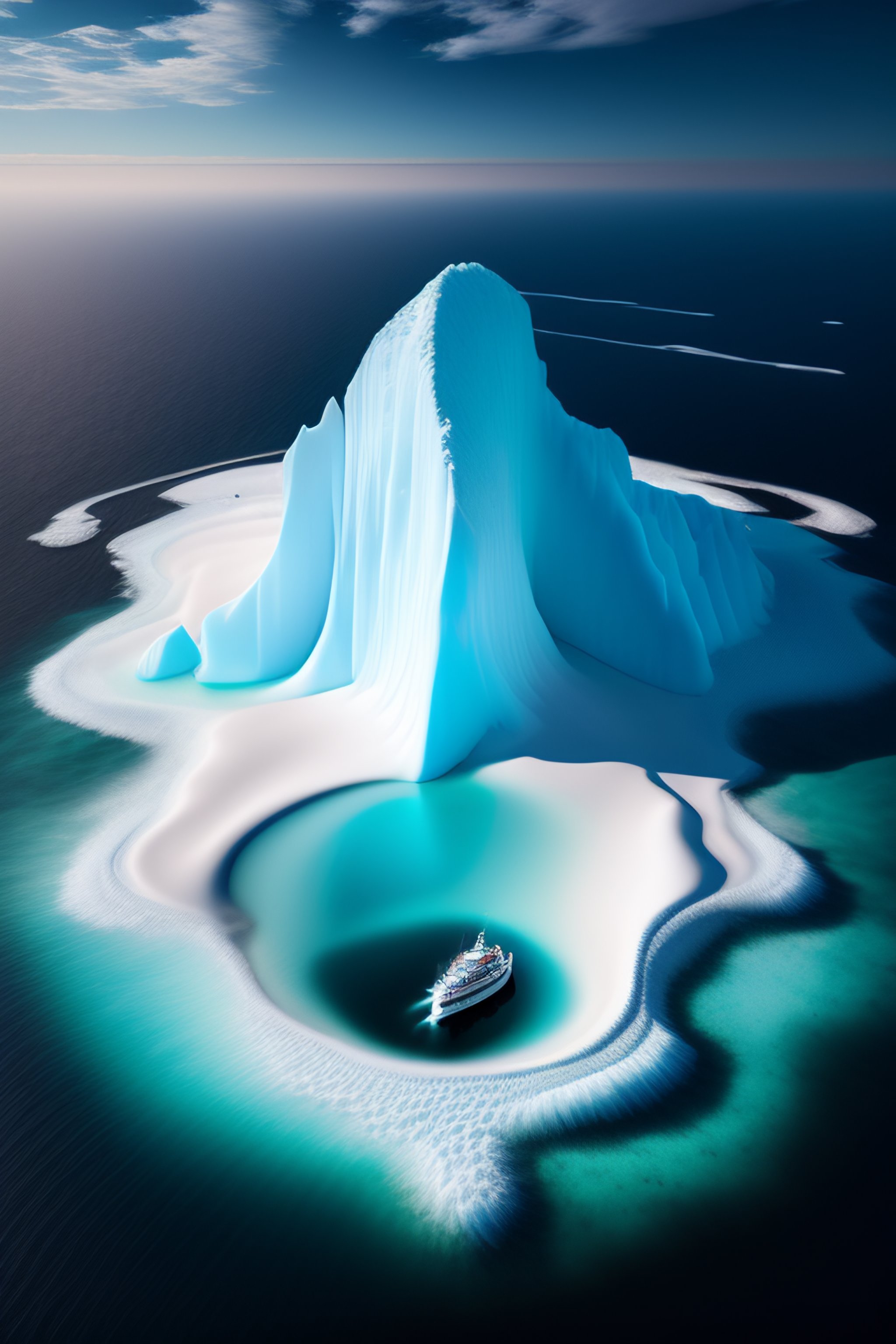 Hyperrealistic image of iceberg from eye bird view