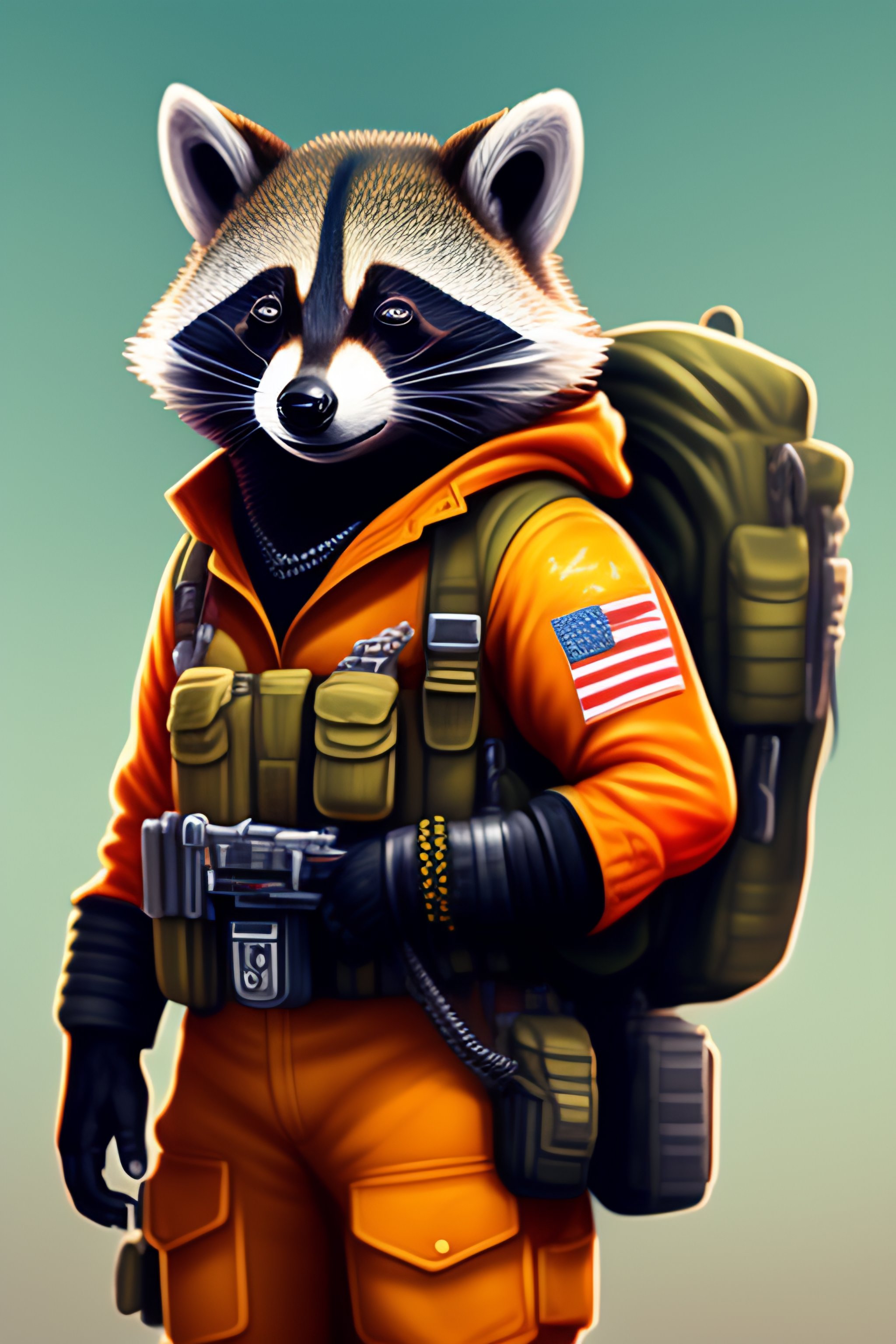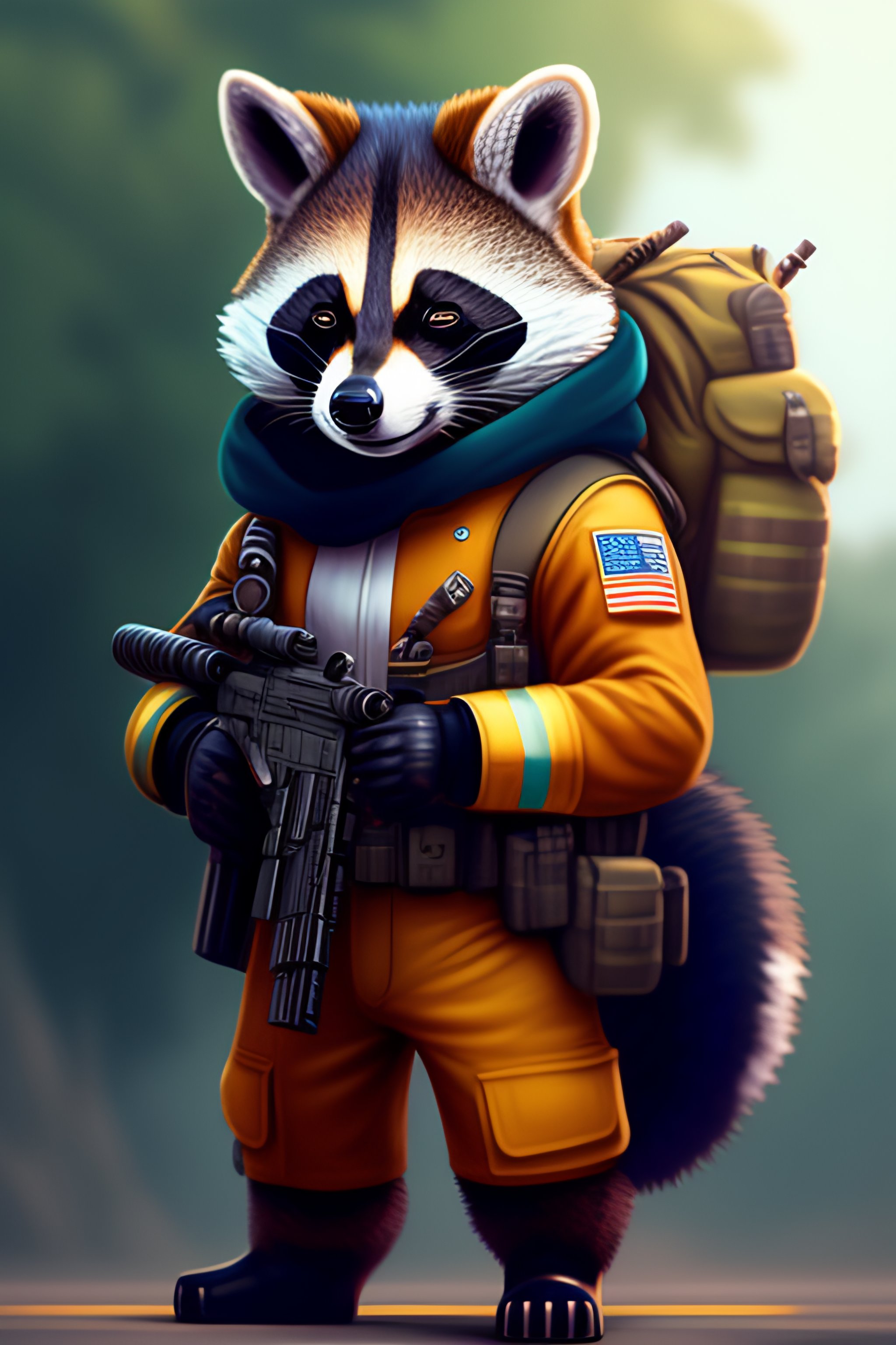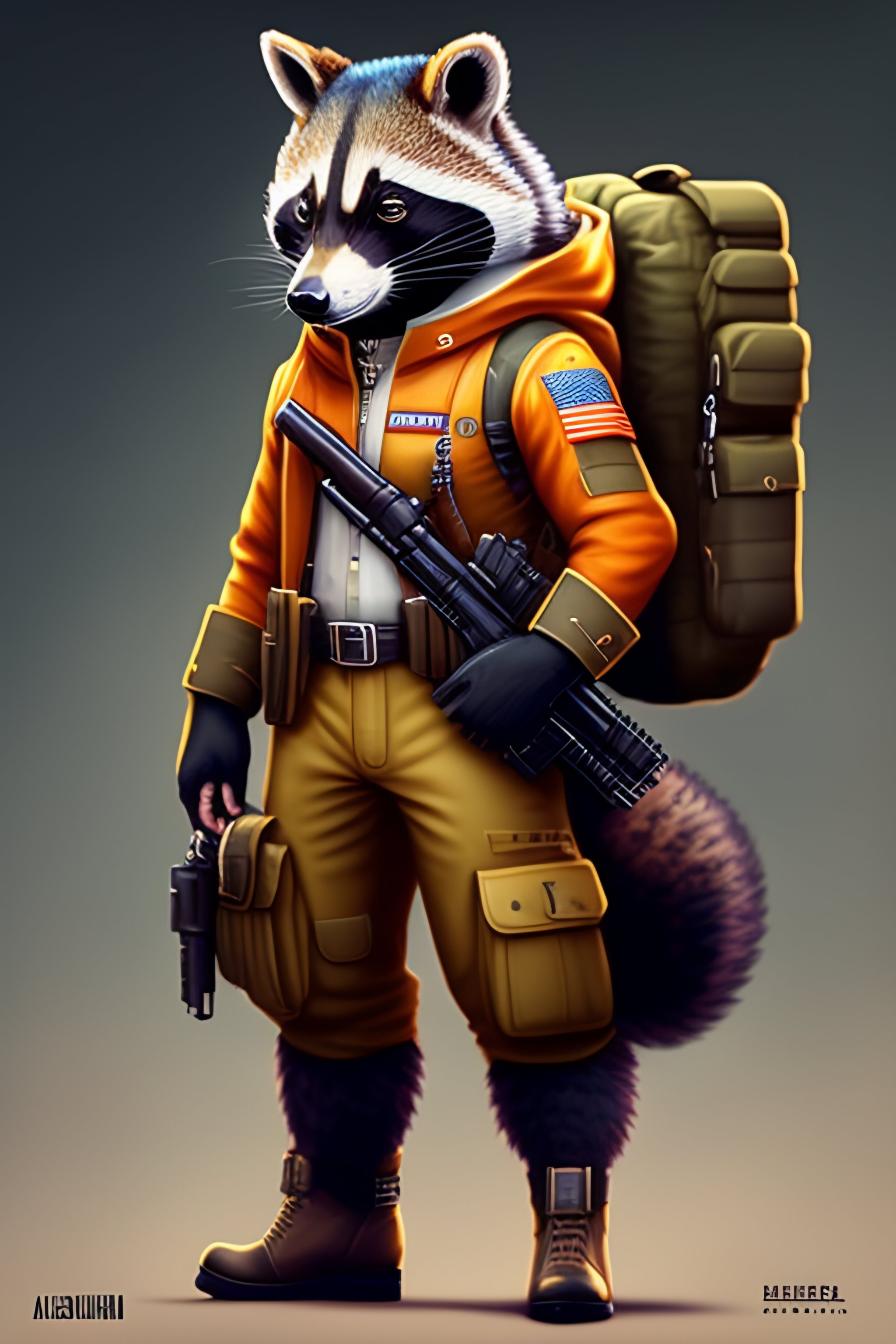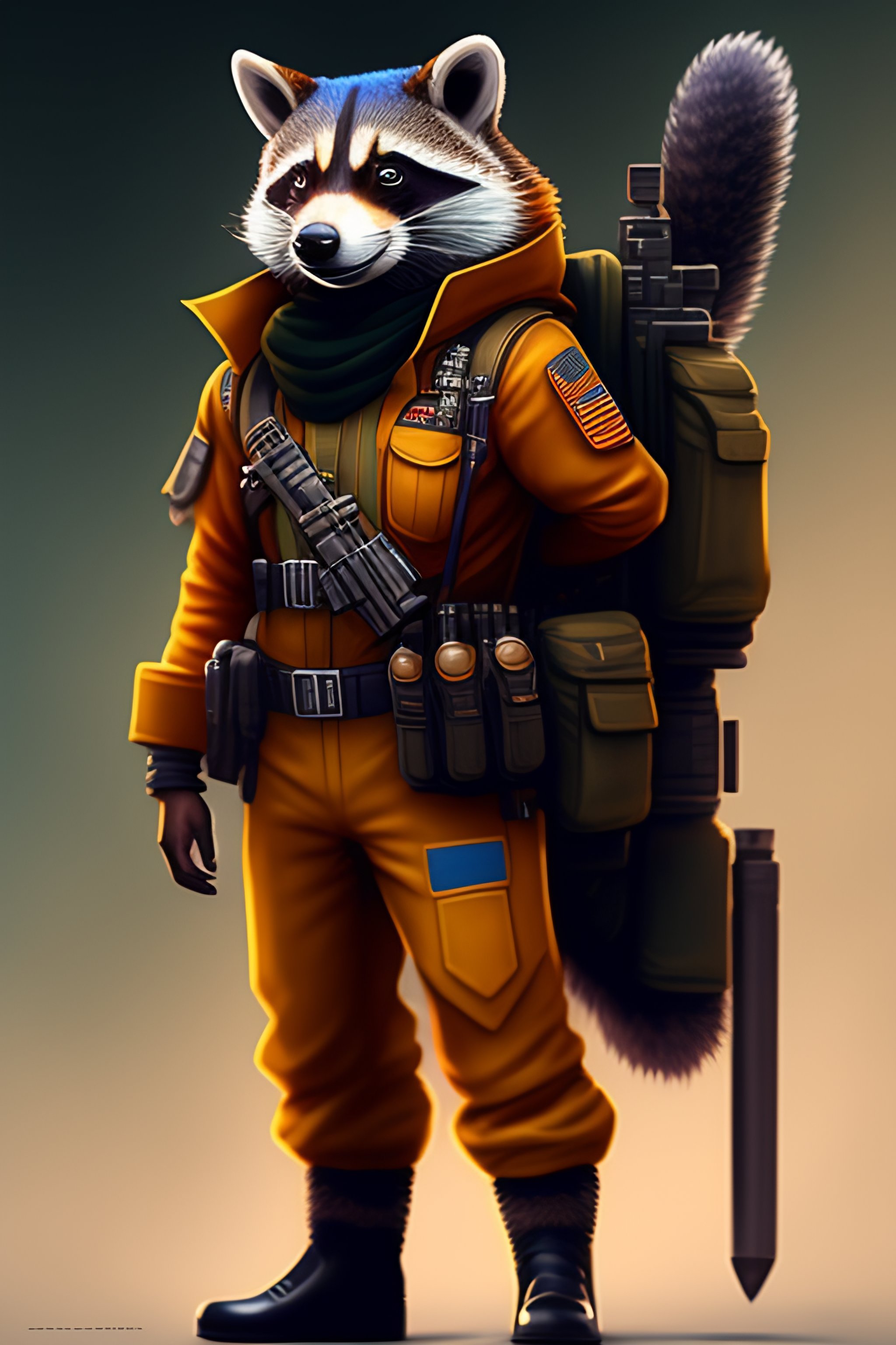 Anthro furry humanoid racoon, military uniform, holding a machinegun, letter z sleeve patch, character concept design, painting, detailed, vivid, trending on artstation