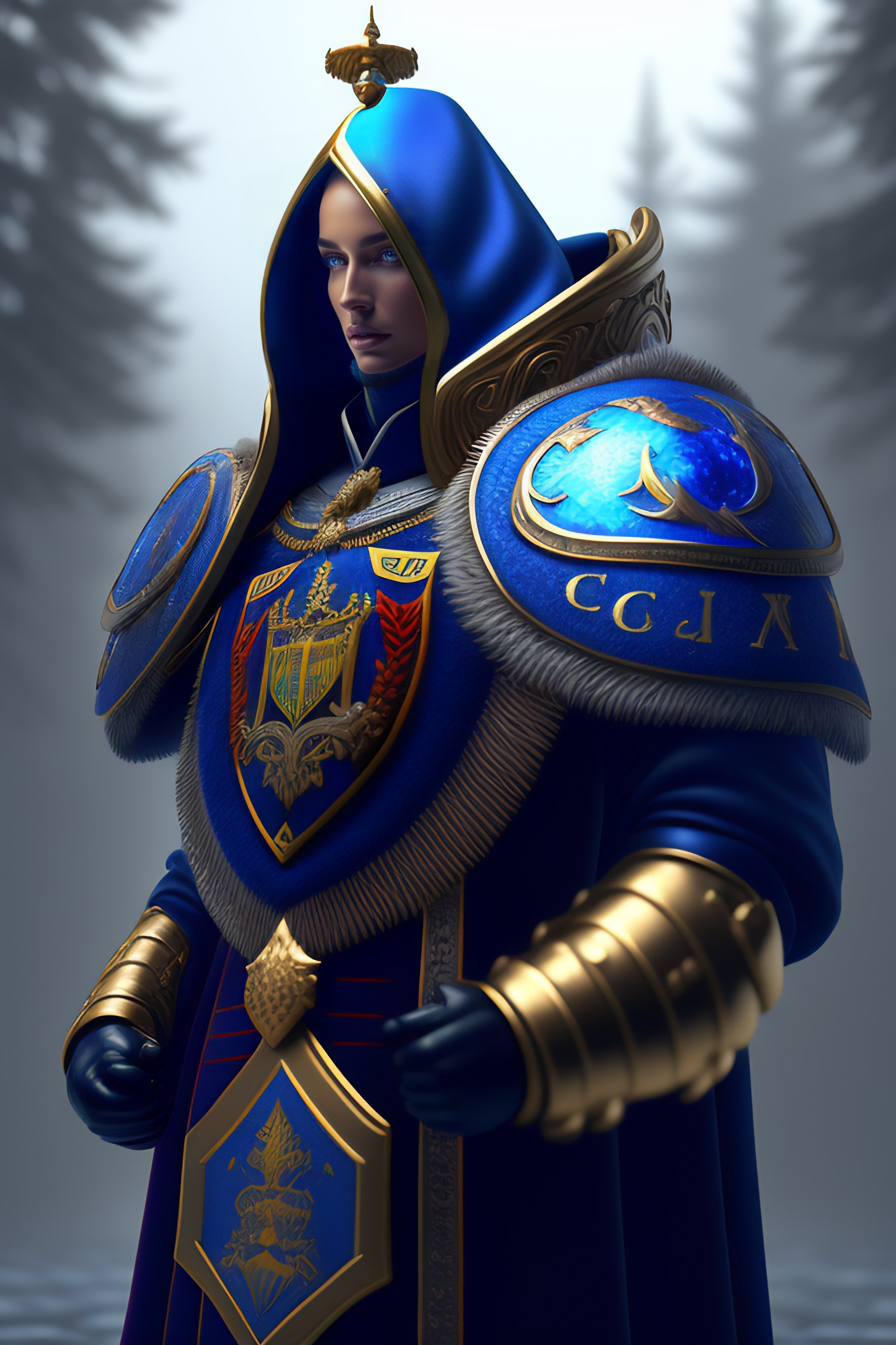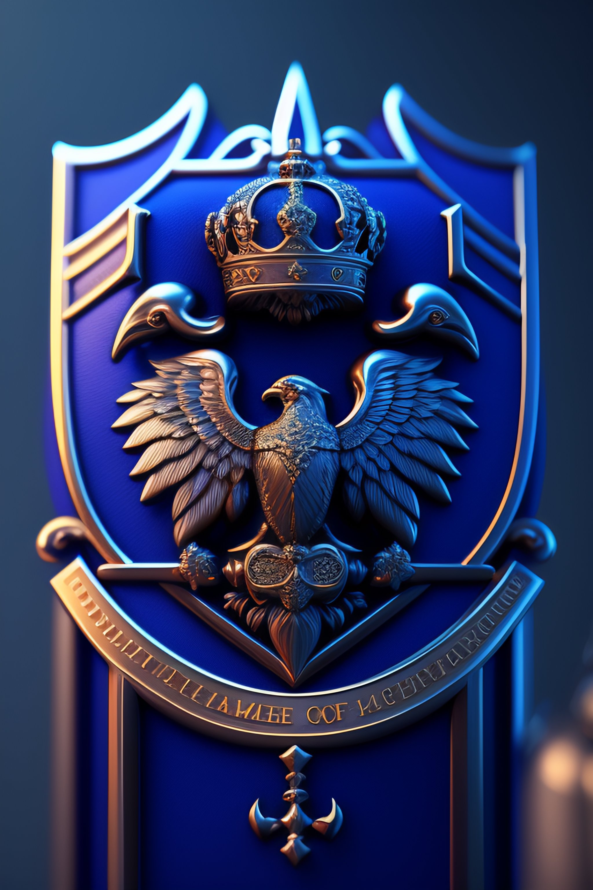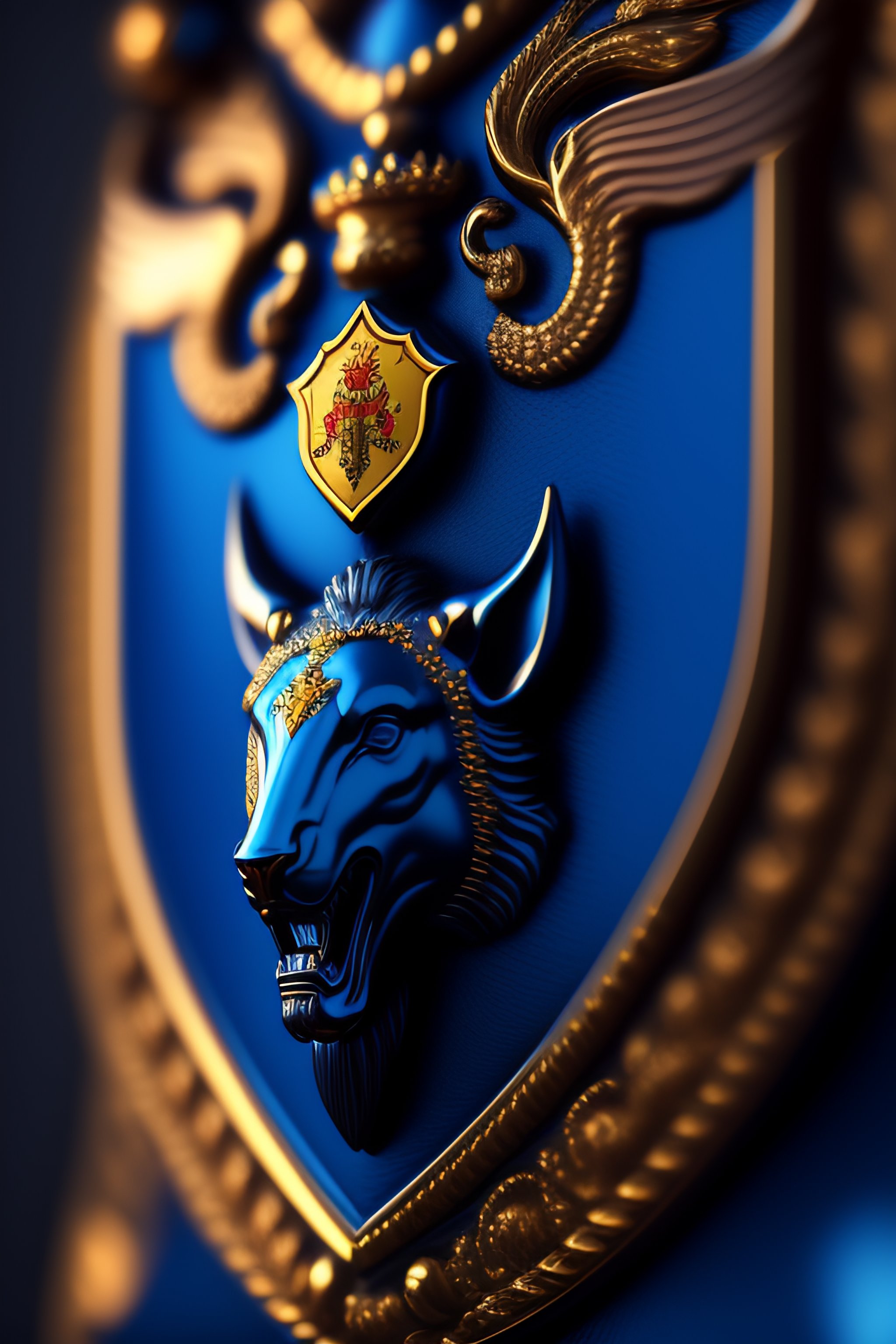 Family coat of arms, heraldic coat of arms with a blue crystal representing a computer, gloomy and foggy atmosphere, octane render, rembrandt, cgsociety, artstation trending, horror scene, highly detailded