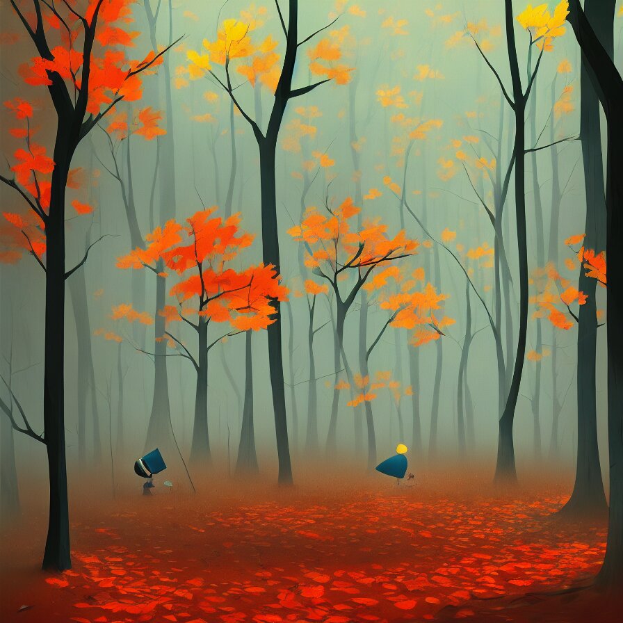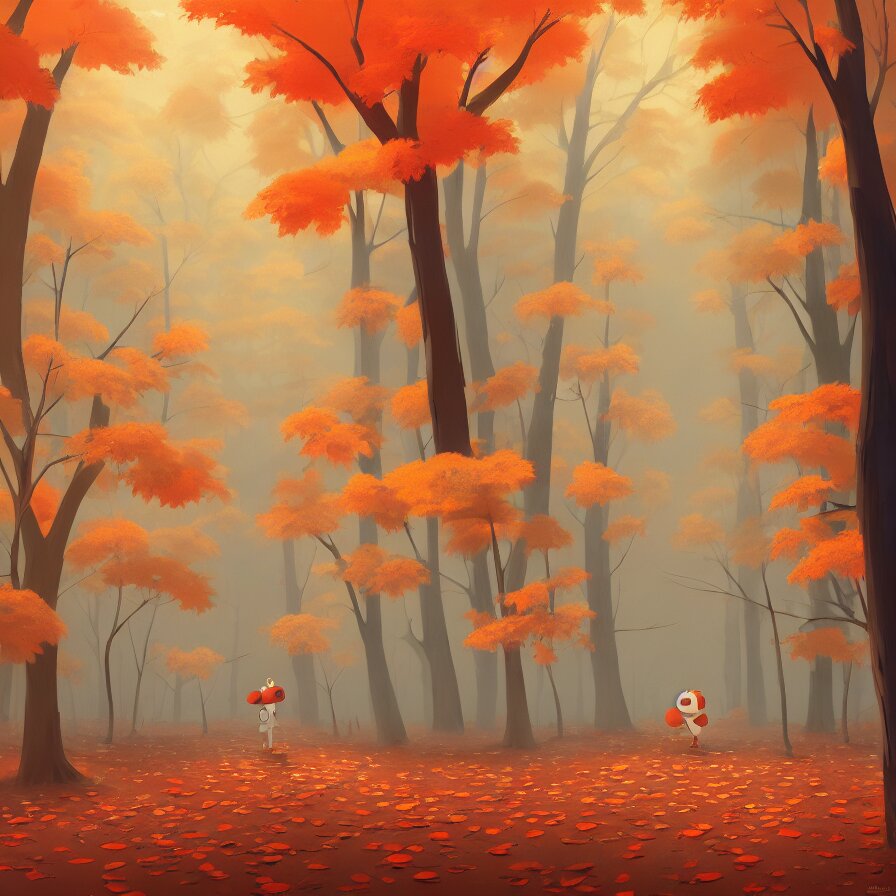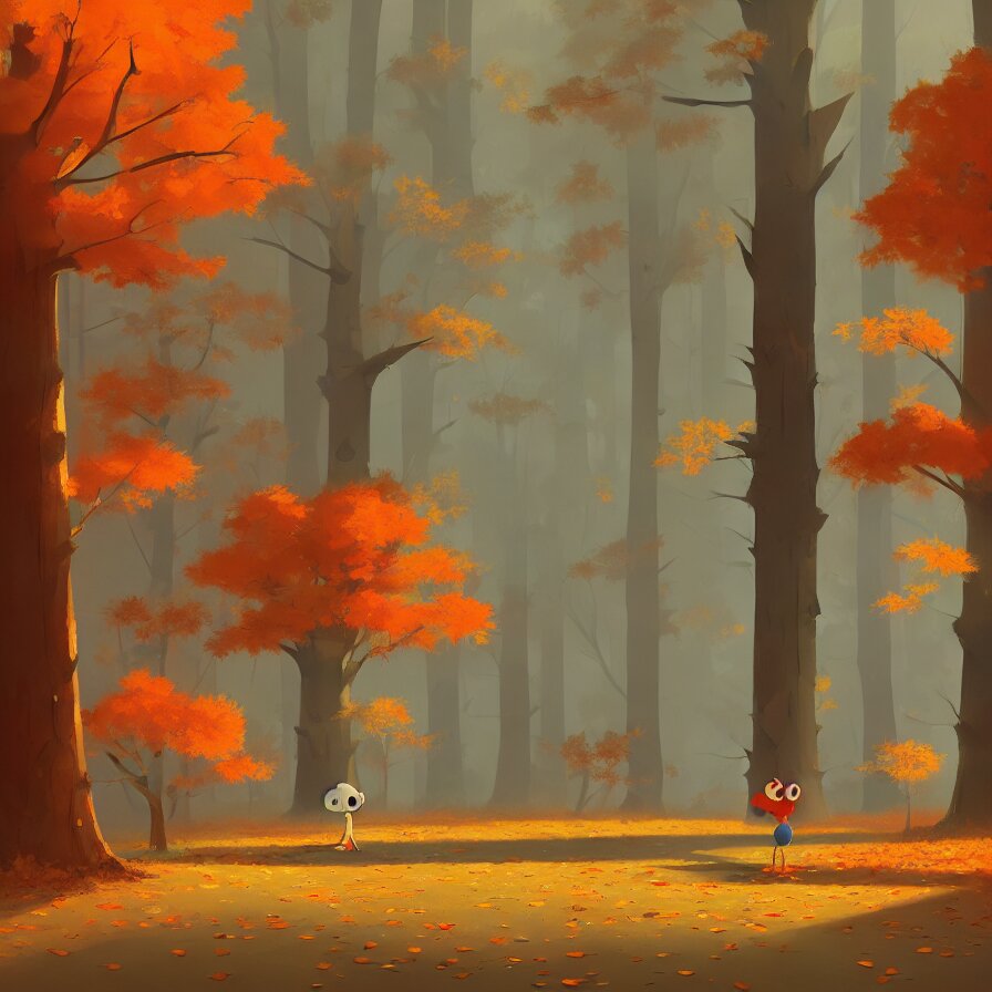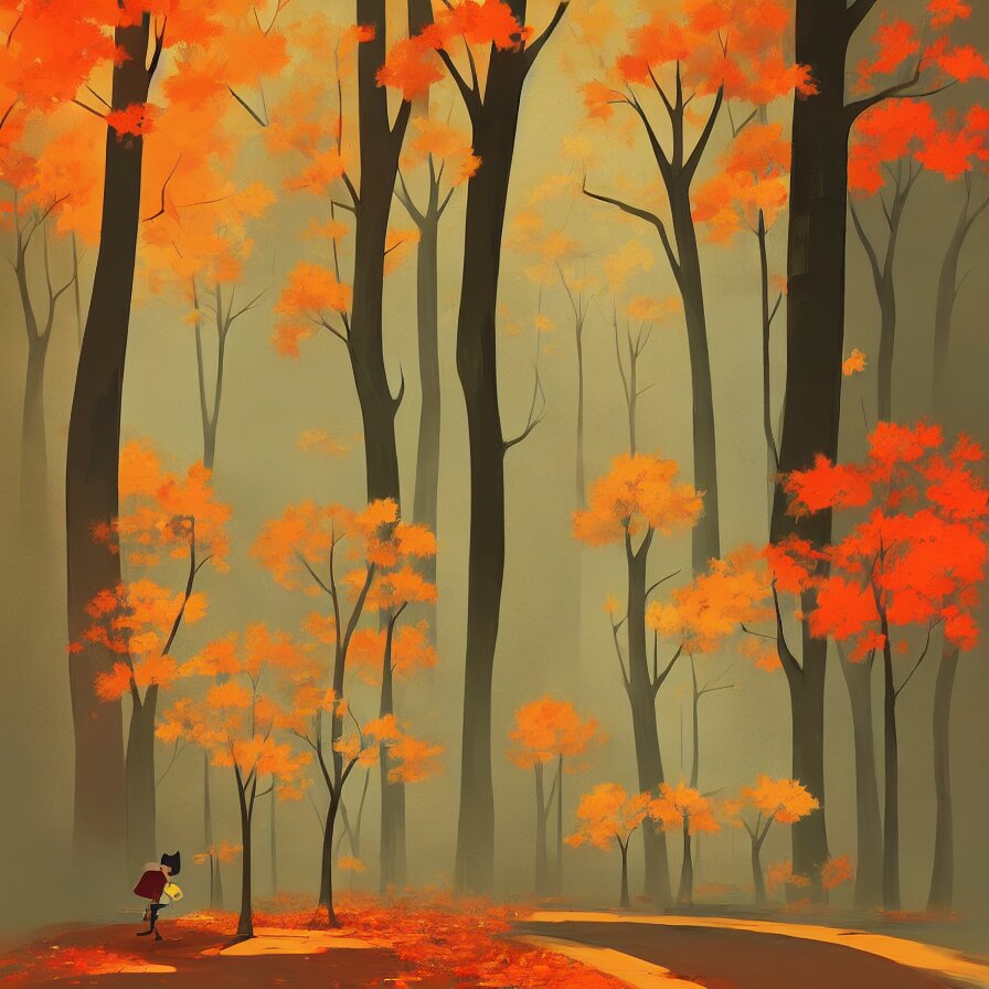 Goro fujita ilustration a forest full of leaves on the ground, tall autumn trees that let in small streaks of light to the ground, painting by goro fujita, sharp focus, highly detailed, artstation