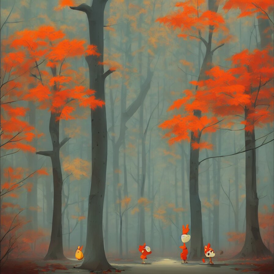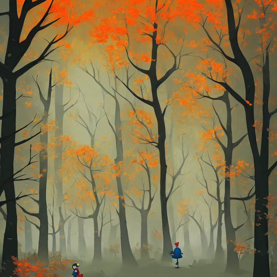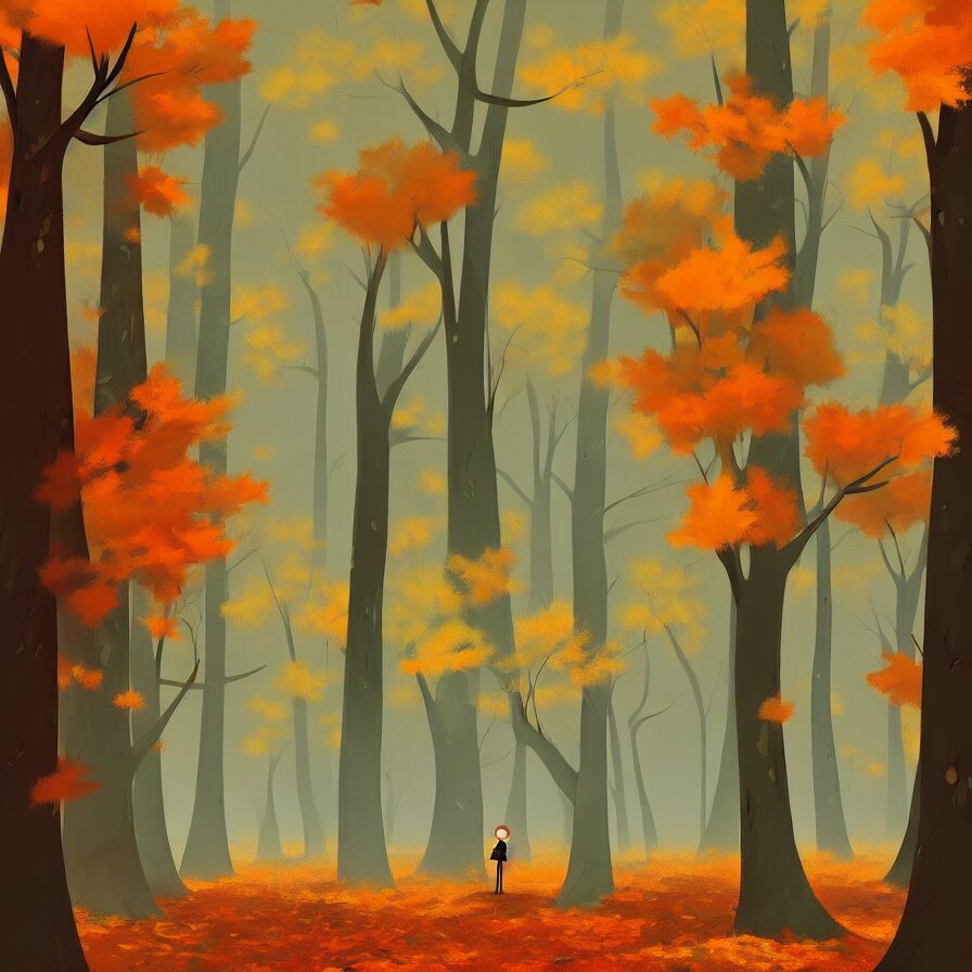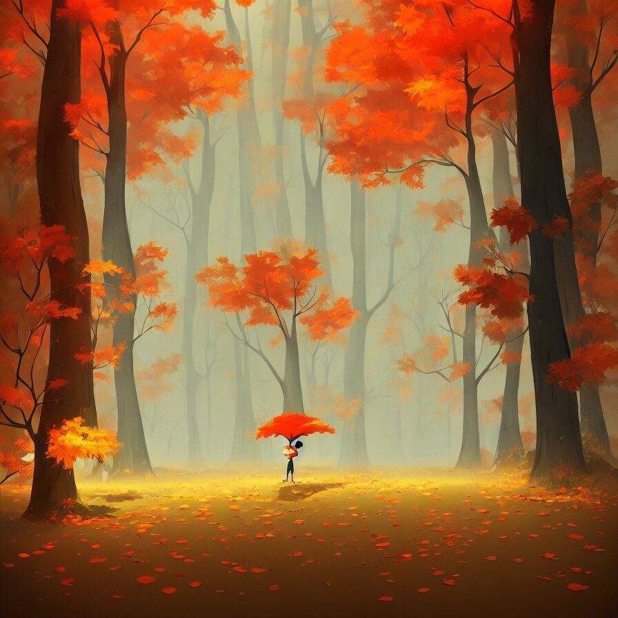 Goro fujita ilustration a forest full of leaves on the ground, tall autumn trees that let in small streaks of light to the ground, painting by goro fujita, sharp focus, highly detailed, artstation