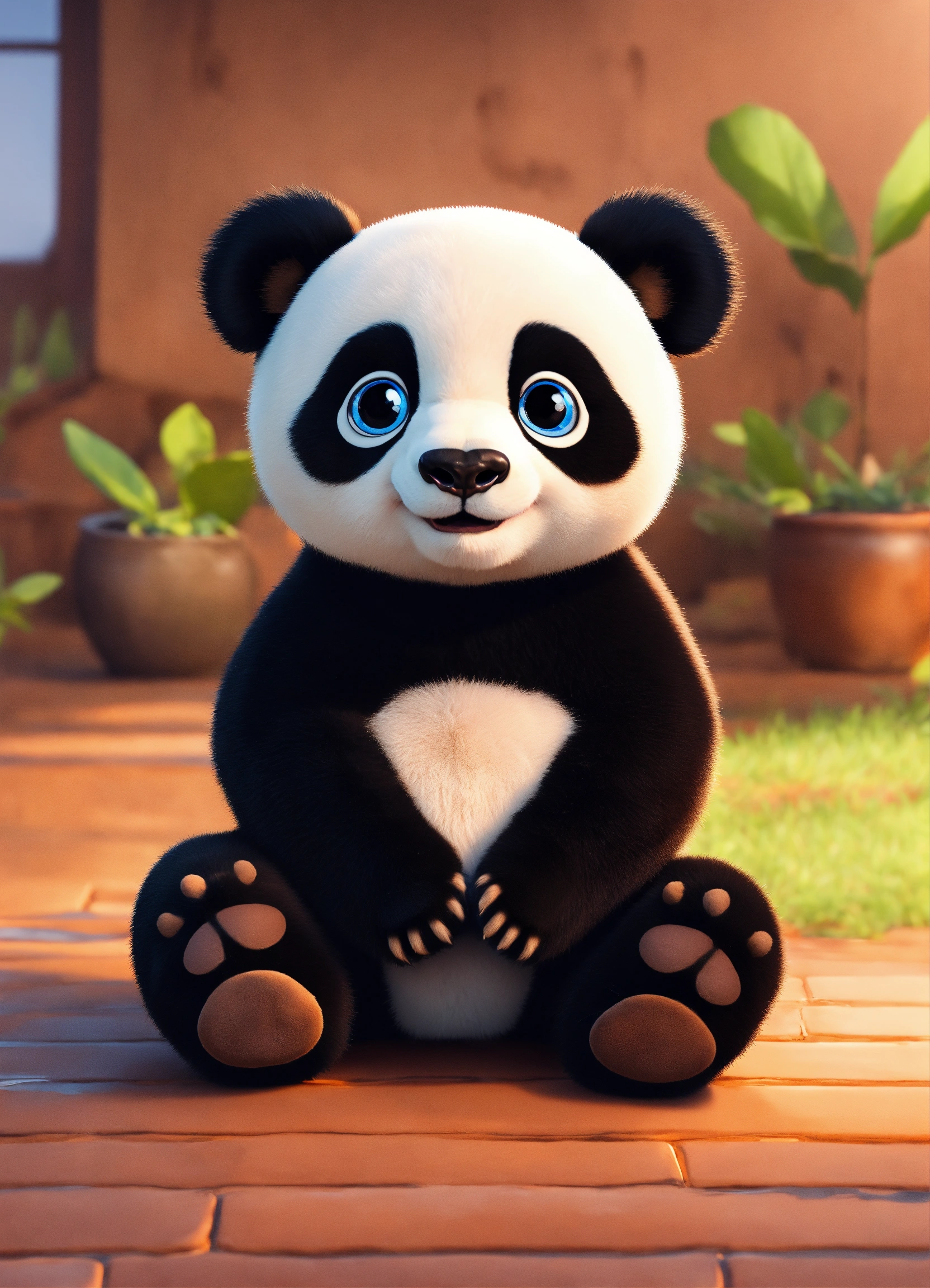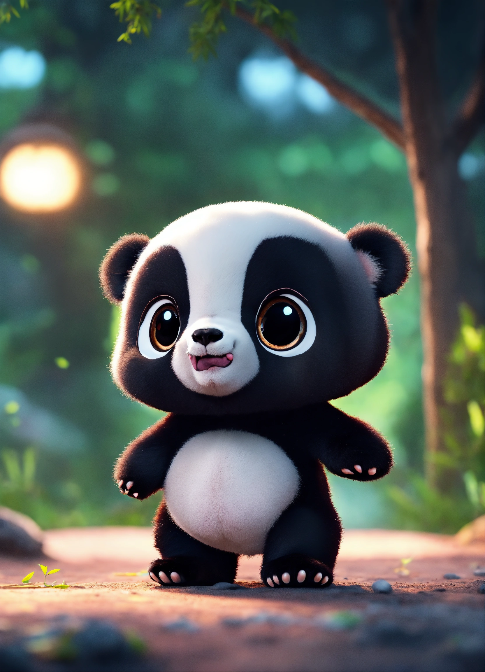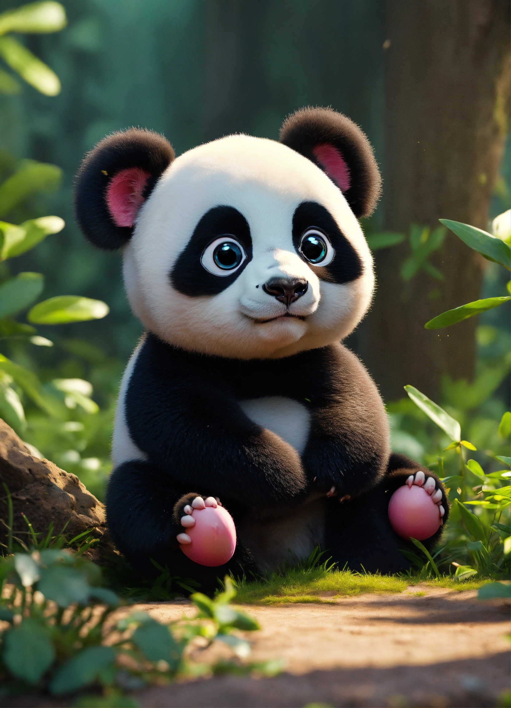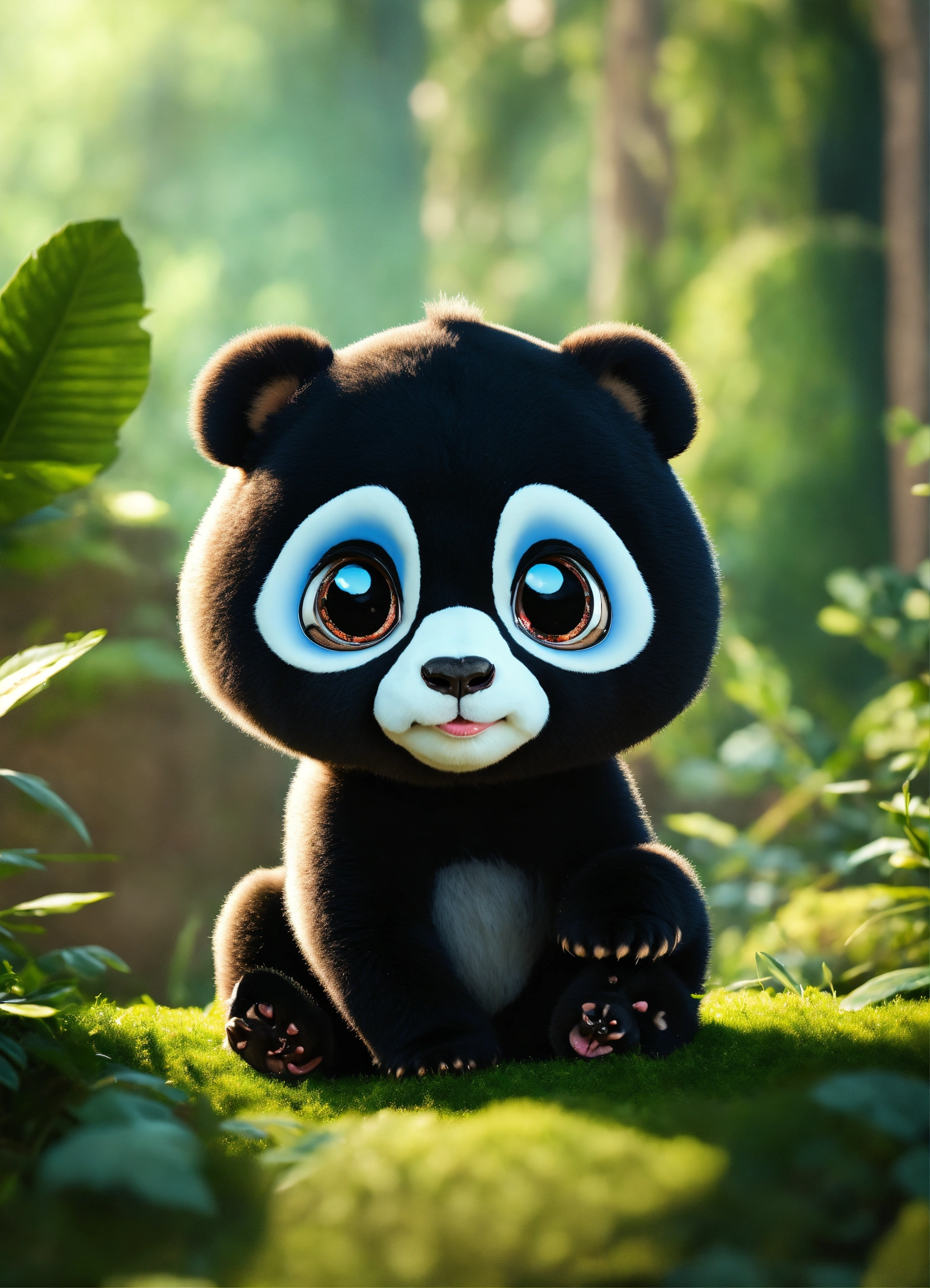 A cute black baby panda with big eyes