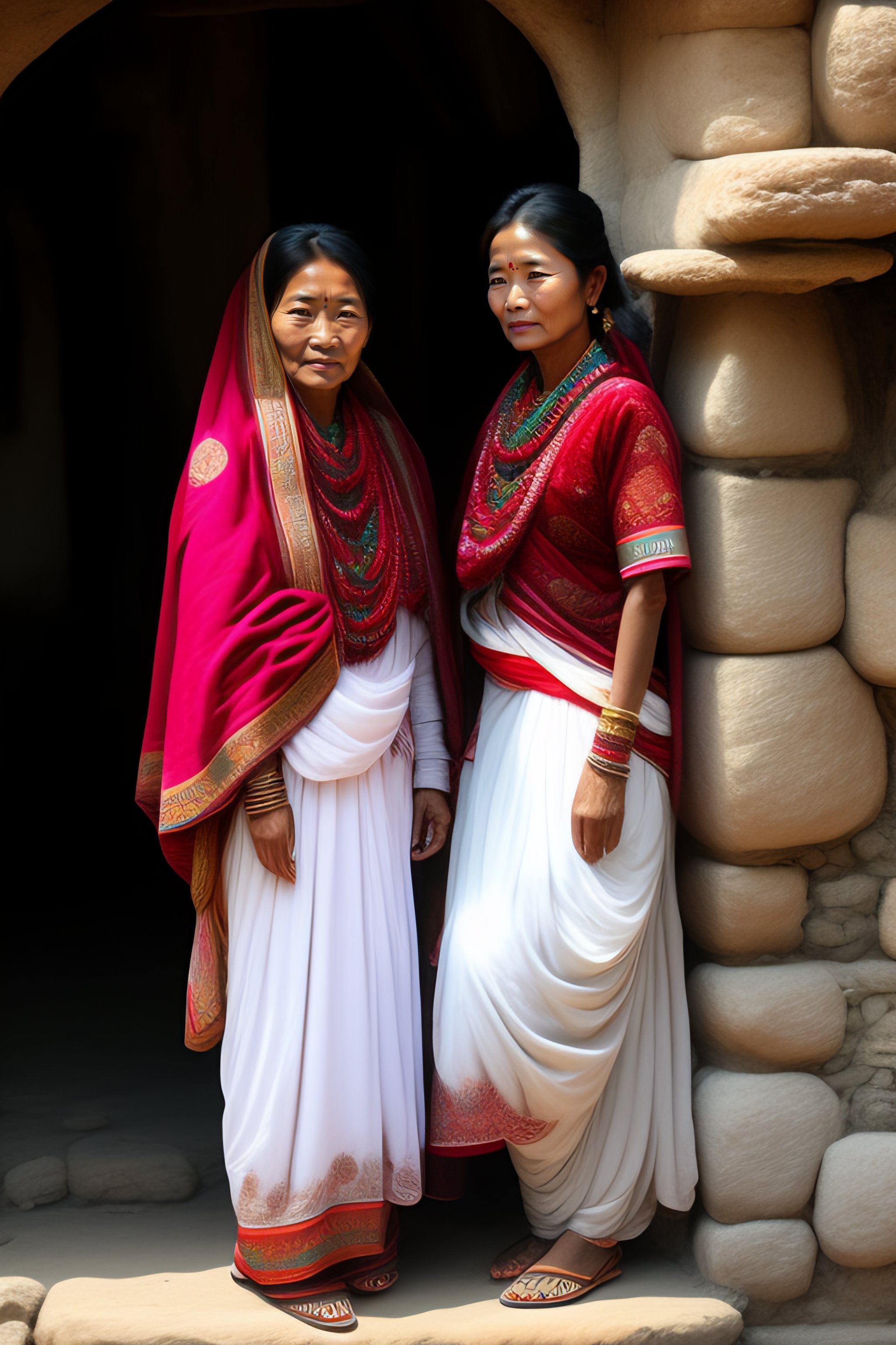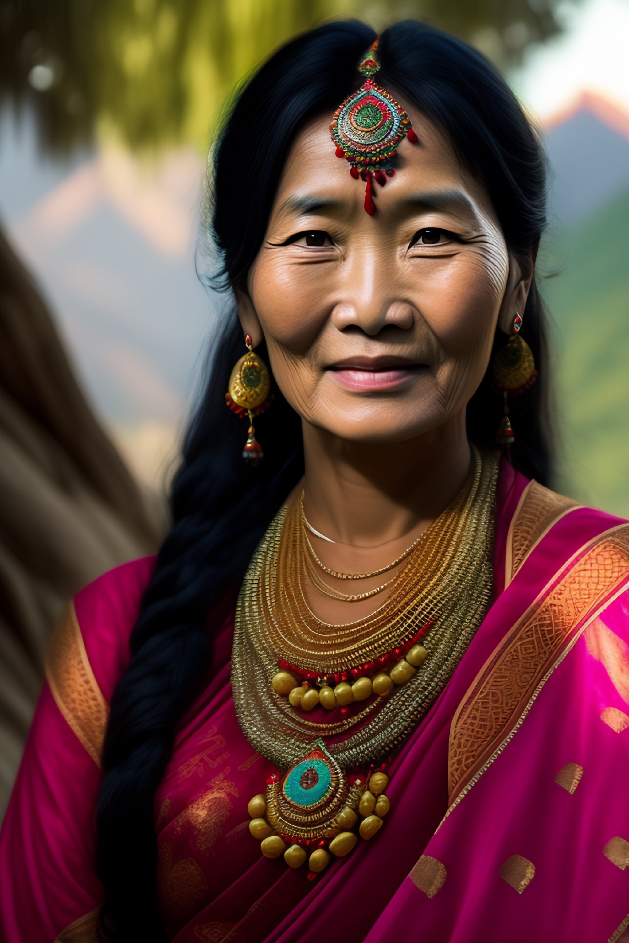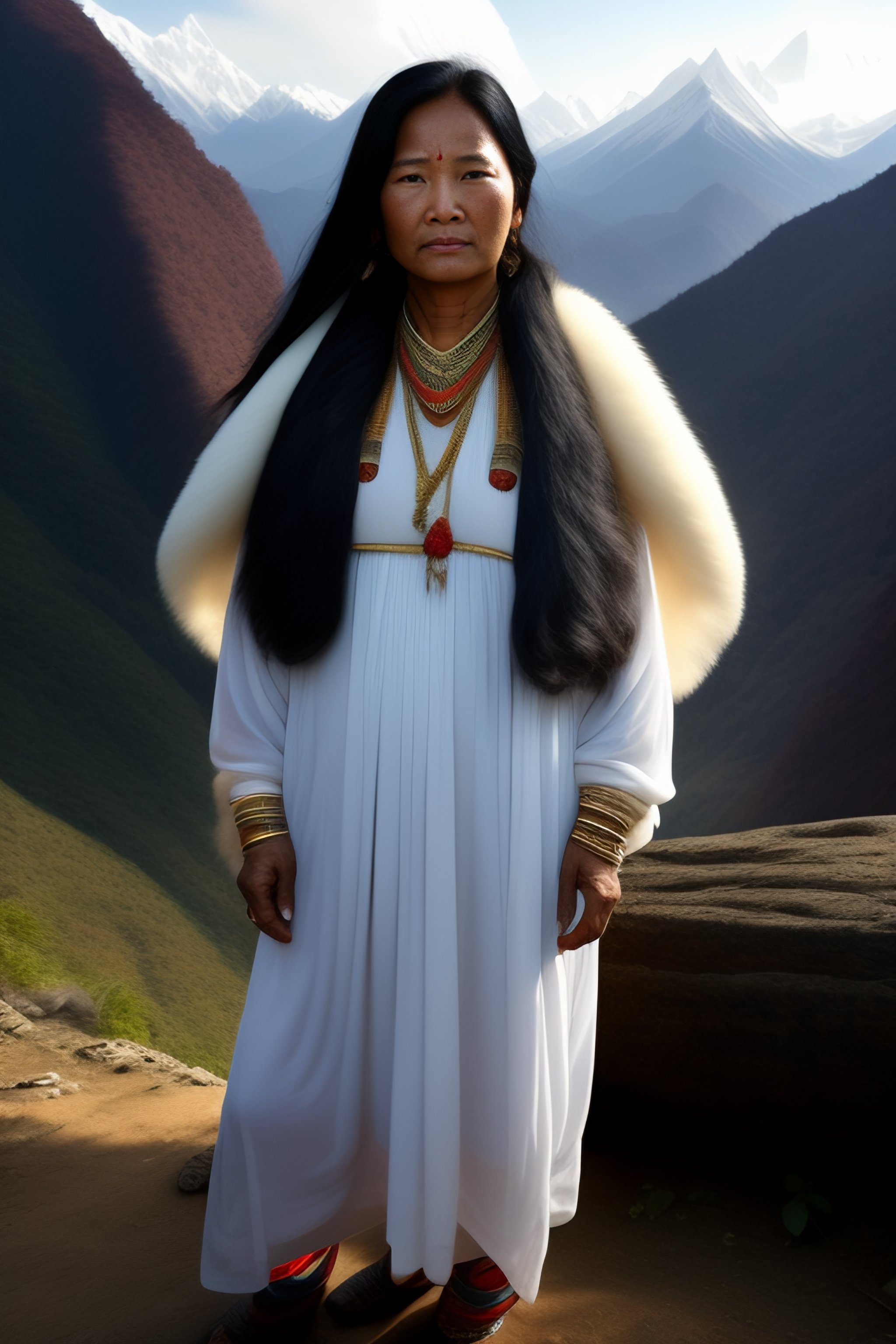 Nepali women mountain leopard soft transparent white clothes long hair