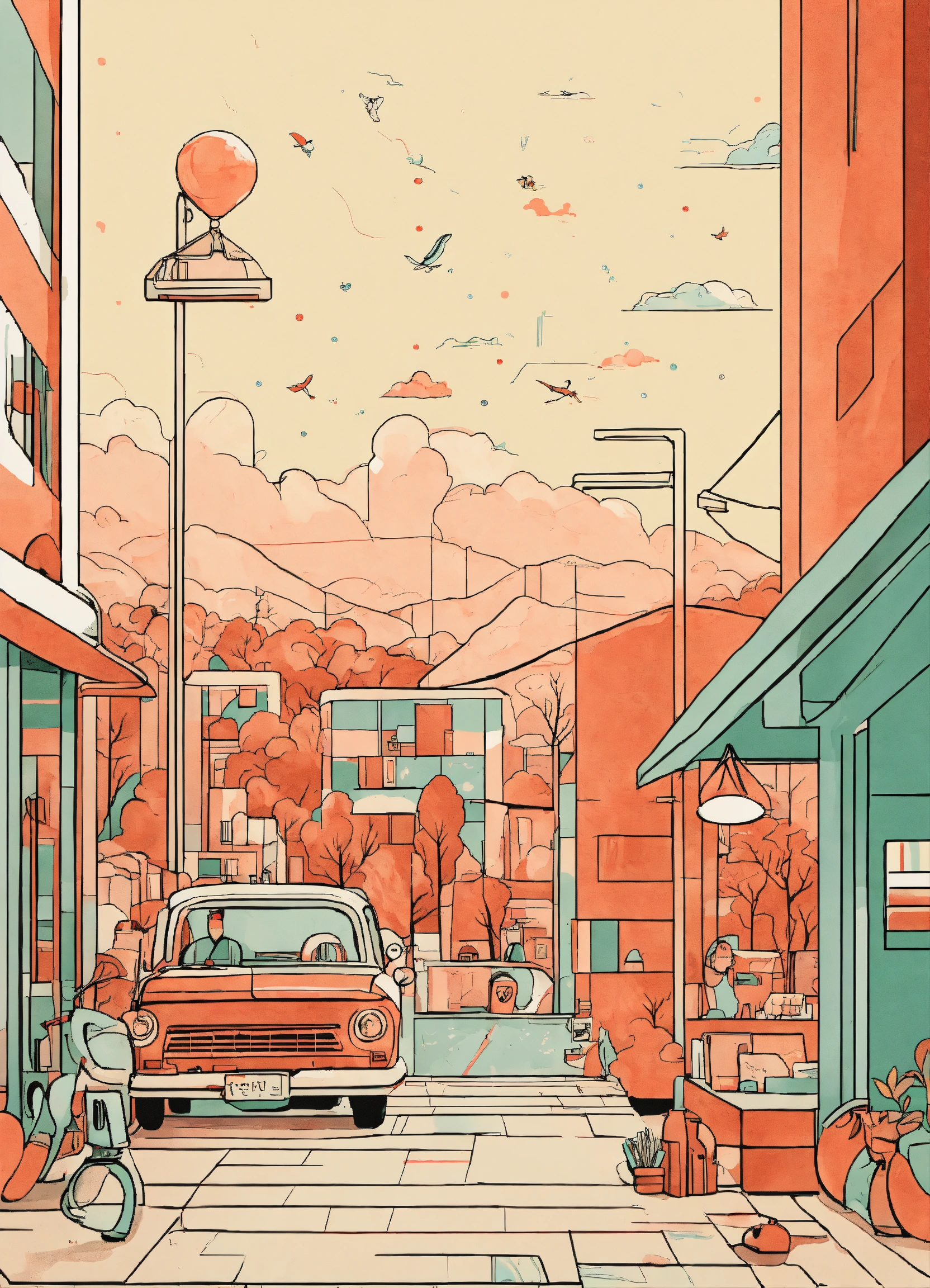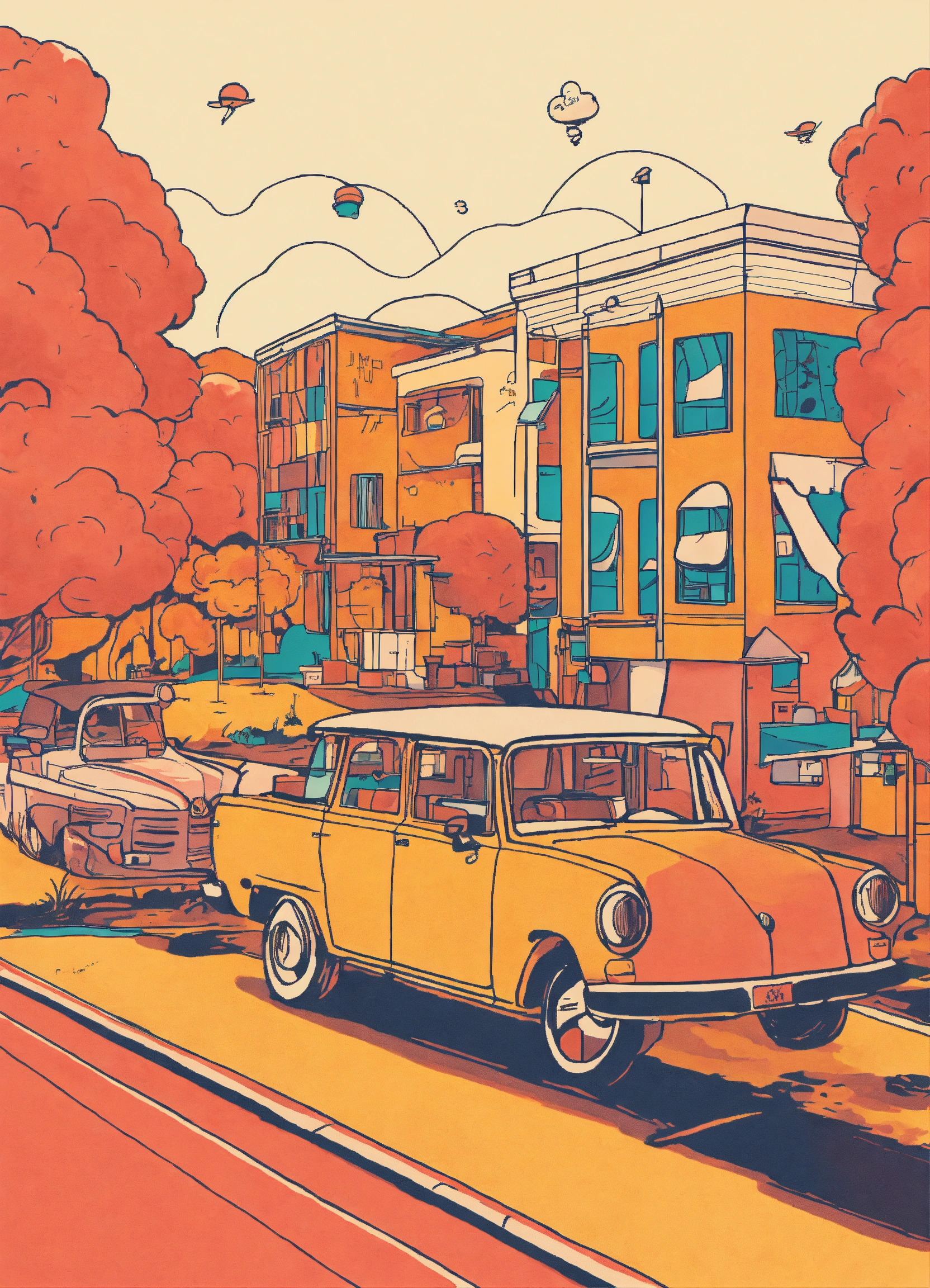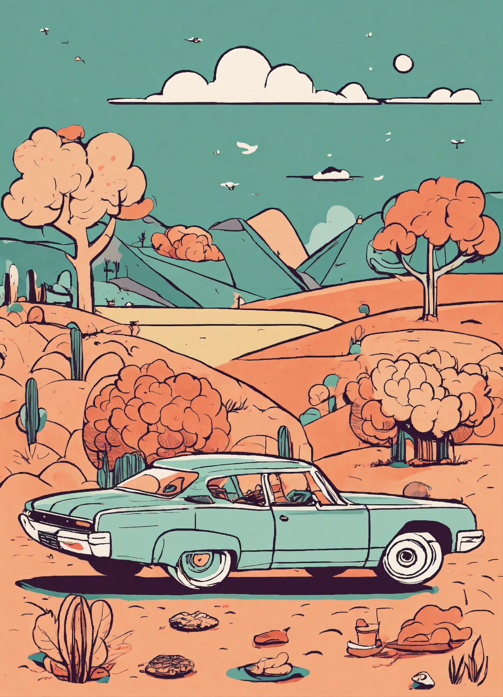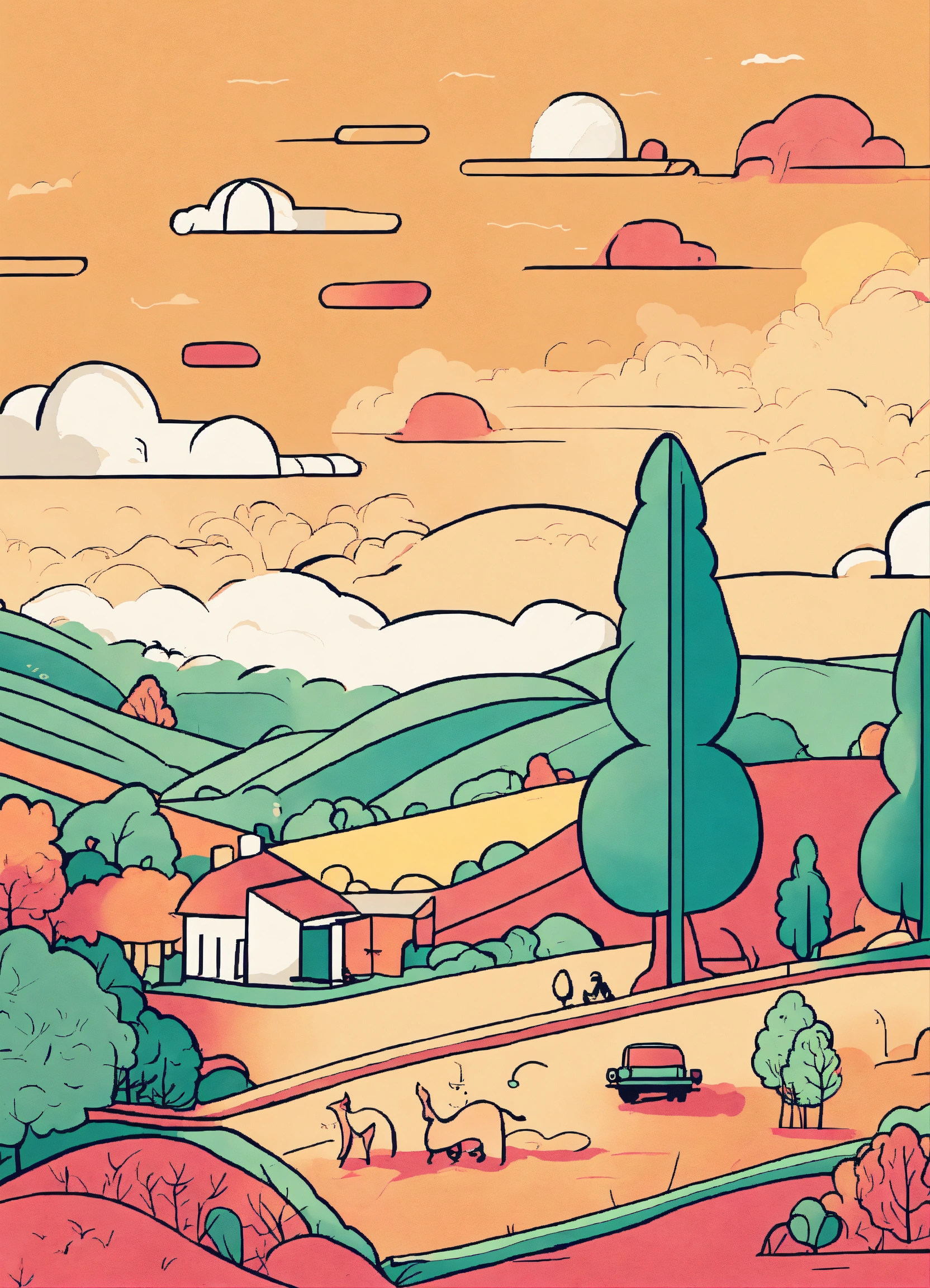 "create a minimalistic line art illustration that captures a humorous and playful scene, reminiscent of retro felt-tip marker drawings. the design should evoke nostalgia and simplicity, with clean lines and a limited color palette."