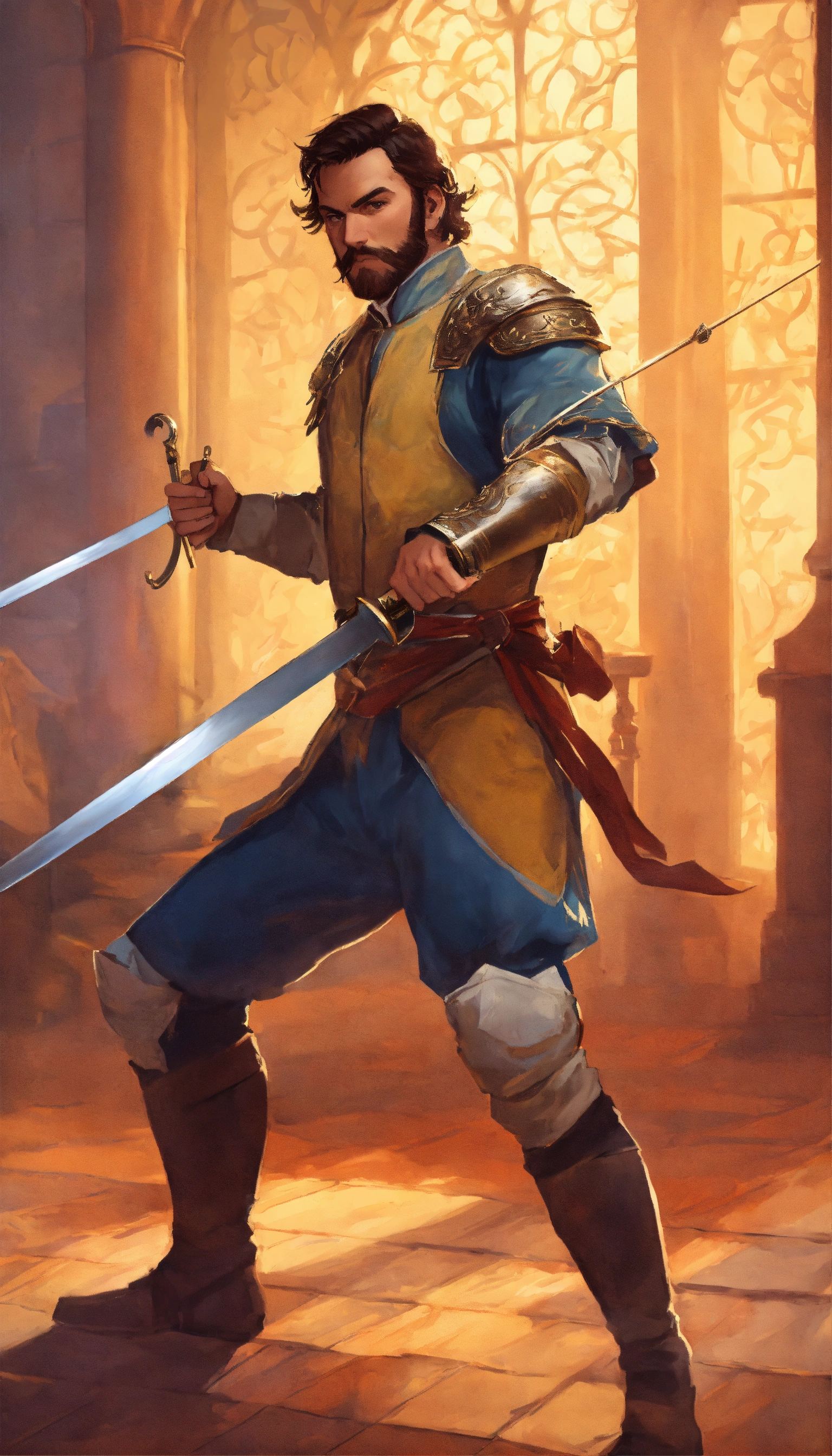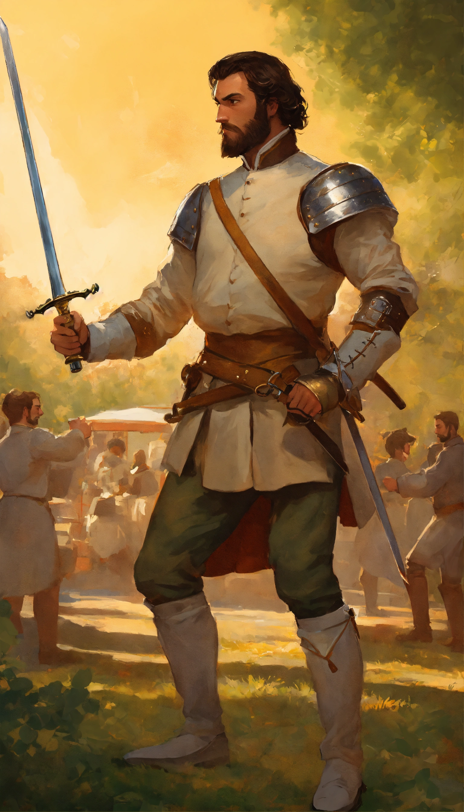 he has his sword in one hand qnd a beer in the other