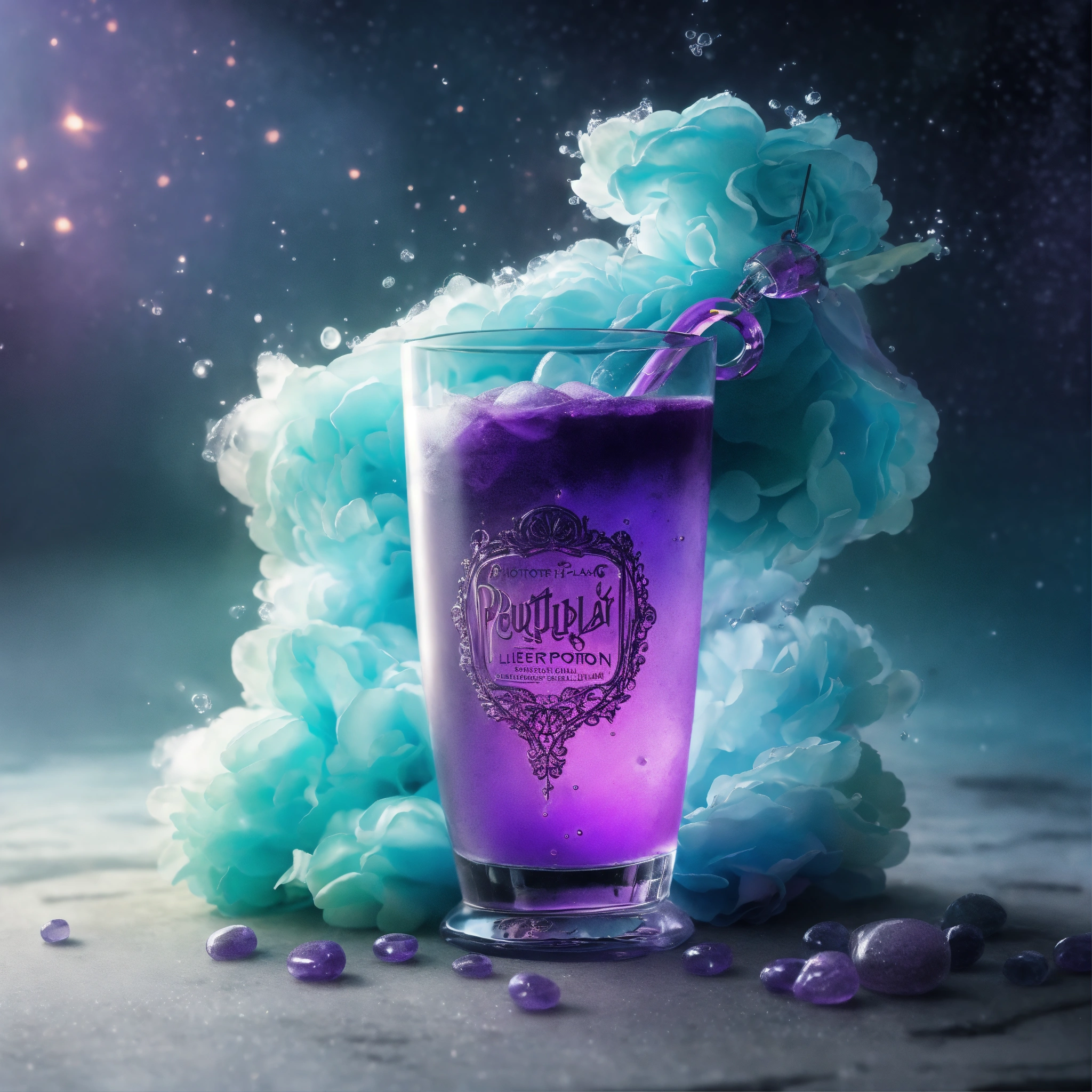 Photorealistic purple sleep potion drink