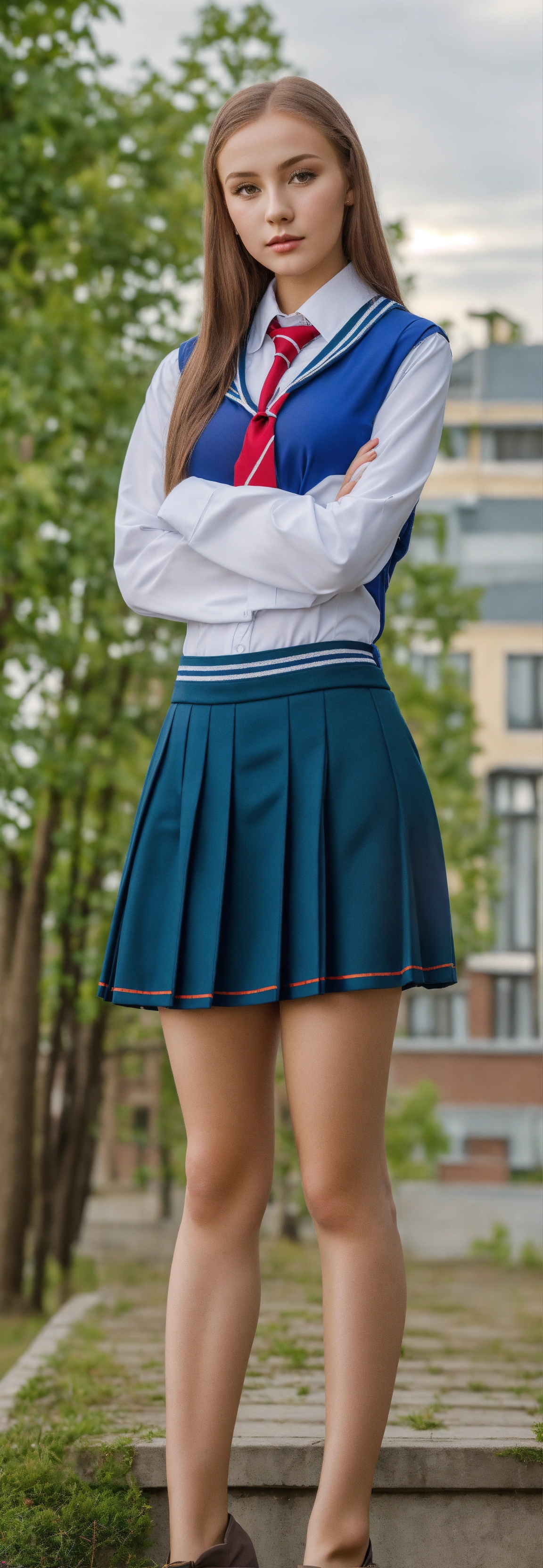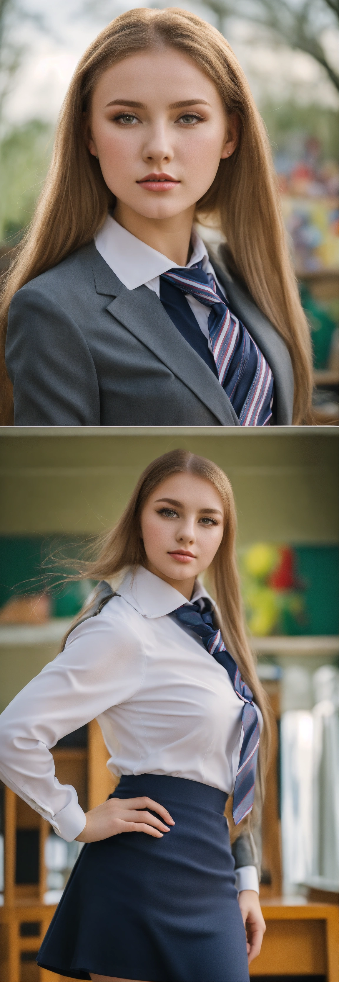 Hot adult woman, slavic attractive schoolgirls in uniform, private school uniform, jacket, tight shirt, skirt, tights, feminine, school scenes, aura of beauty, relaxation, released tie, wide bust, belarussian girl, in belarus, sharp focus, 8k high definition, clothes too small and thin