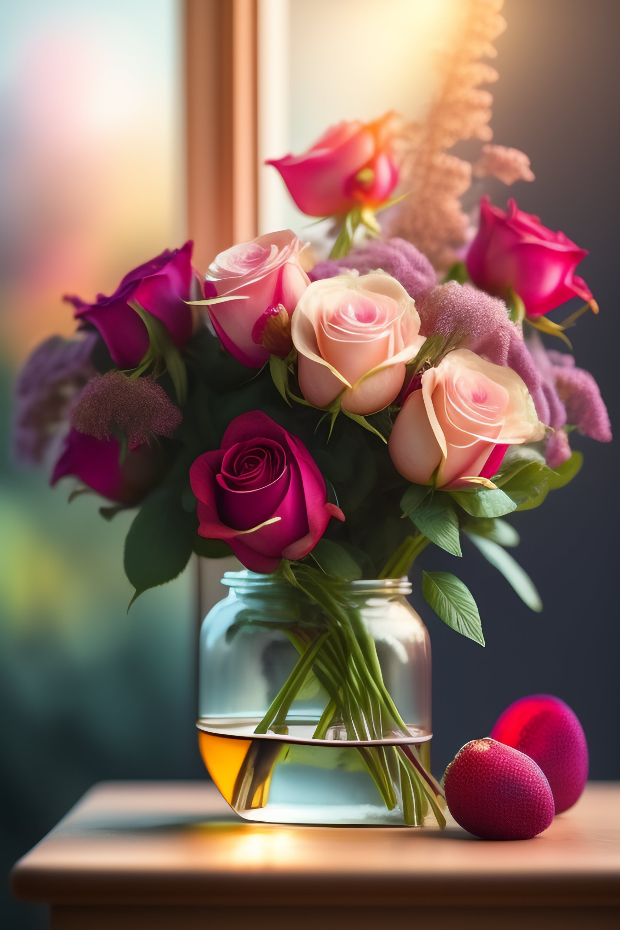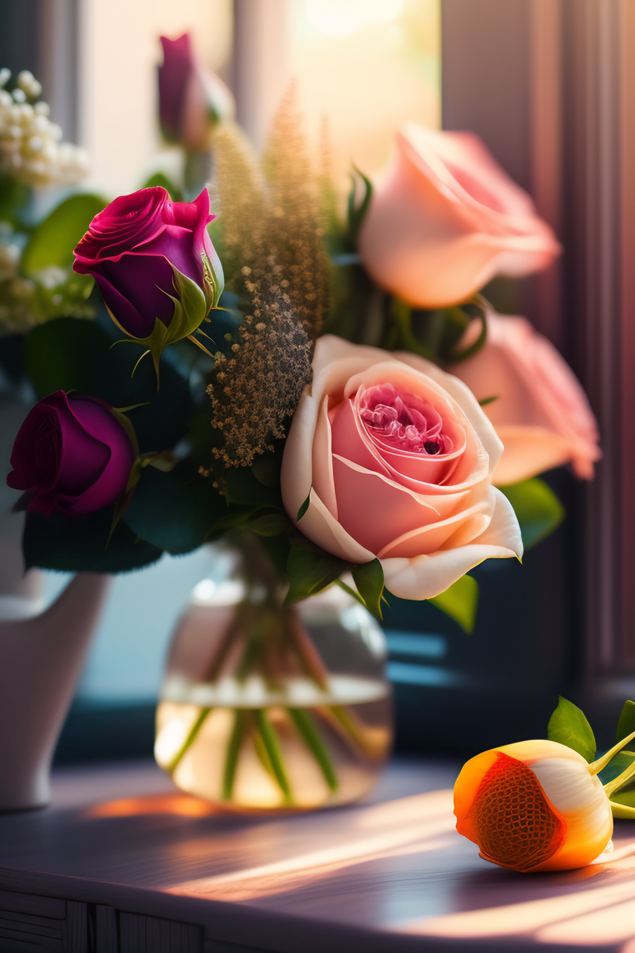 Web site, bouquet, still life, flower arrangement, different flowers, rose color, tender, clouds, dream, beauty, art, impressionism, ui, ux, web design