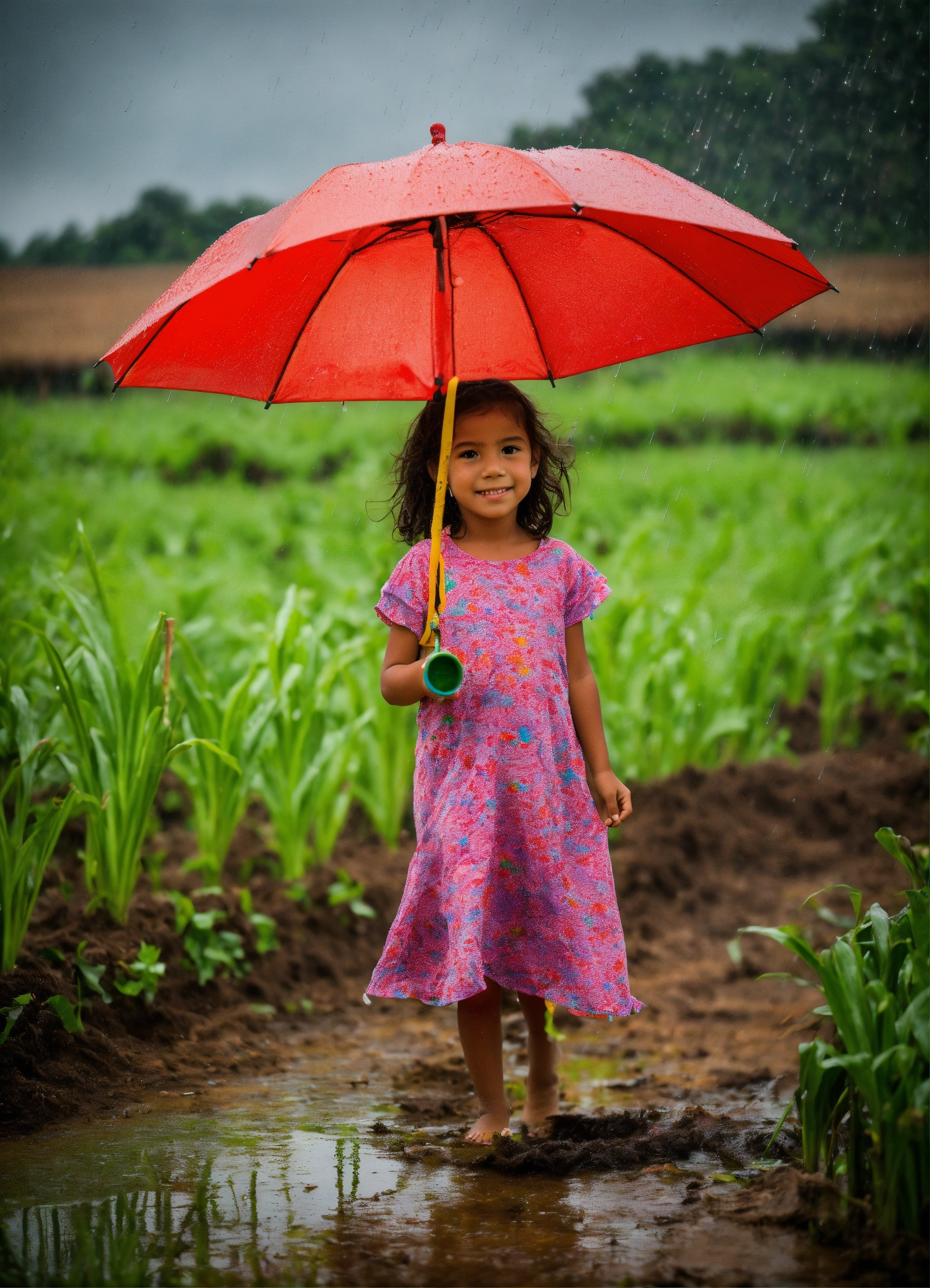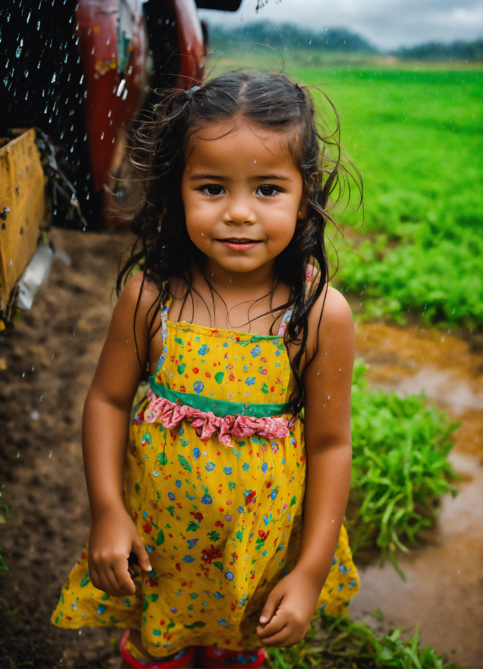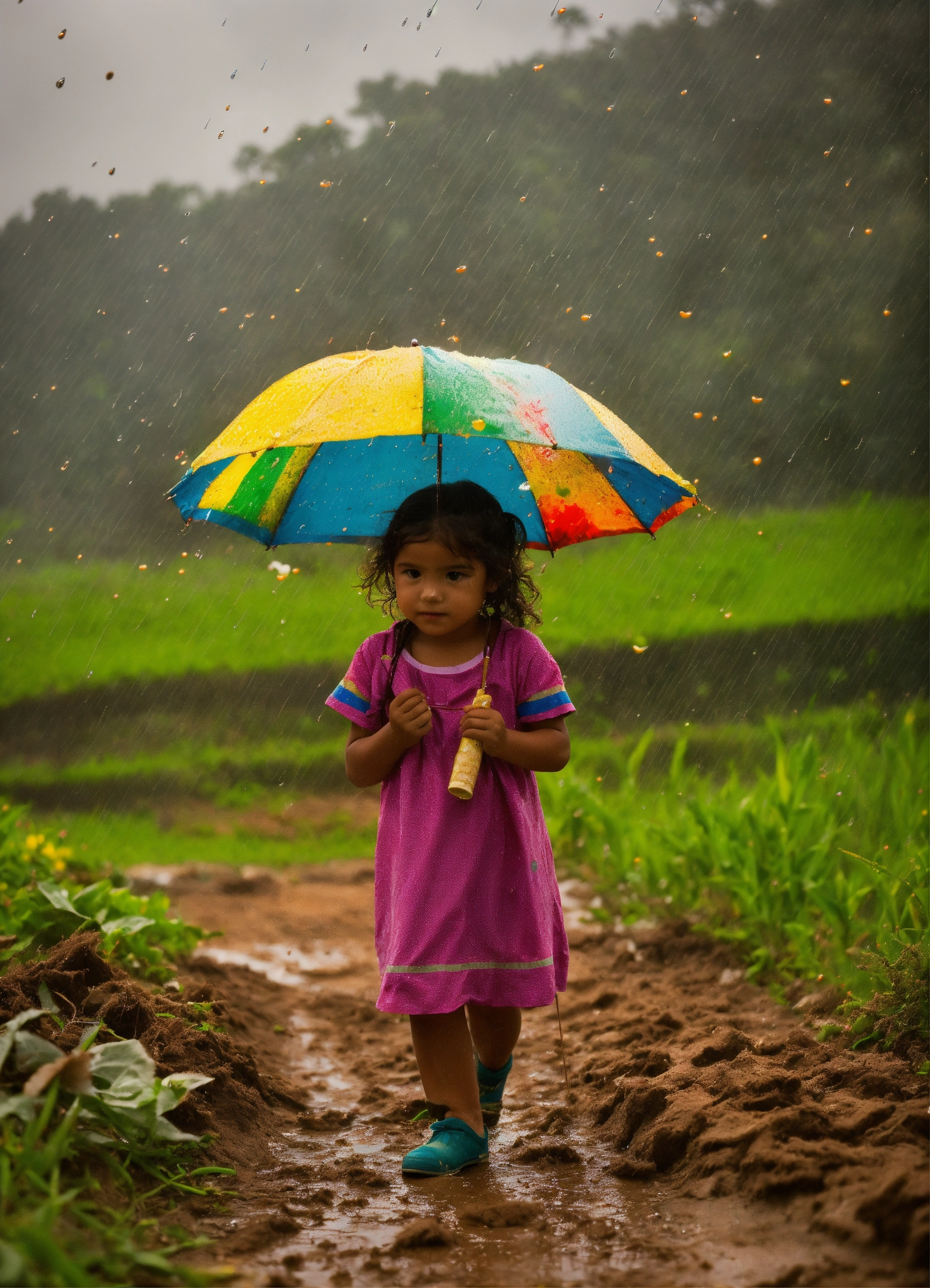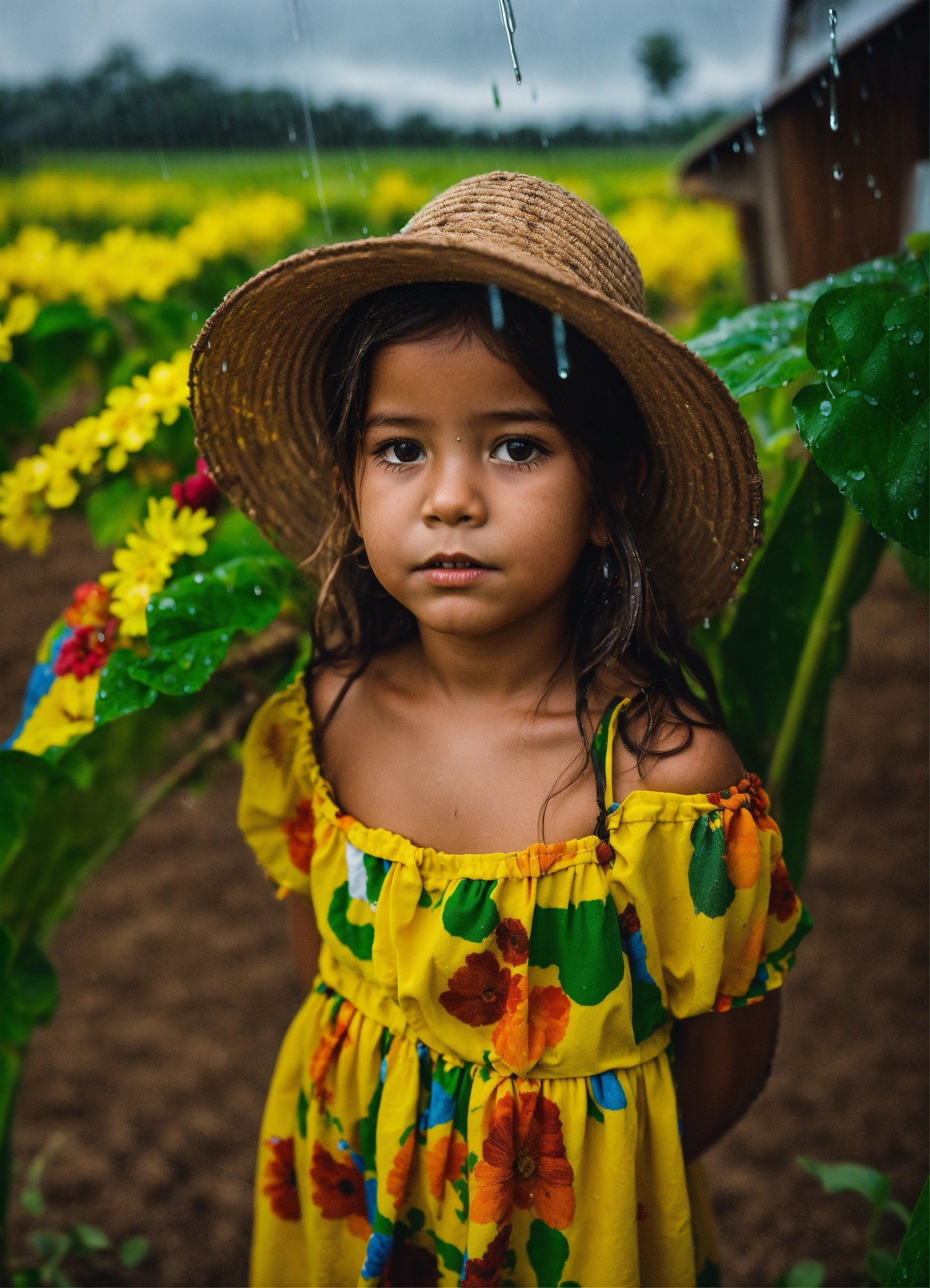 A brazilian lil girl on a farm wile its raining art
