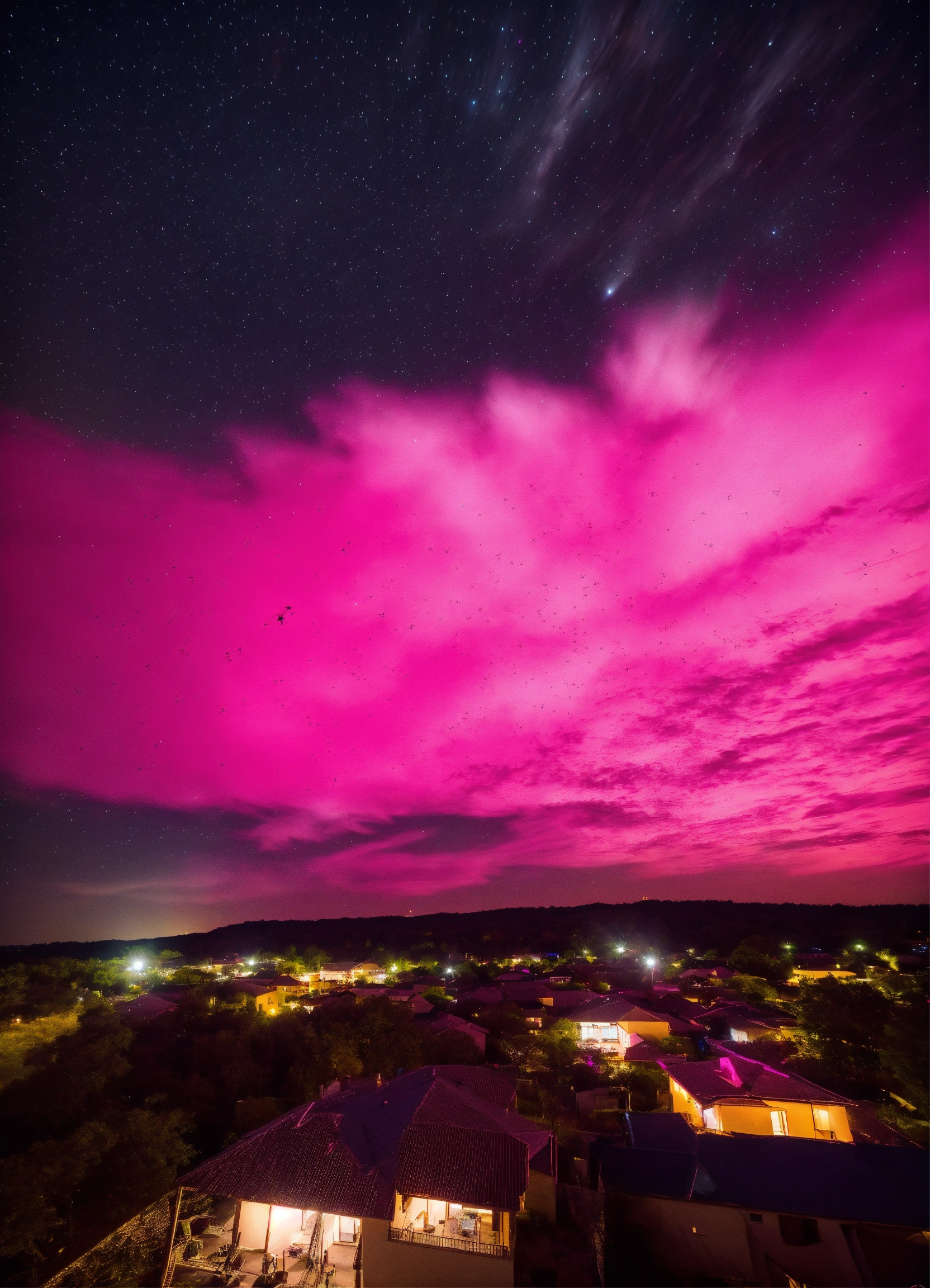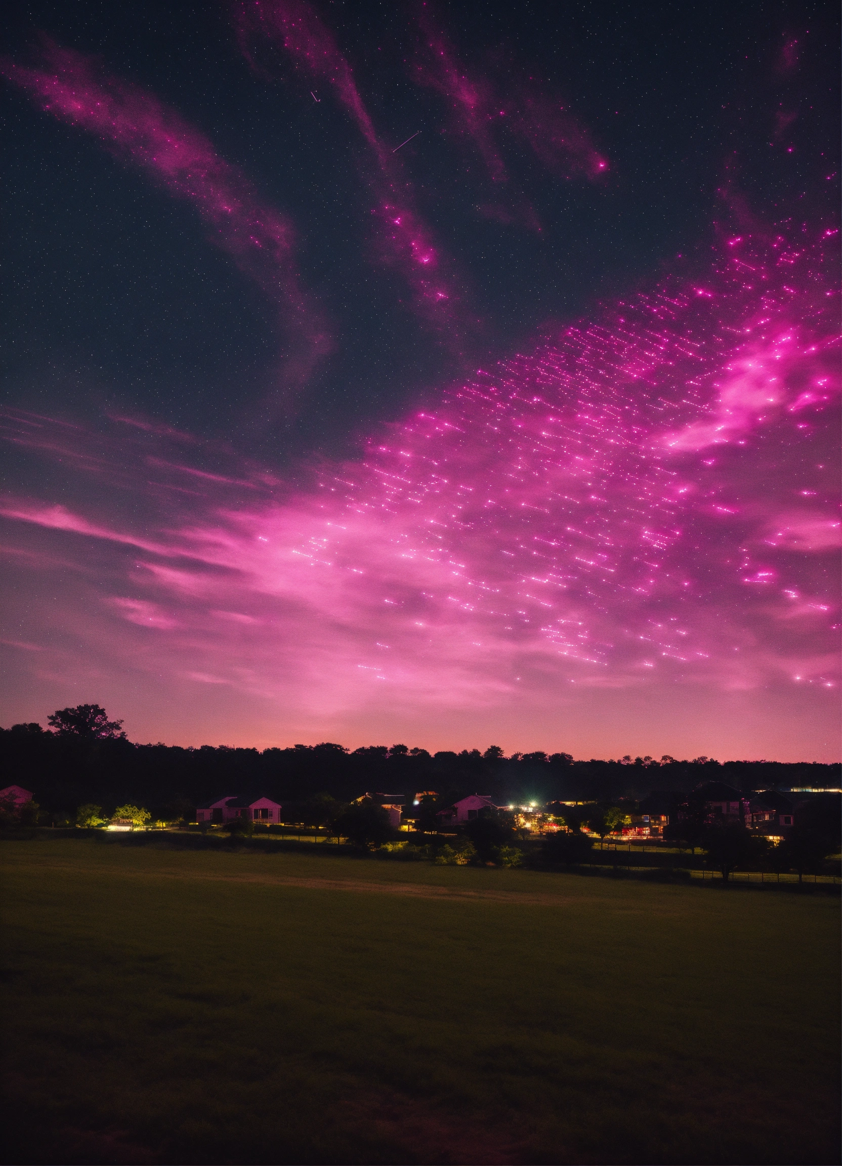 The night sky becomes a canvas of glowing pink, with drones forming patterns that represent cancer awareness.
