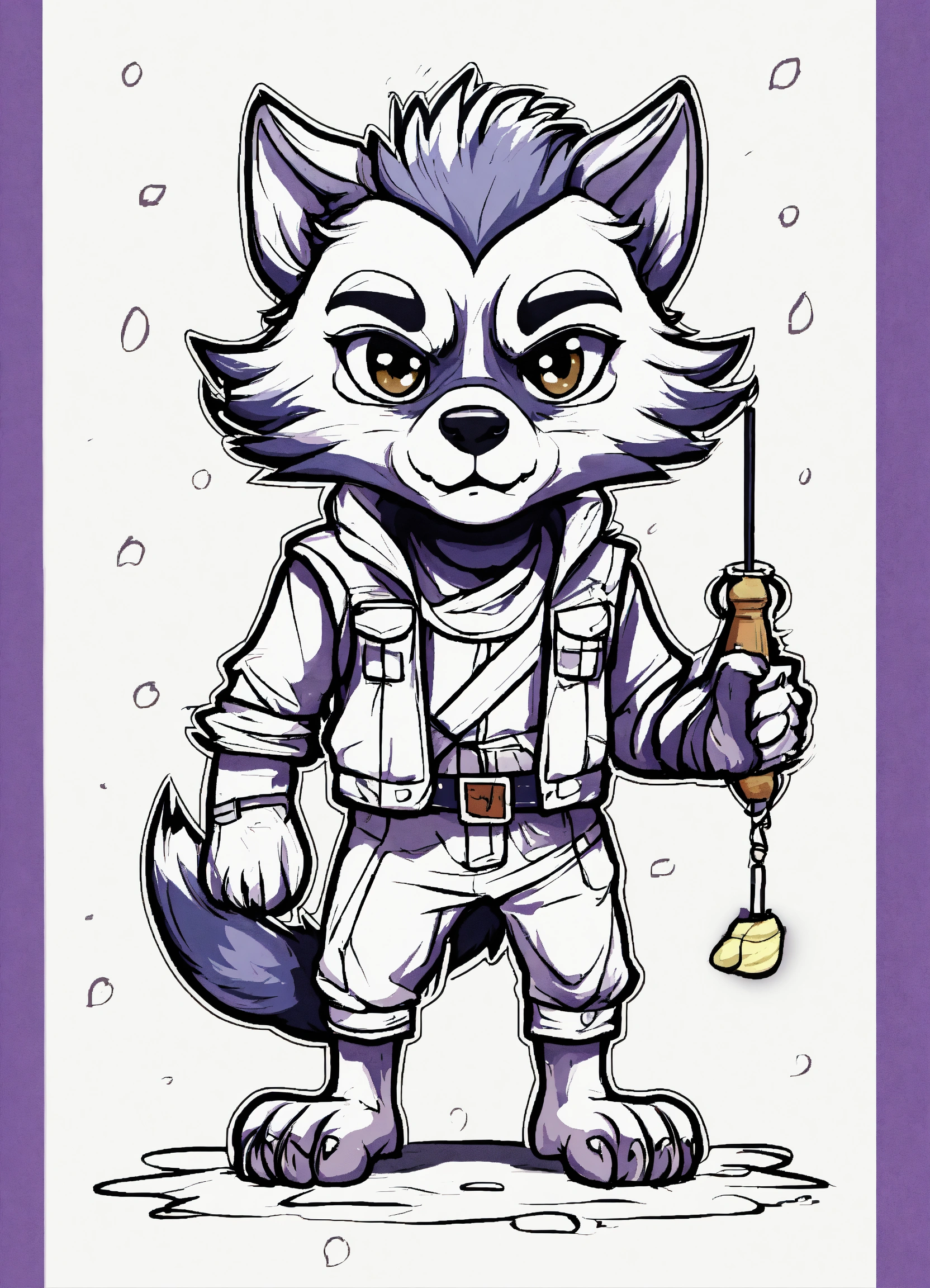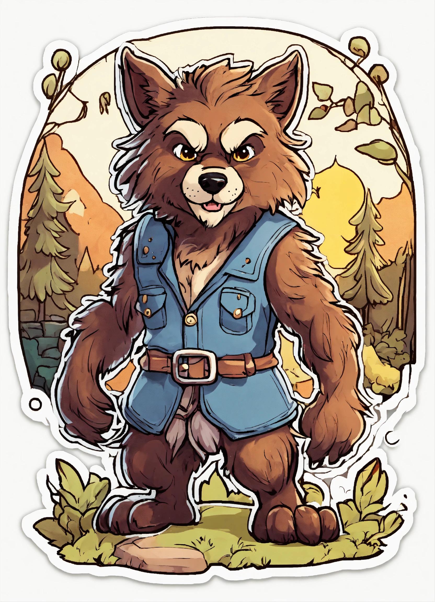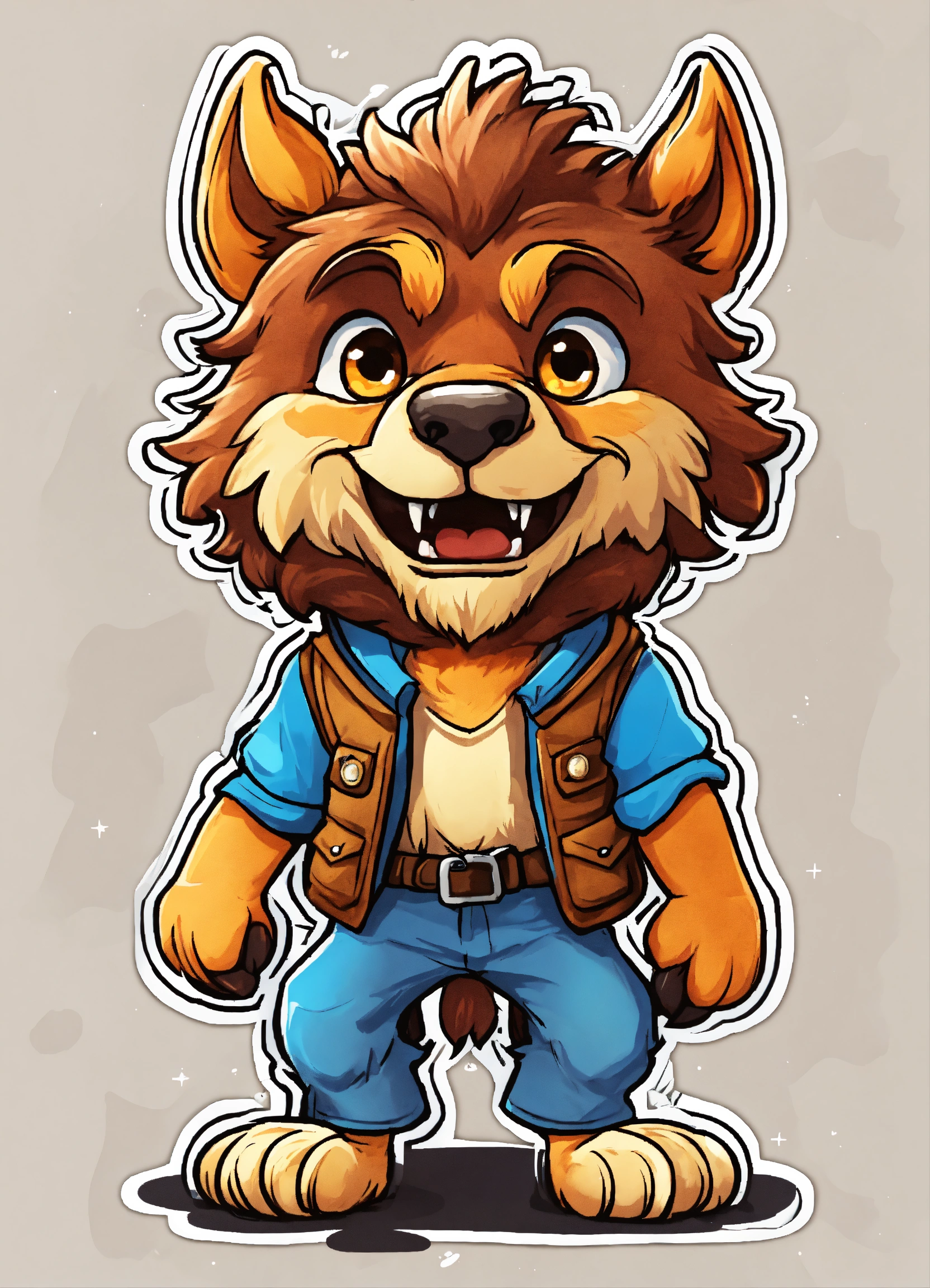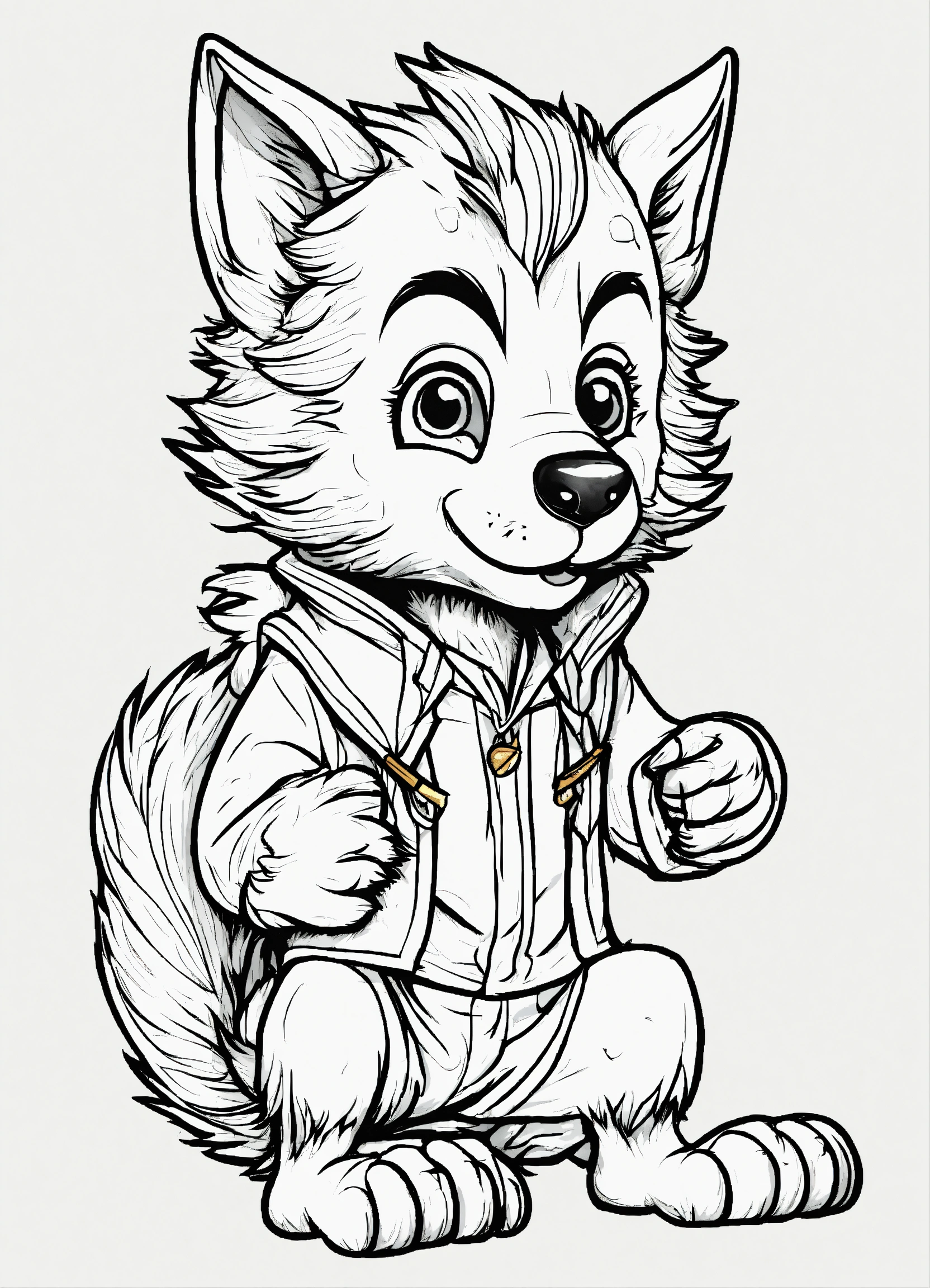 Generate a cute little werewolf illustration, 4k resolution, cartoon-sticker style with clear lines on a pure white background suitable for a children's coloring book.