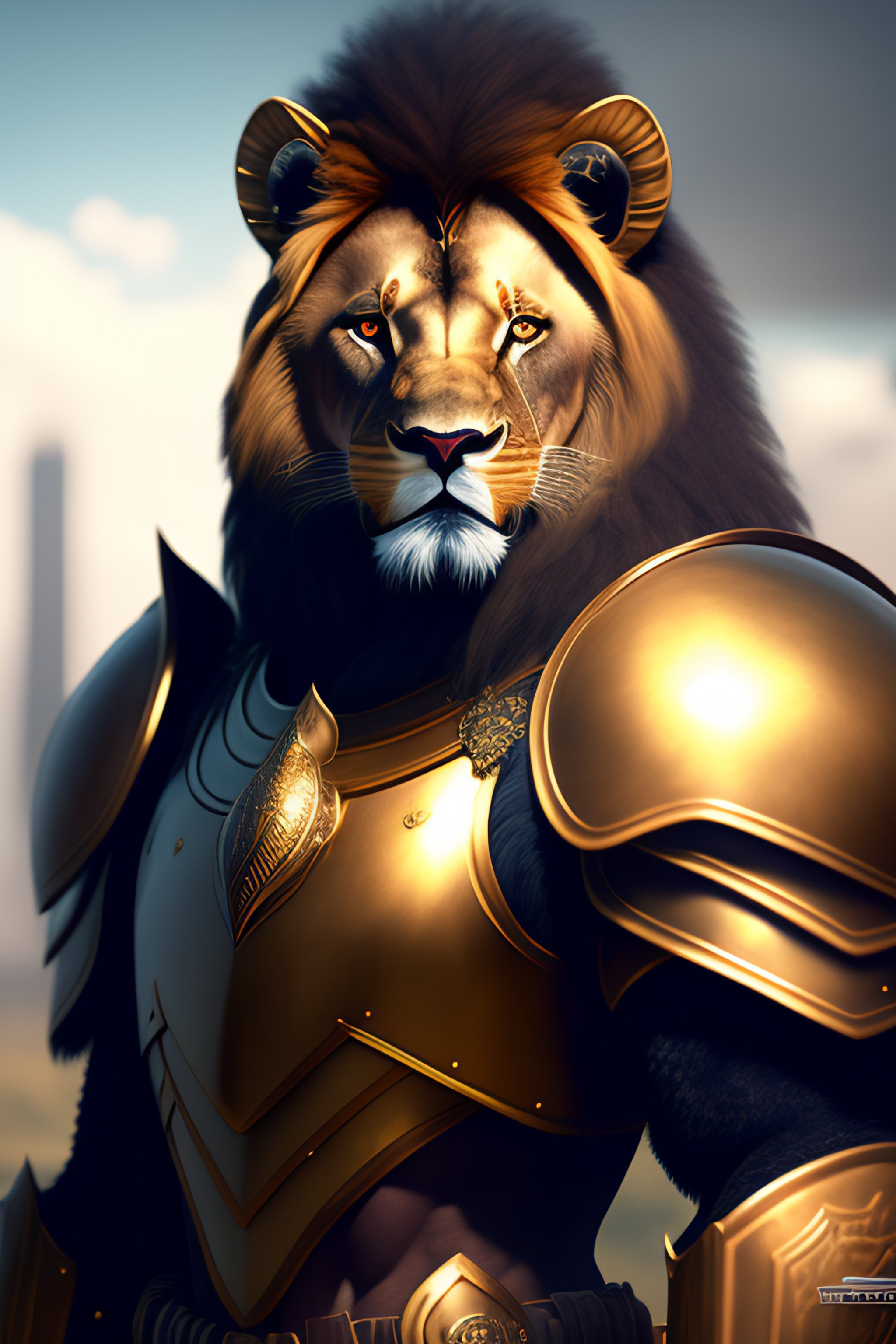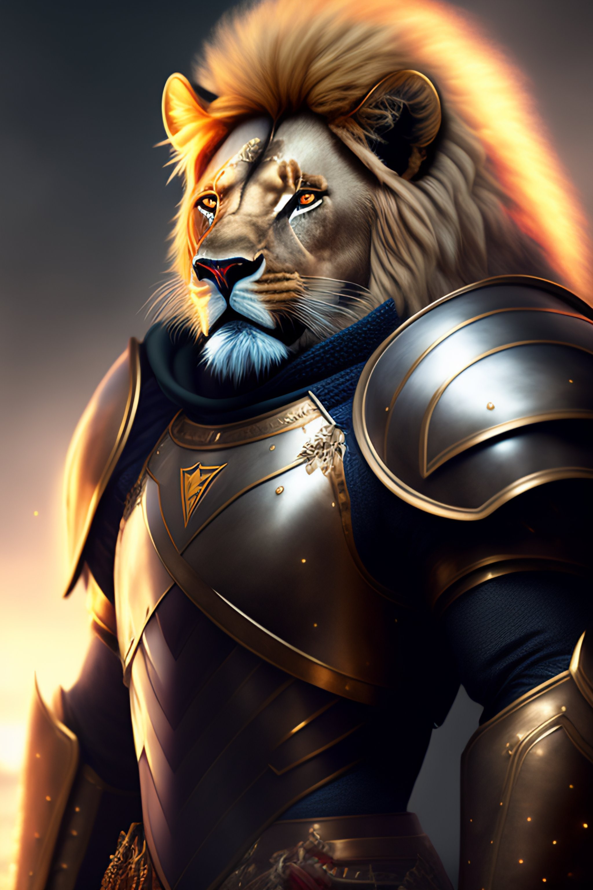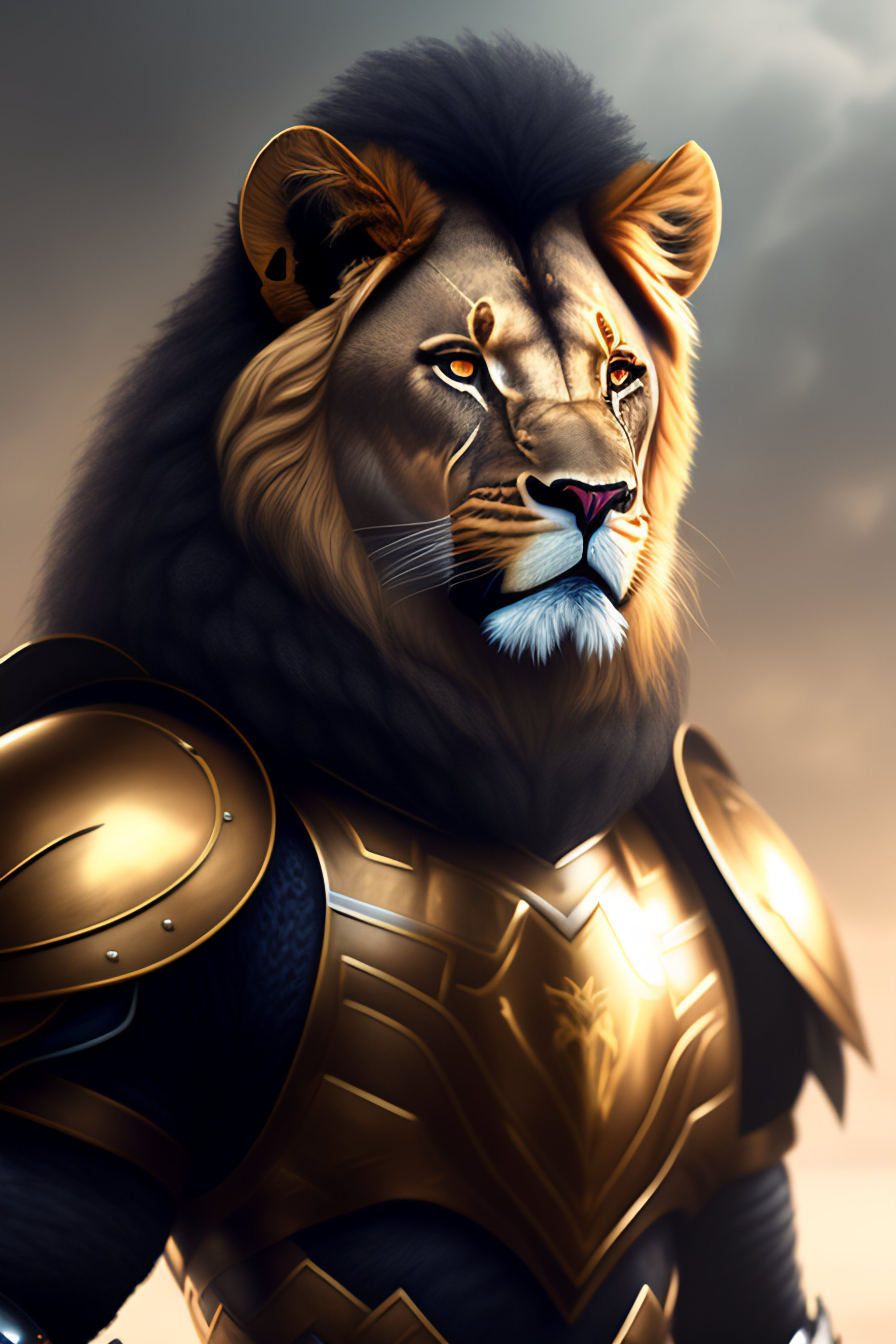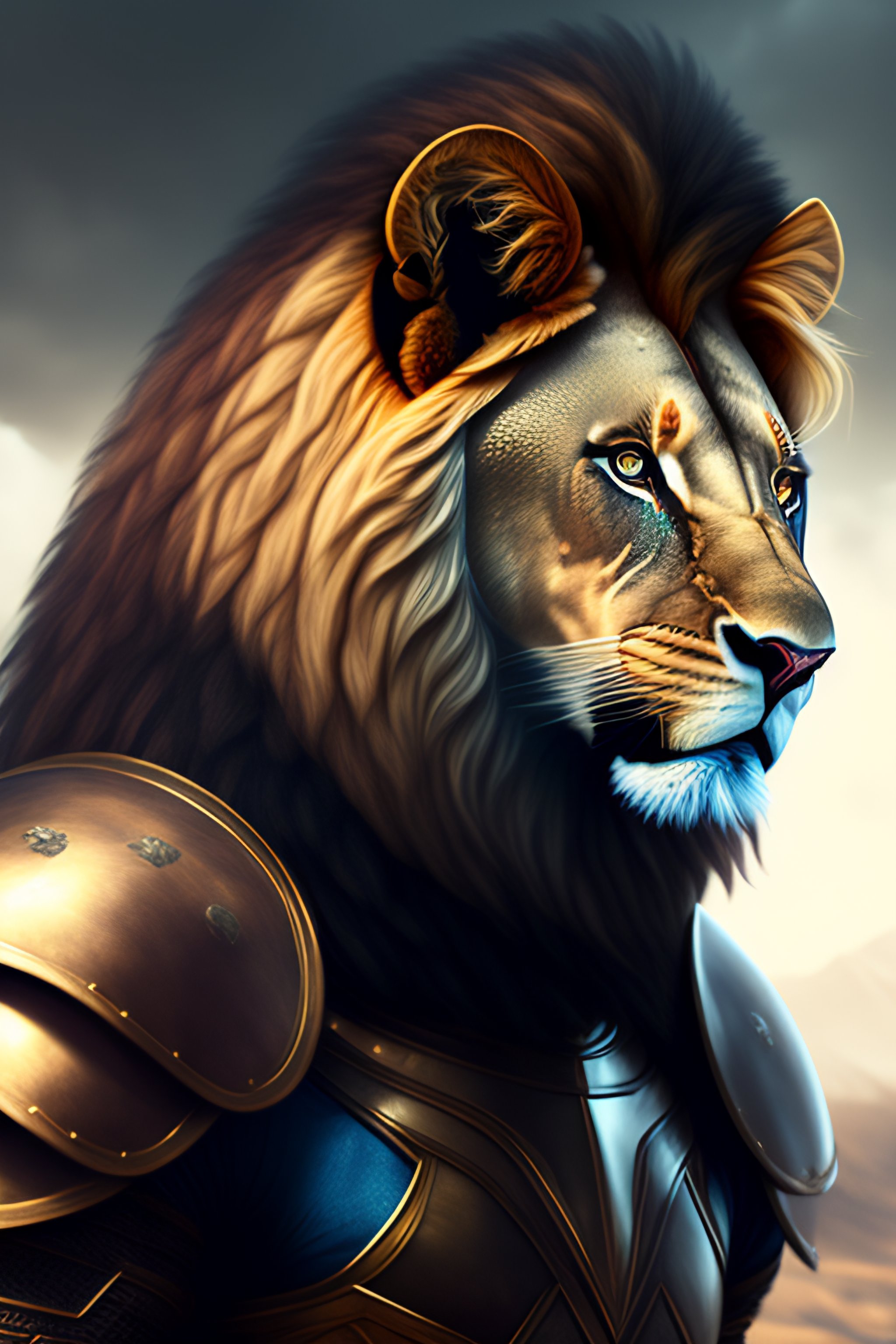 Commission portrait of a male anthro lion wearing heavy combat armour, character, hyperdetailed, hyperrealistic, 4k, deviantart, artstation, professional photography, concept art