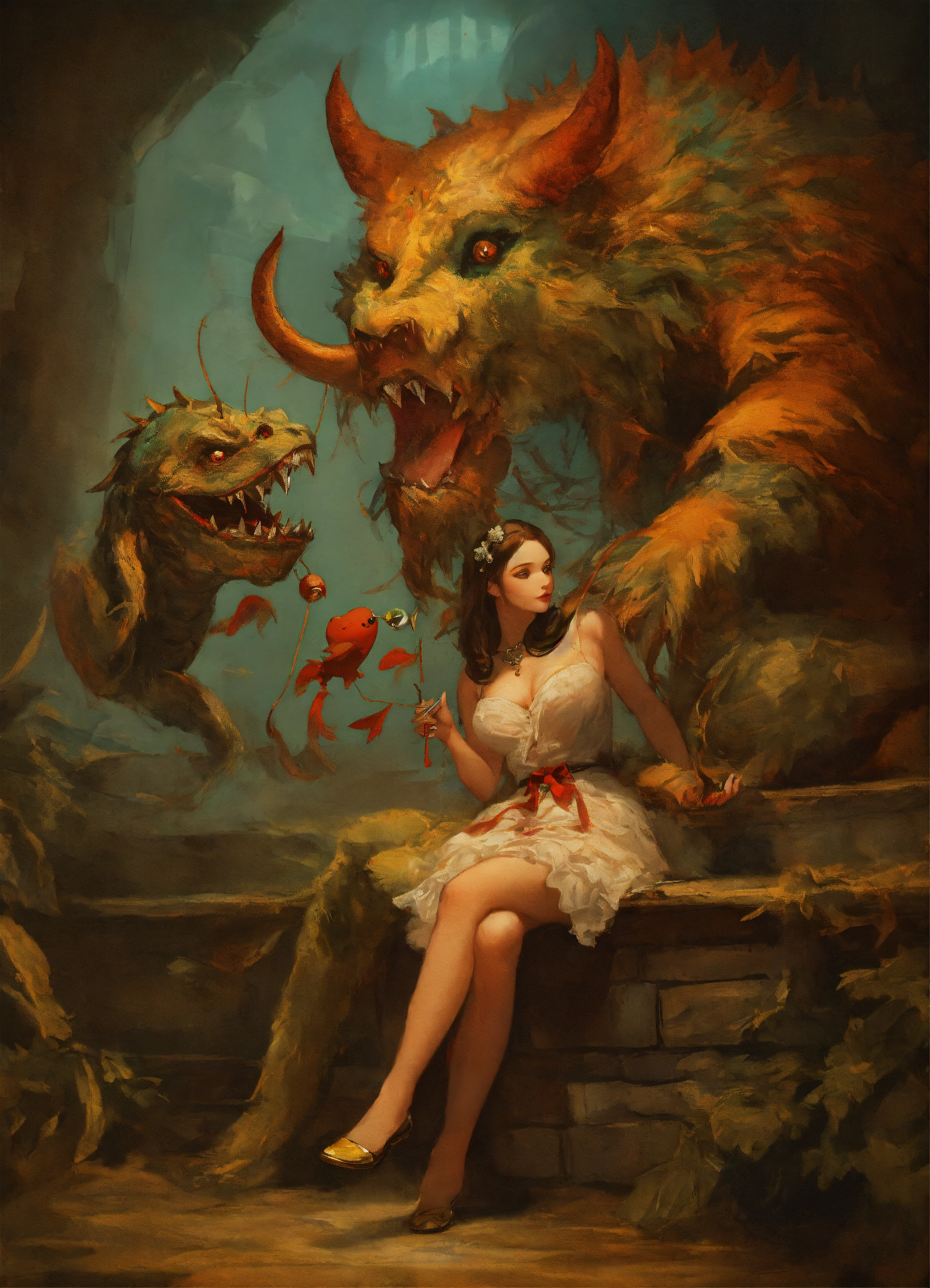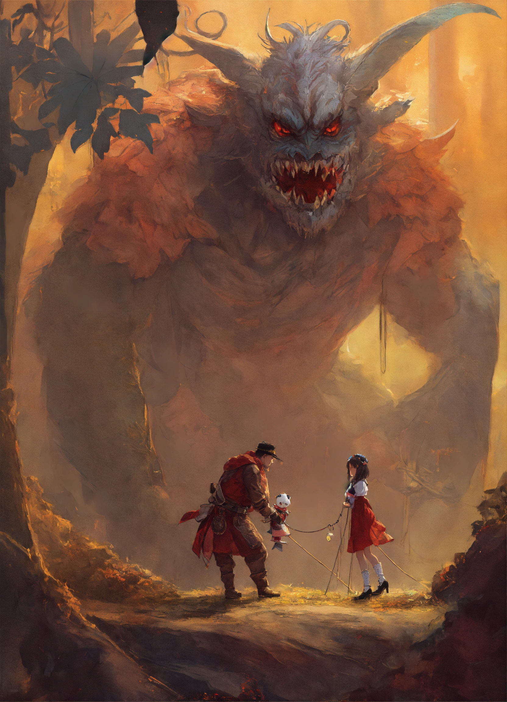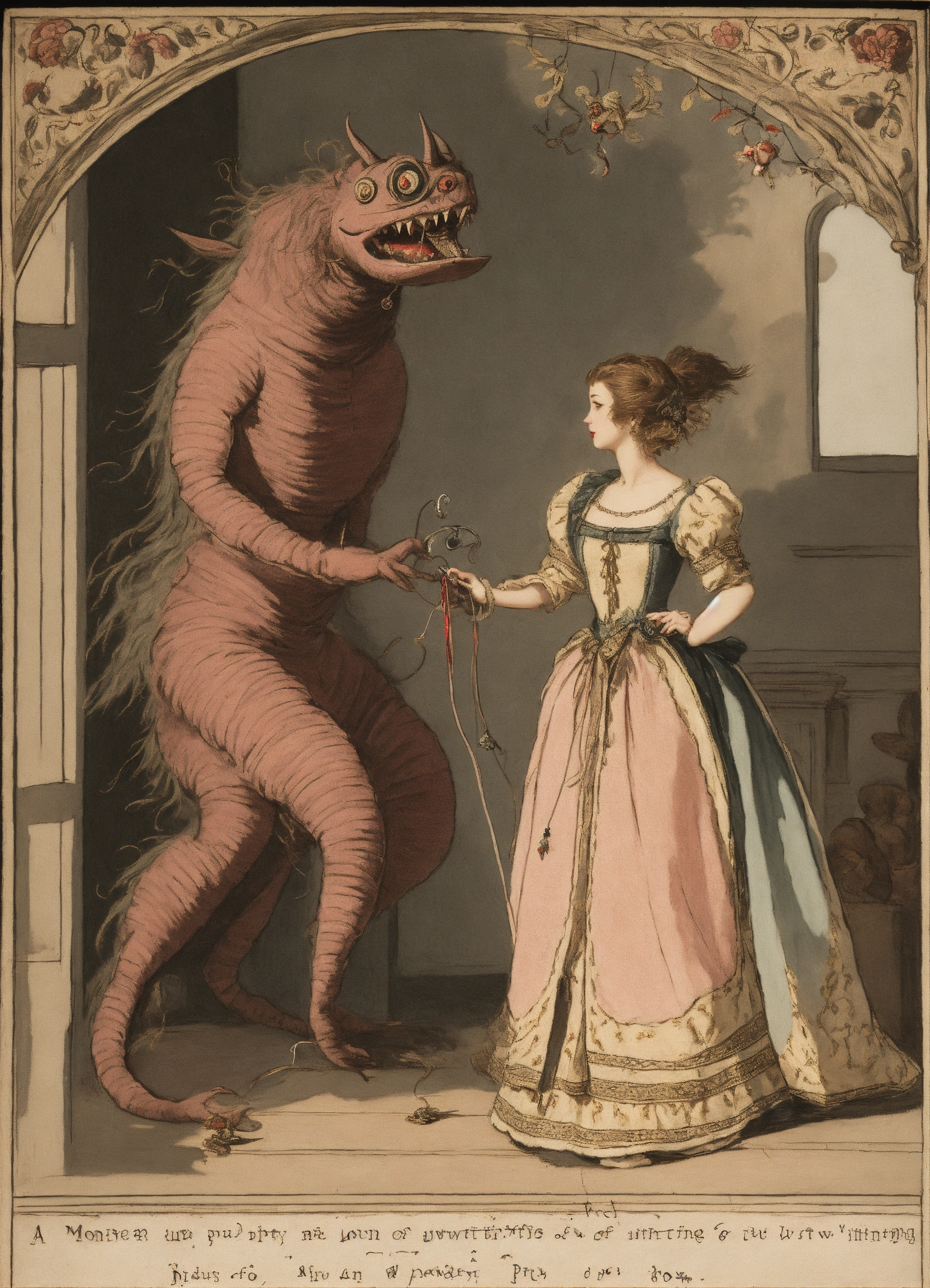 A monster using the puppet of a lovely maiden as a lure to draw in unwitting prey