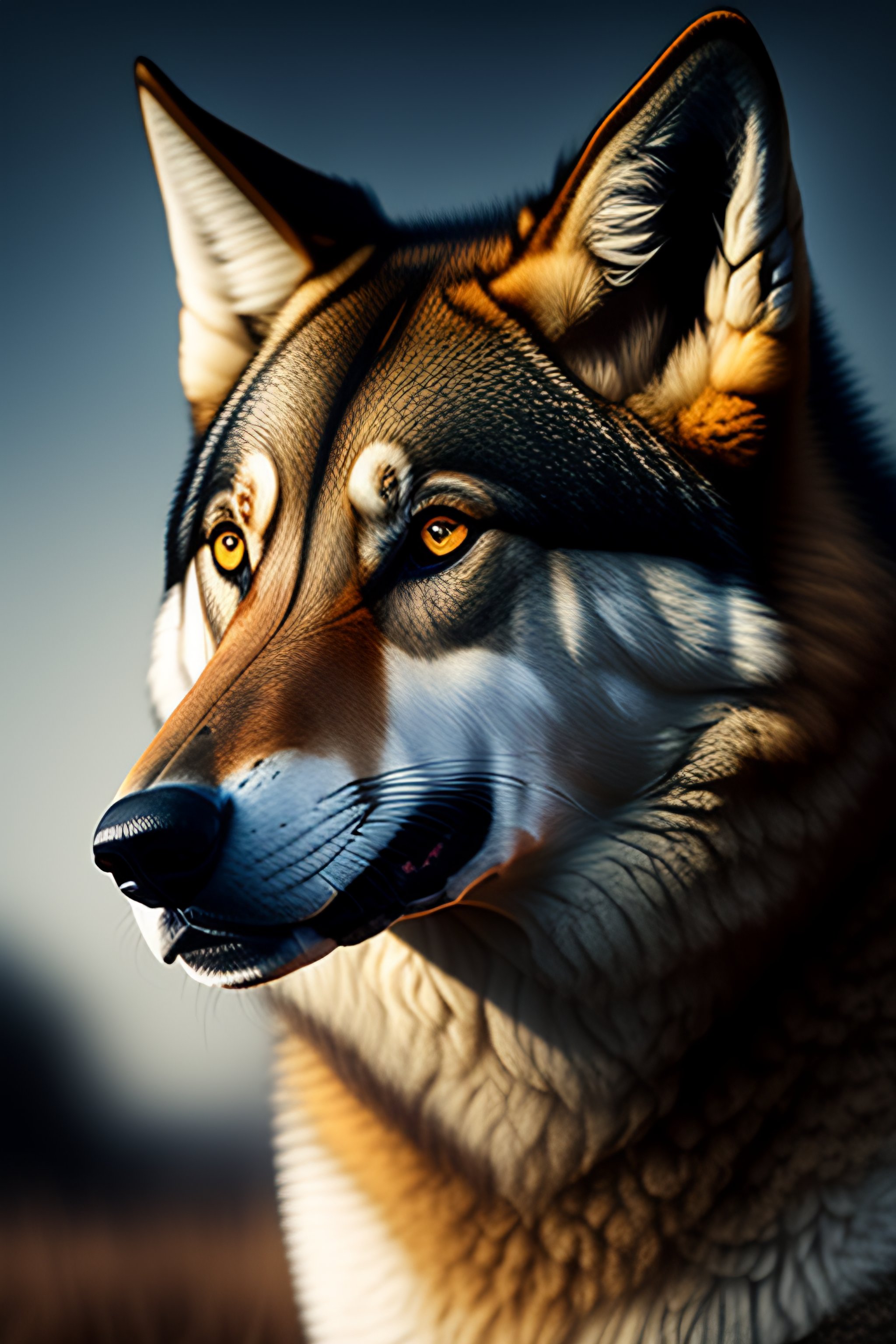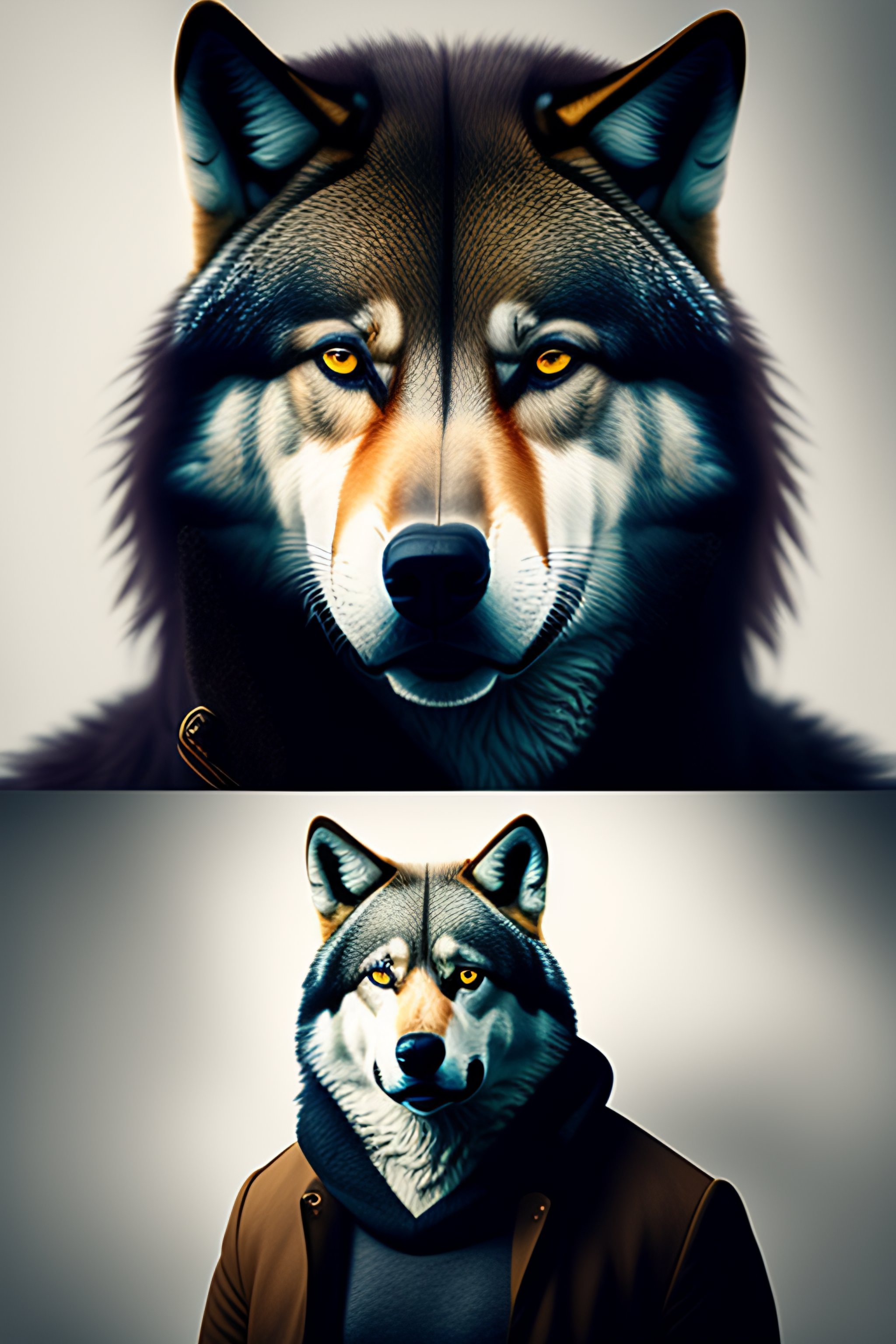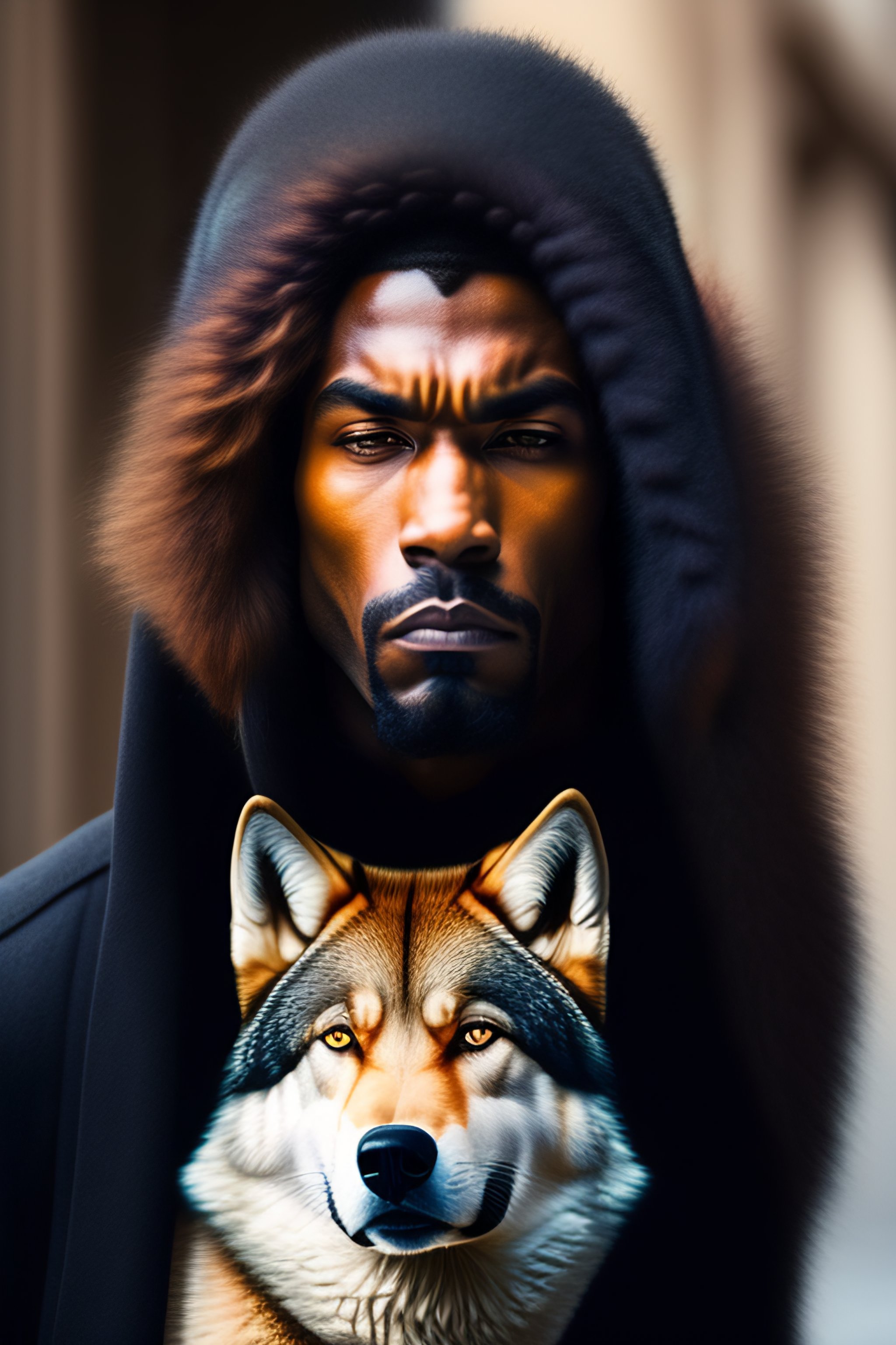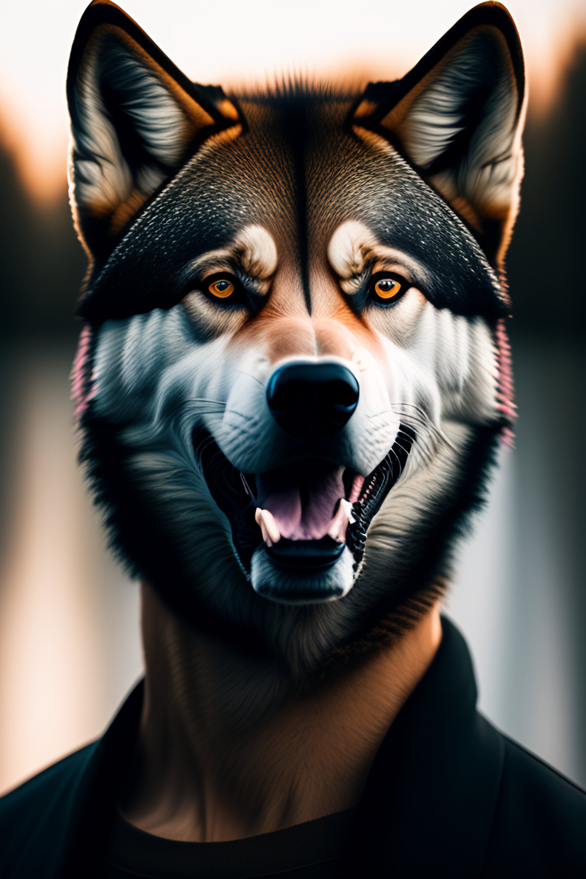 Man with half wolf face angry dangerous