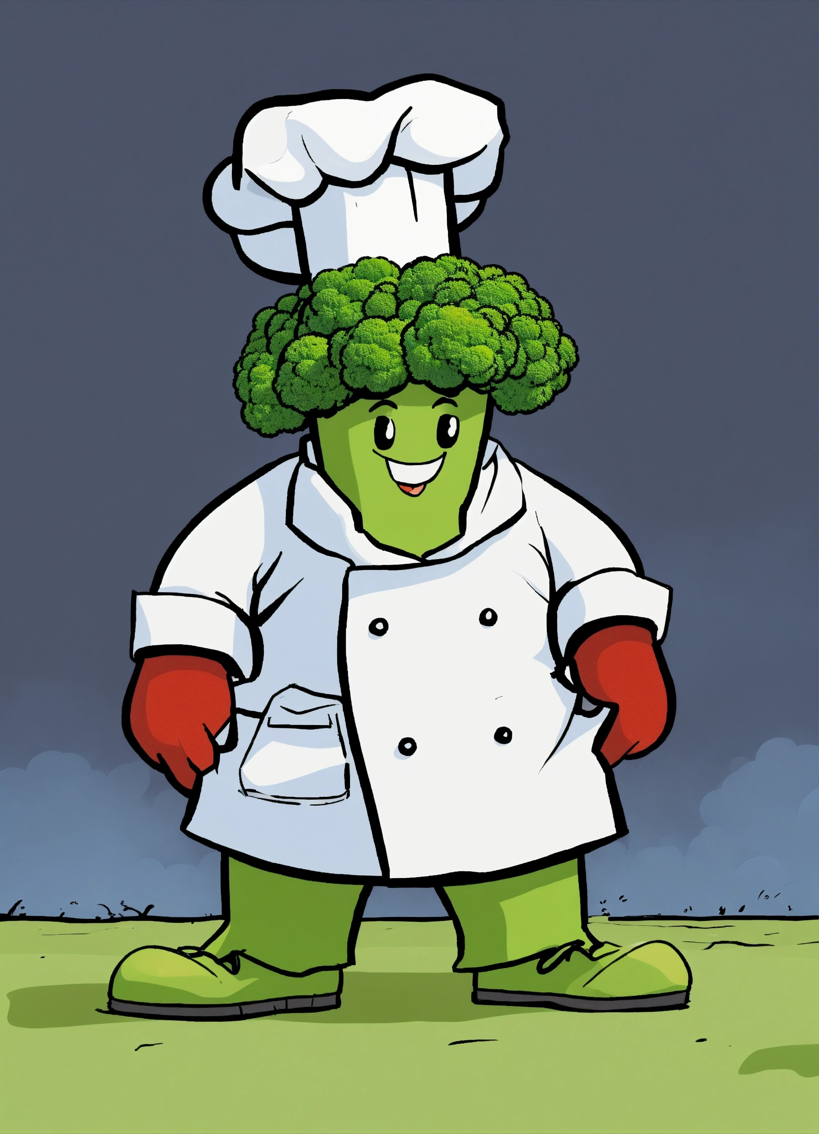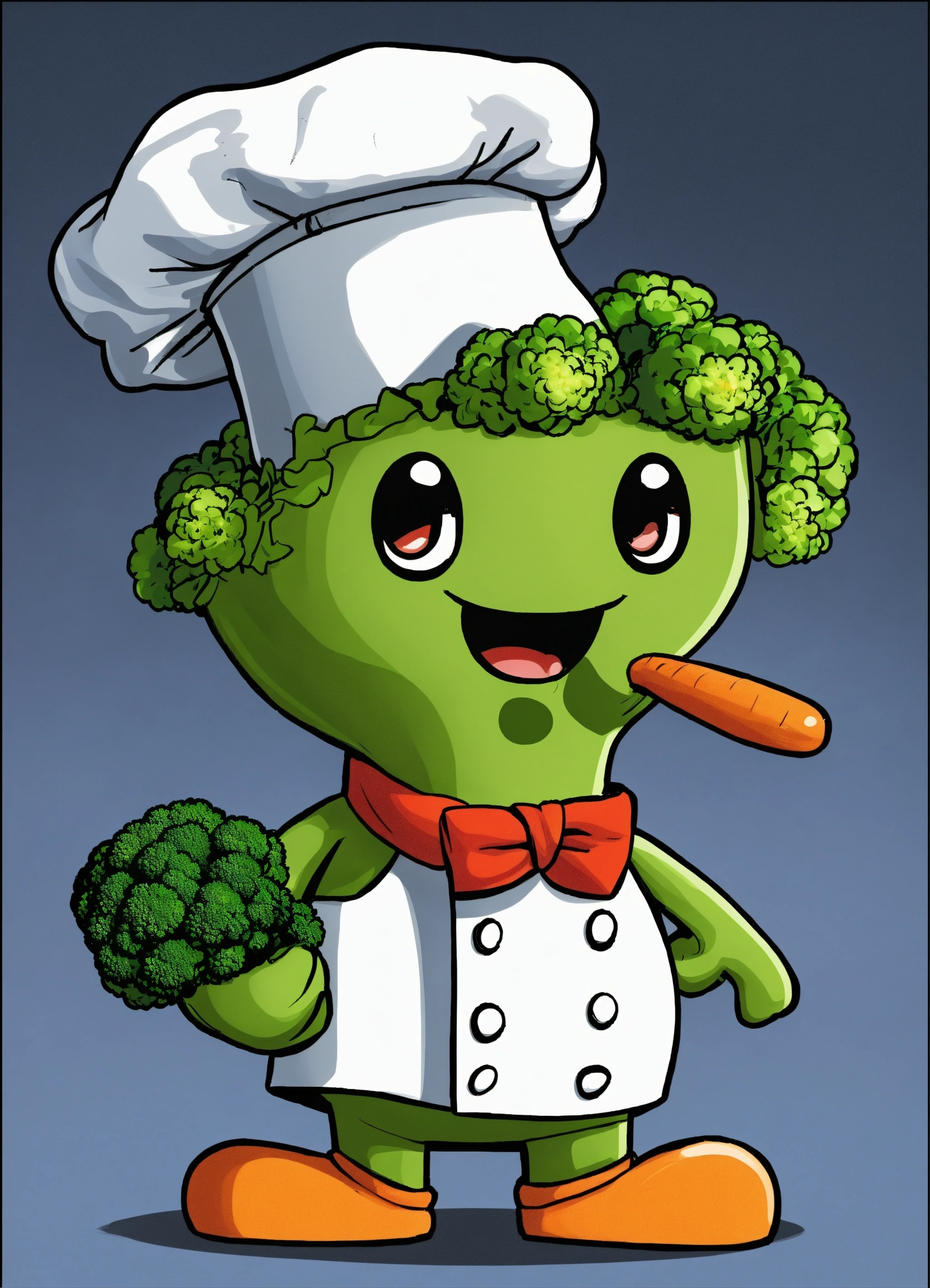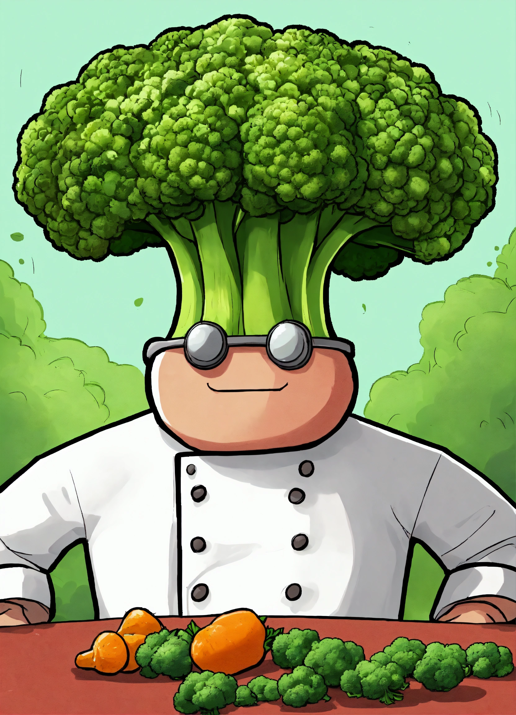 Please help me create a comic book character for my youtube animation videos, inspired by somethingelseyt. the character i have in mind is a minimalistic animated vegetable, specifically a broccoli wearing a chef hat.