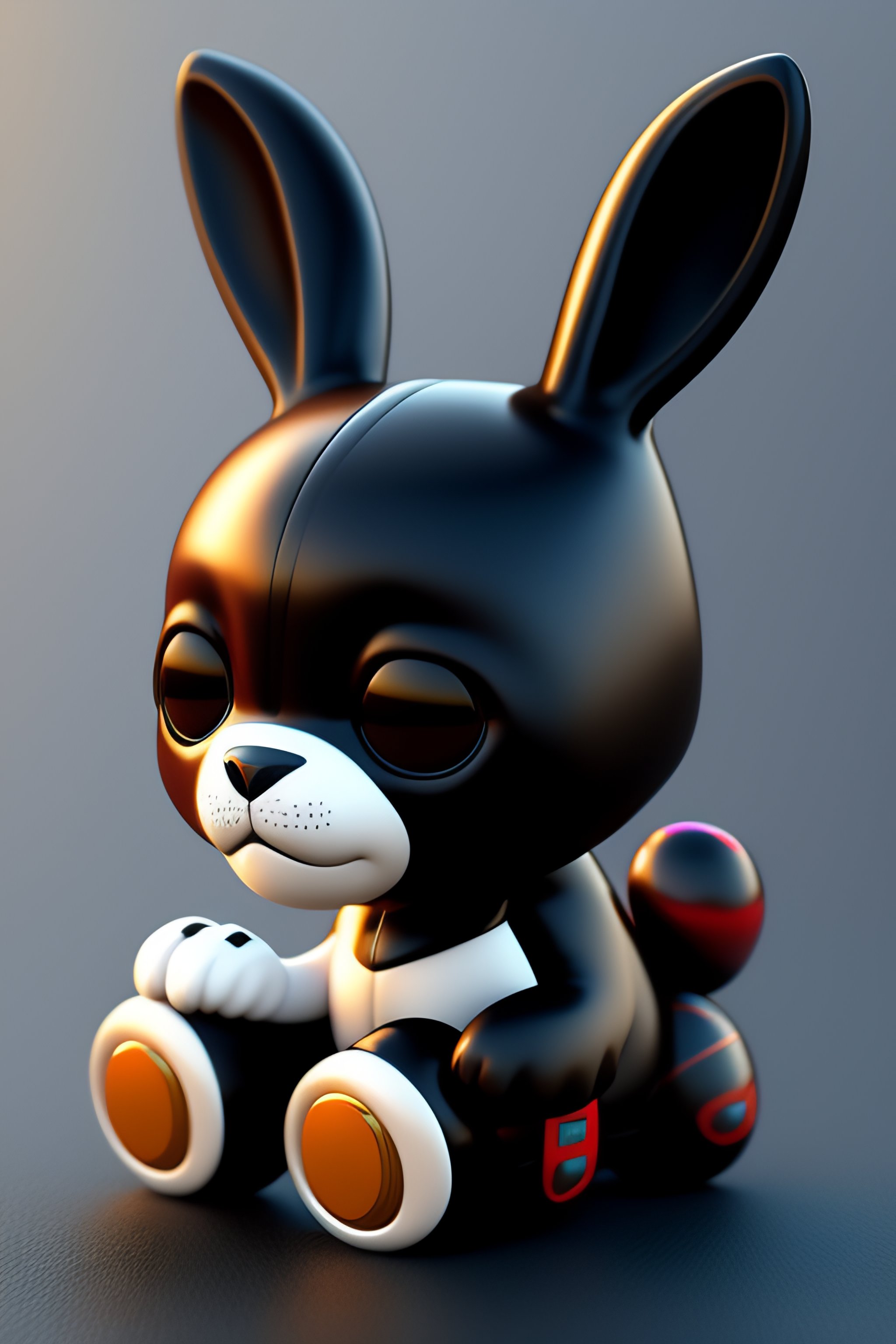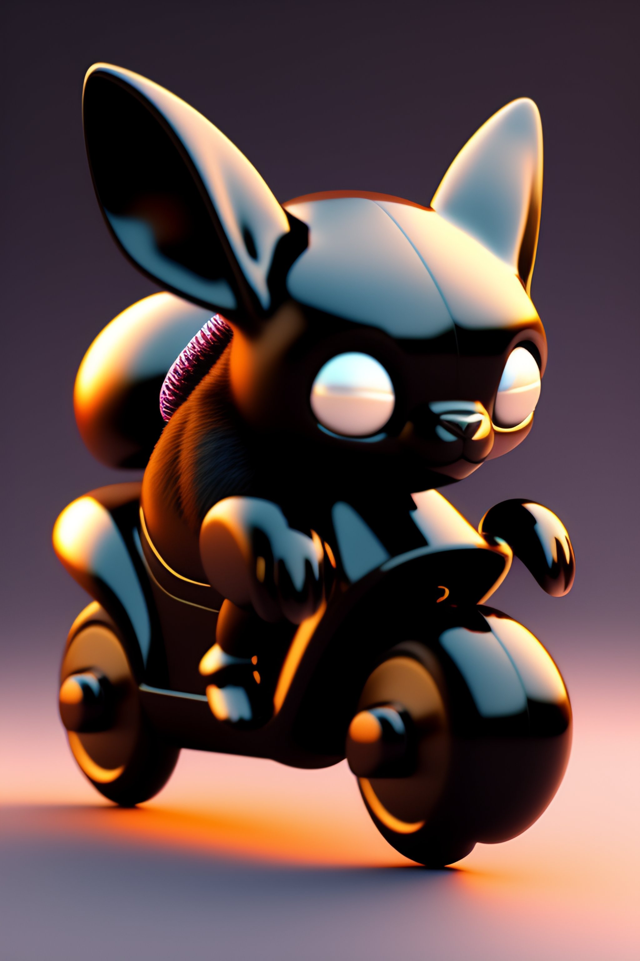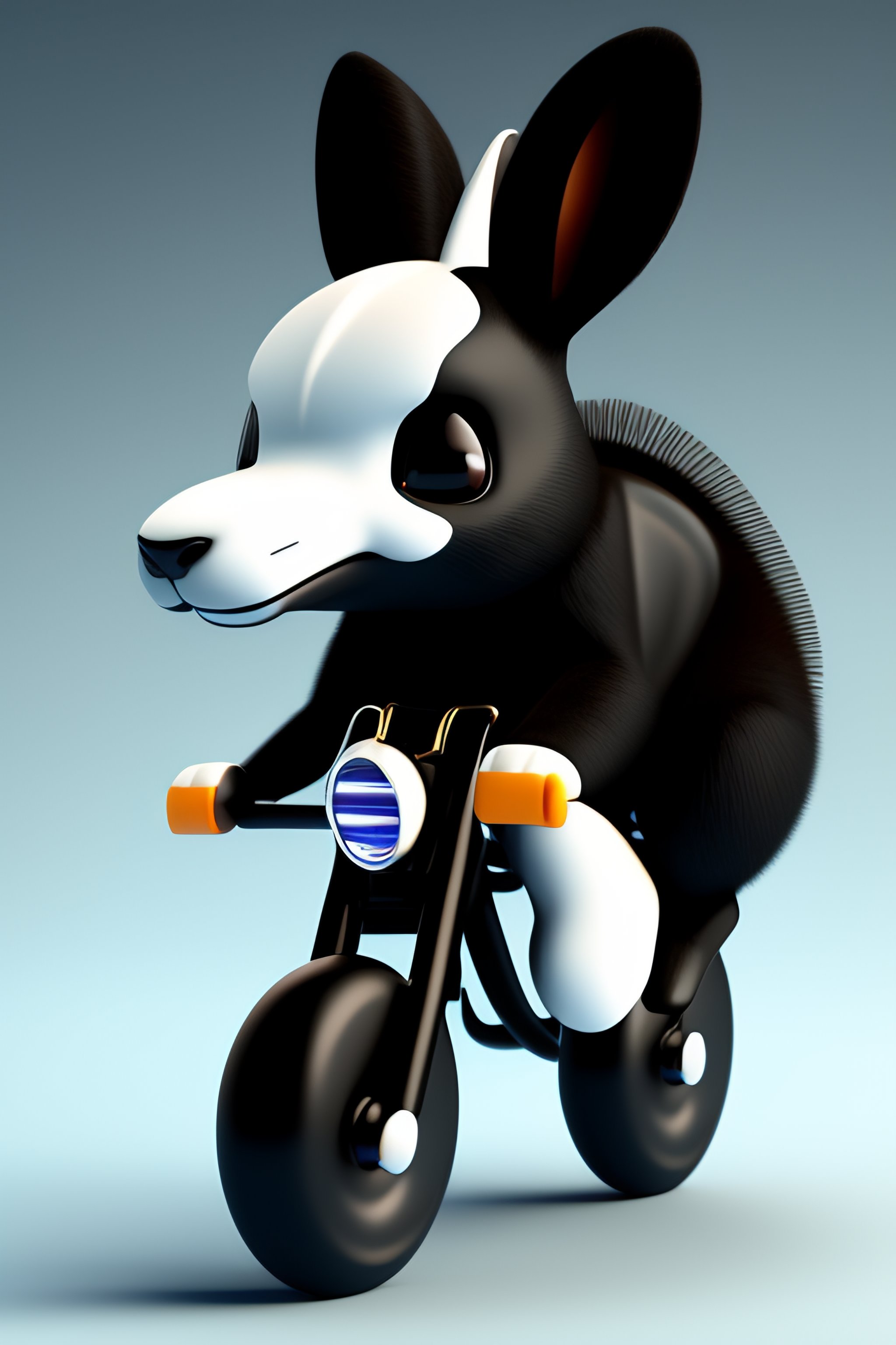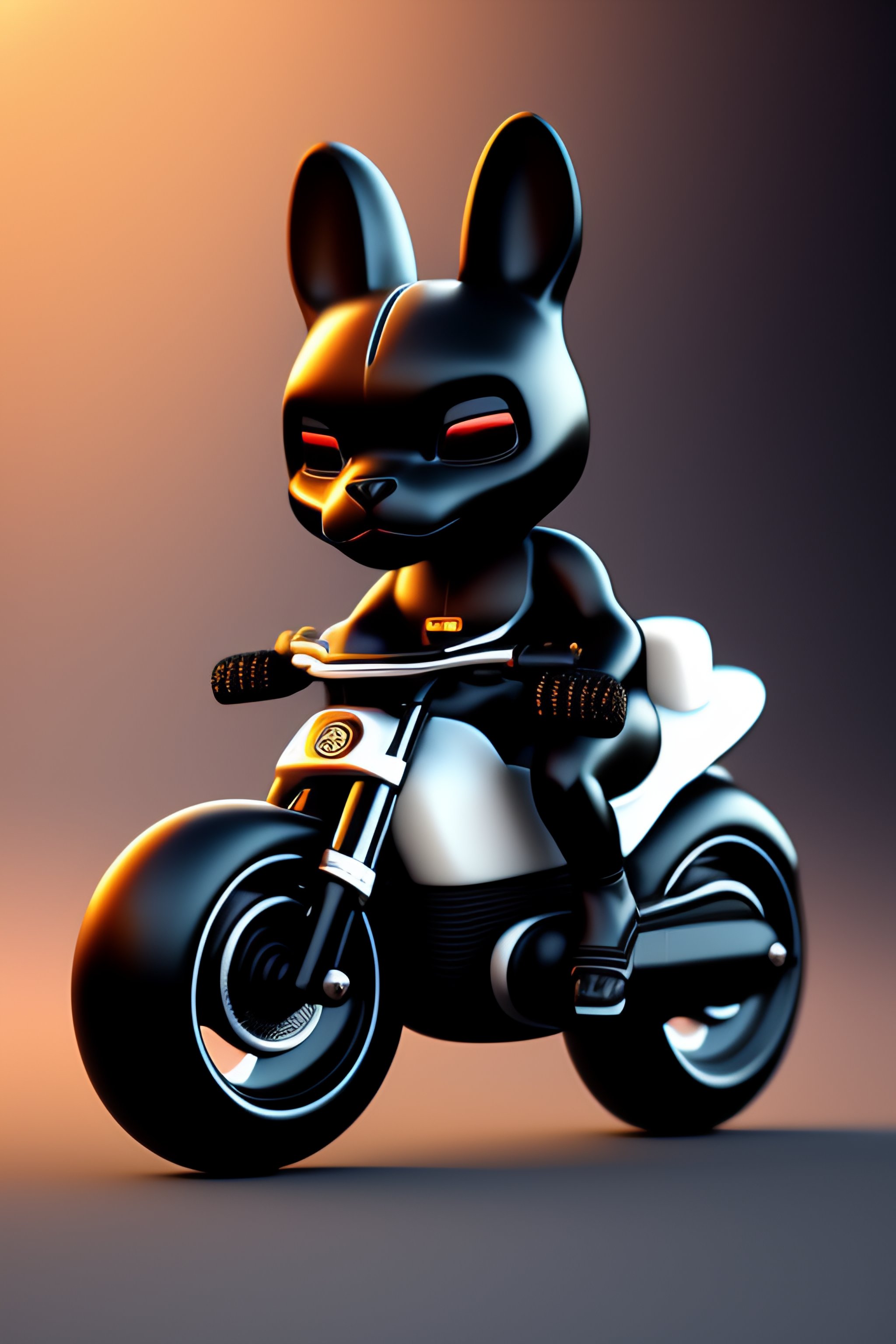 Black humanoid rabbit with large white eyes riding a suzuki 3d render jamie hewitt gorillaz style