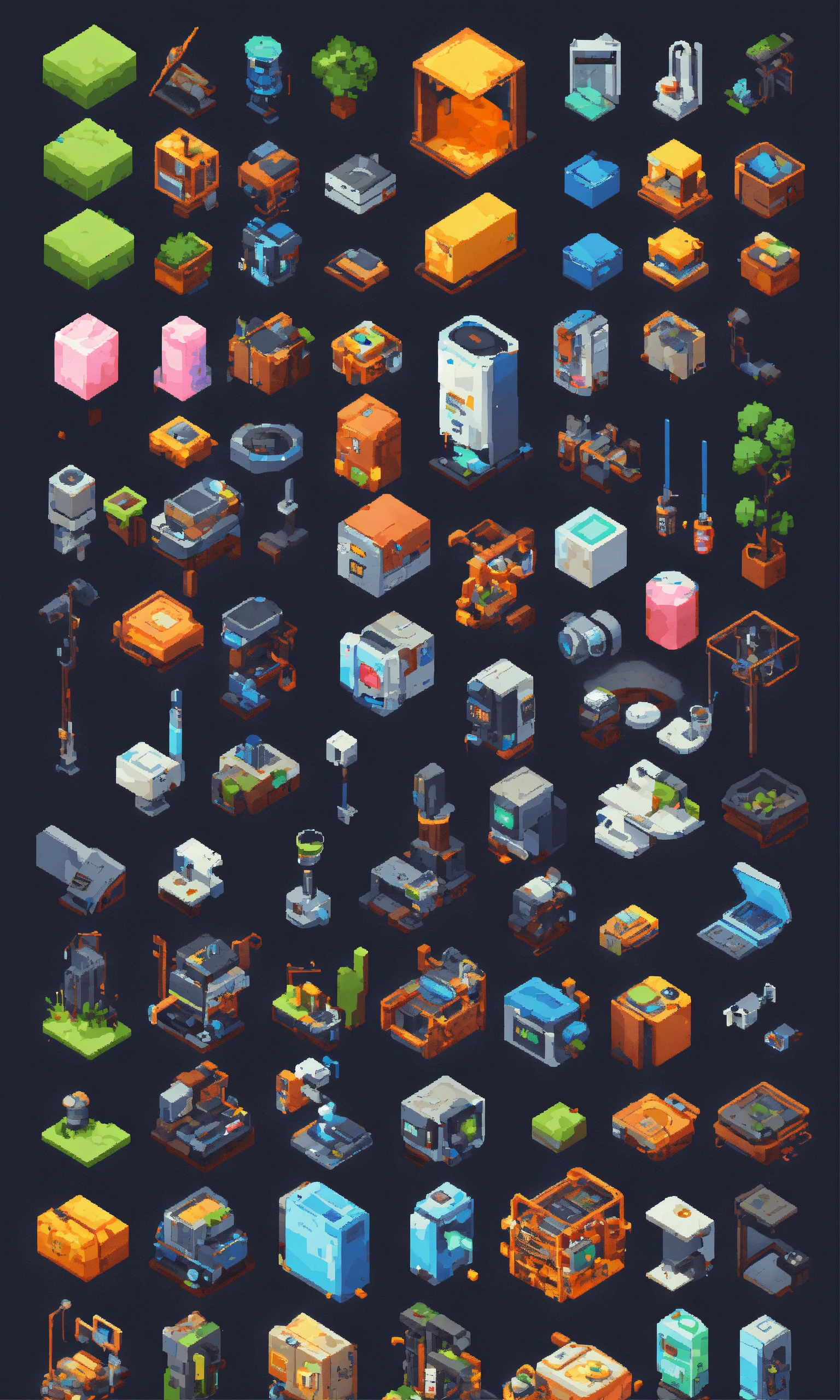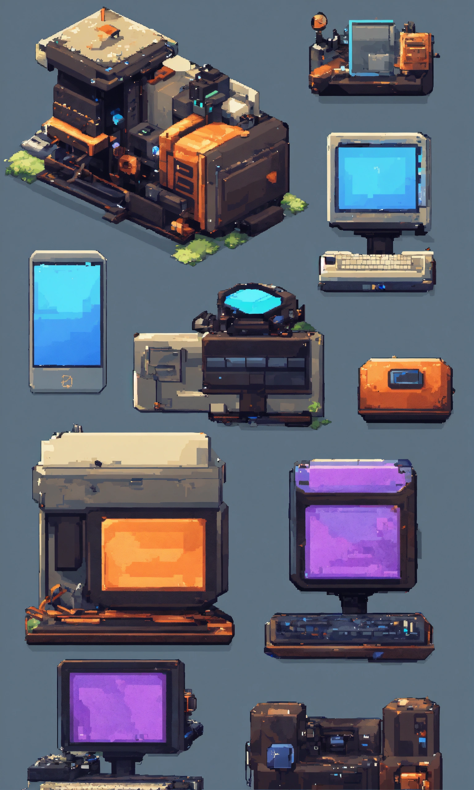 Concept art for various tech part scrap icon. pixel art