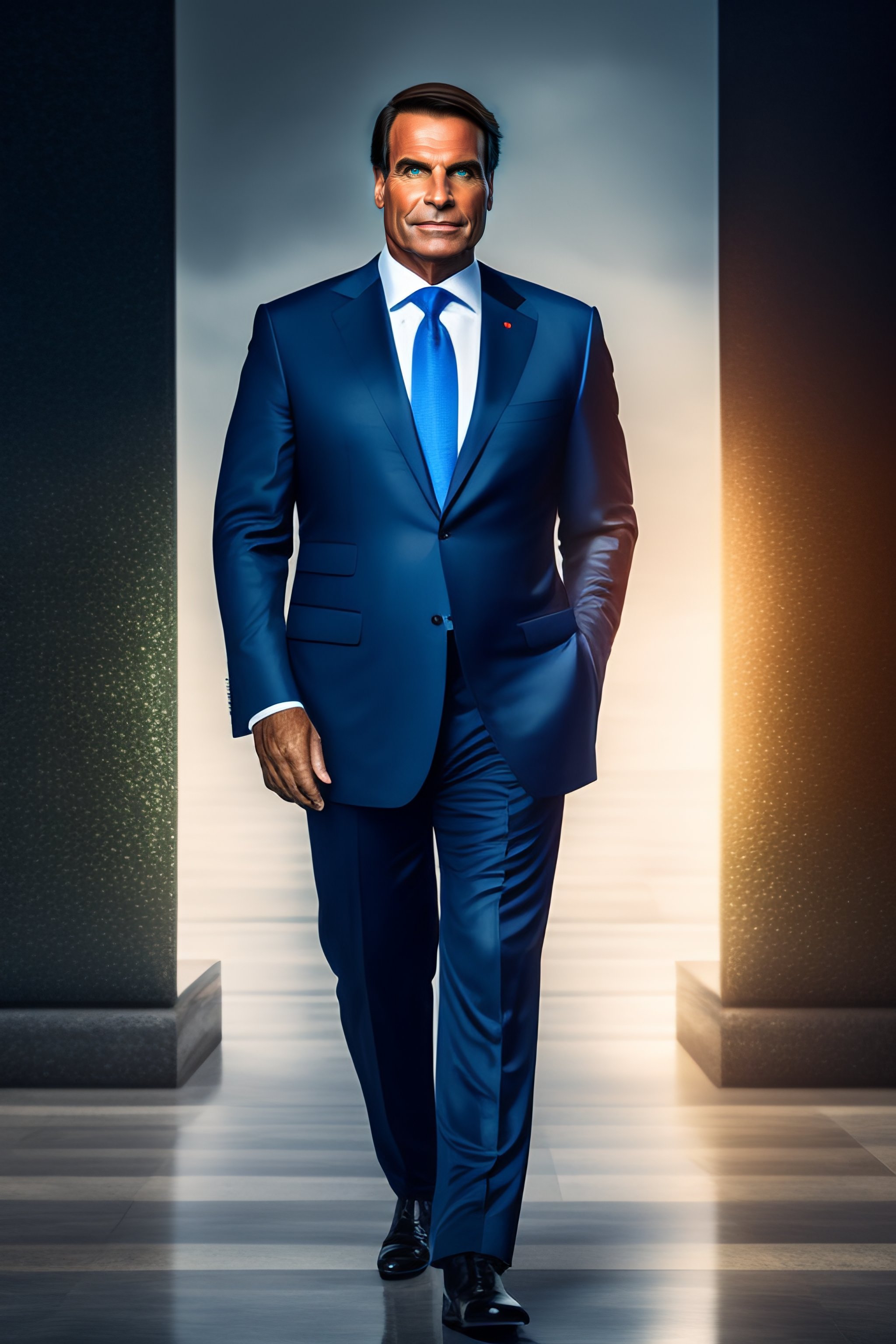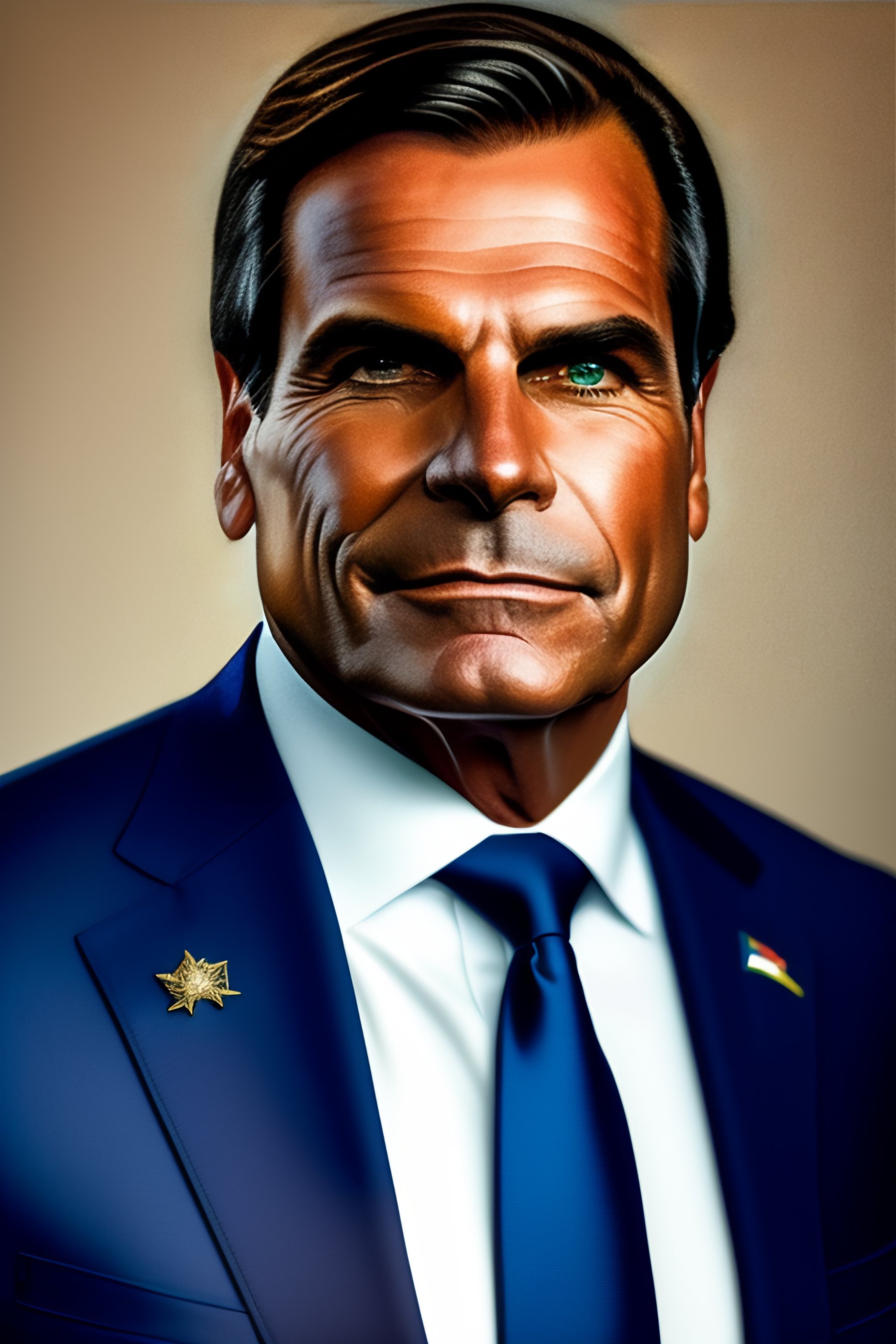 A full-body portrait of brazilian president jair bolsonaro wearing a military olive suit, empatic face, blue eyes, uncanny, exhibition, real, highly detailed, sharp focus, bright cold lighting, somber illustration, expressive face, intricate, concept art, masterpiece, digital painting, 80mm, 8k