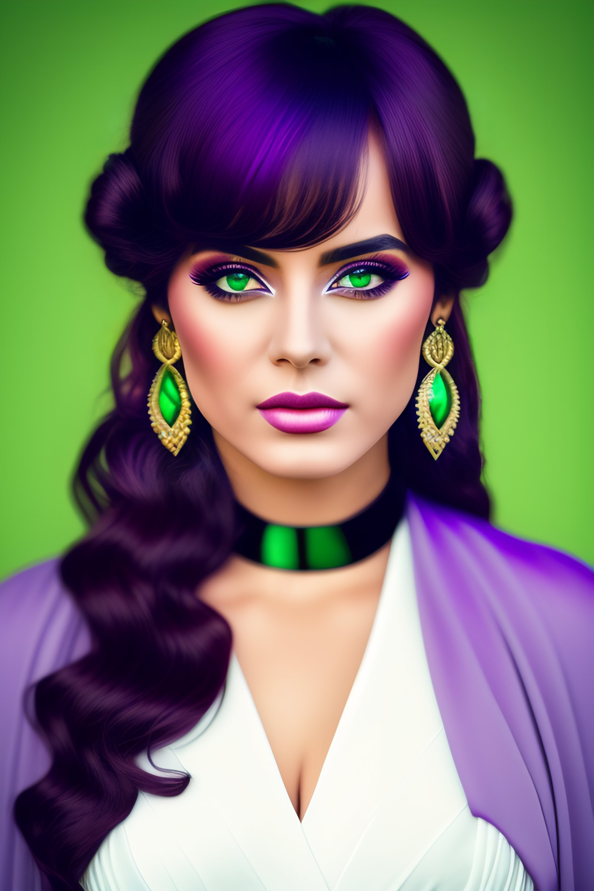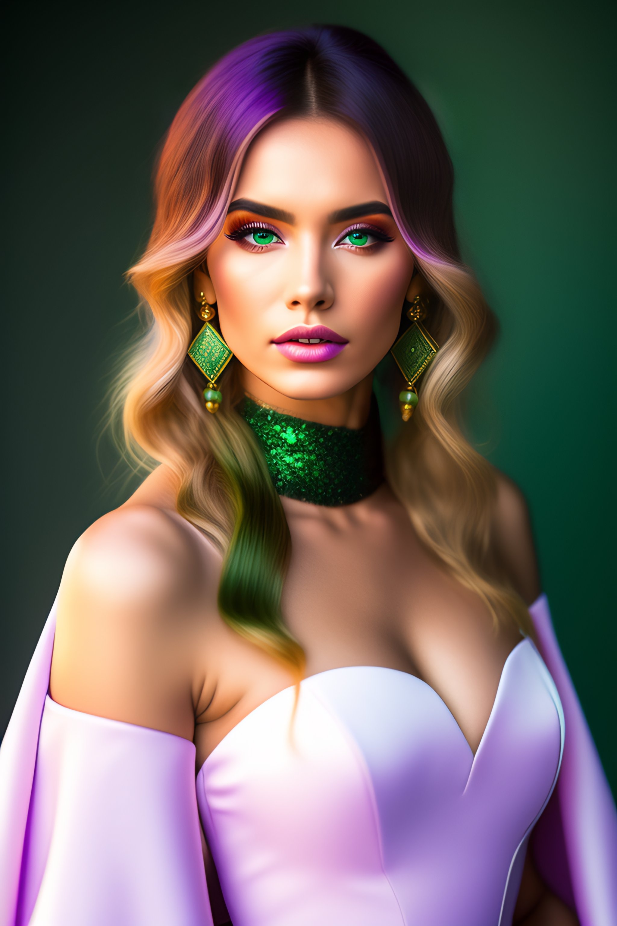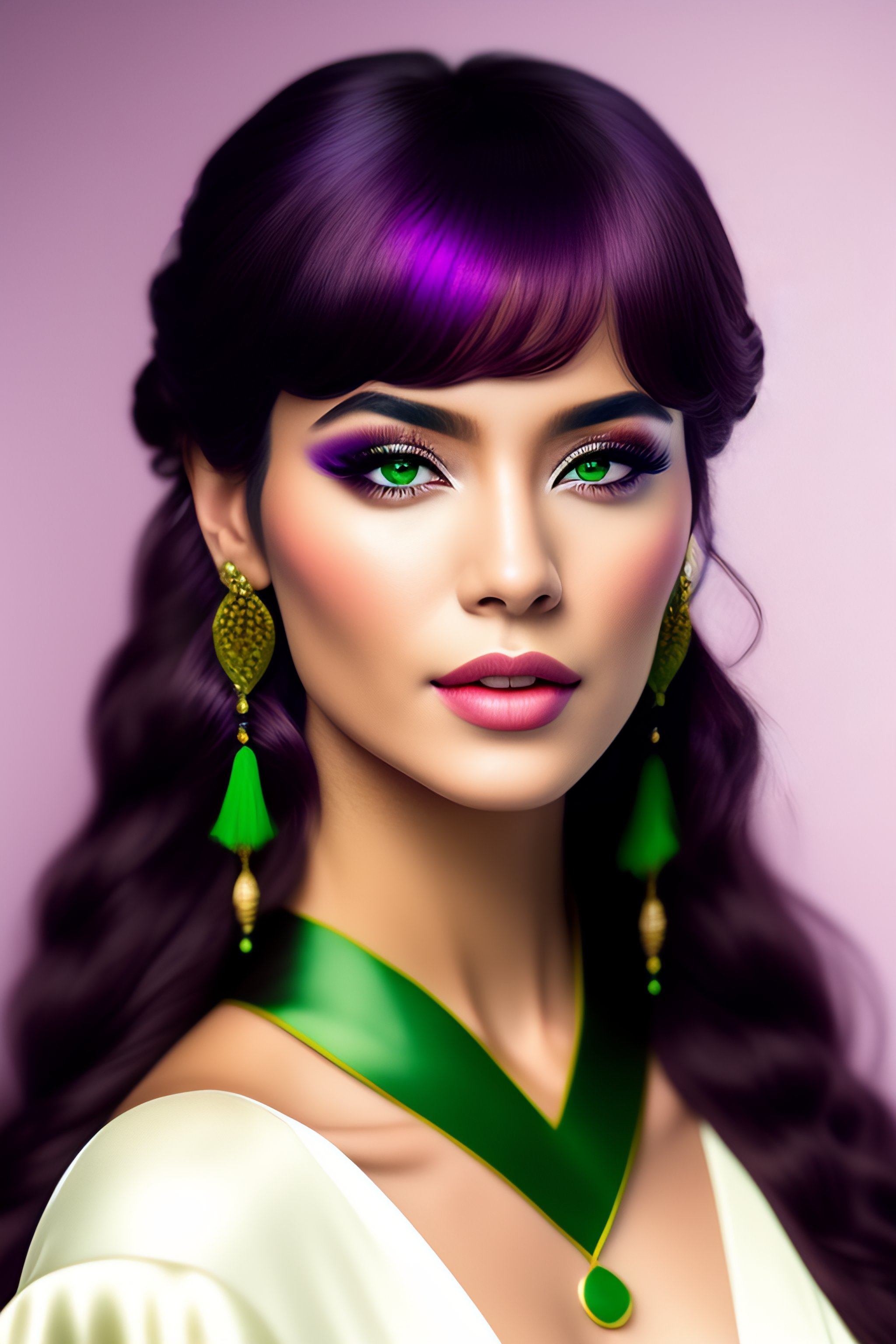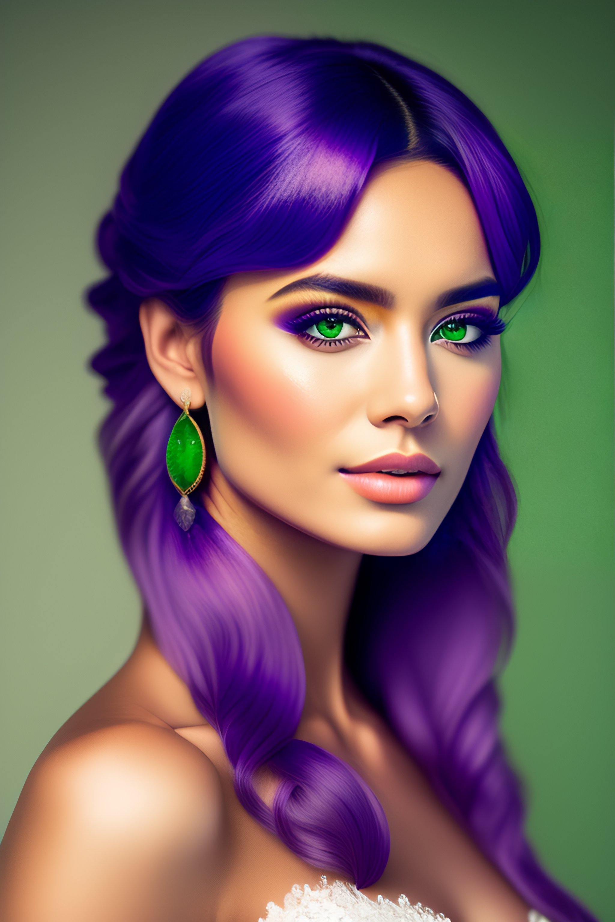 1girl ahoge amco bangs blush bridal_gauntlets capelet closed_mouth collei_(genshin_impact) crossed_bangs detached_sleeves earrings genshin_impact green_capelet green_hair hair_between_eyes hair_ornament highres jewelry looking_at_viewer medium_hair playing_with_own_hair simple_background single_earring solo upper_body violet_eyes white_background