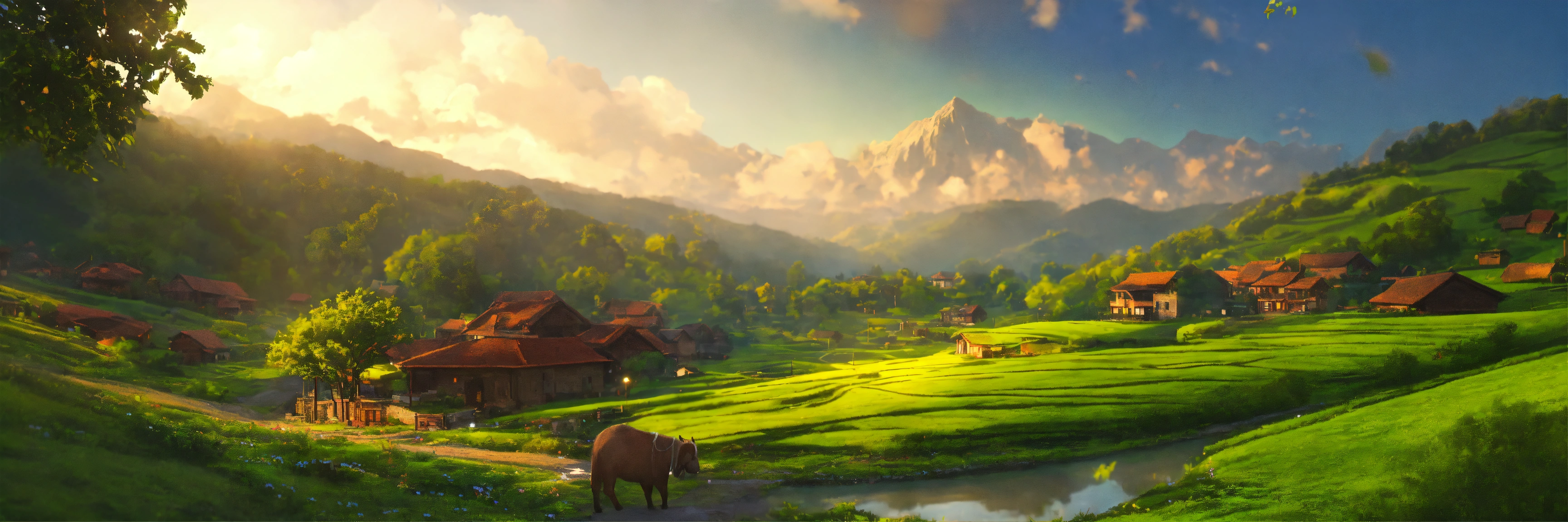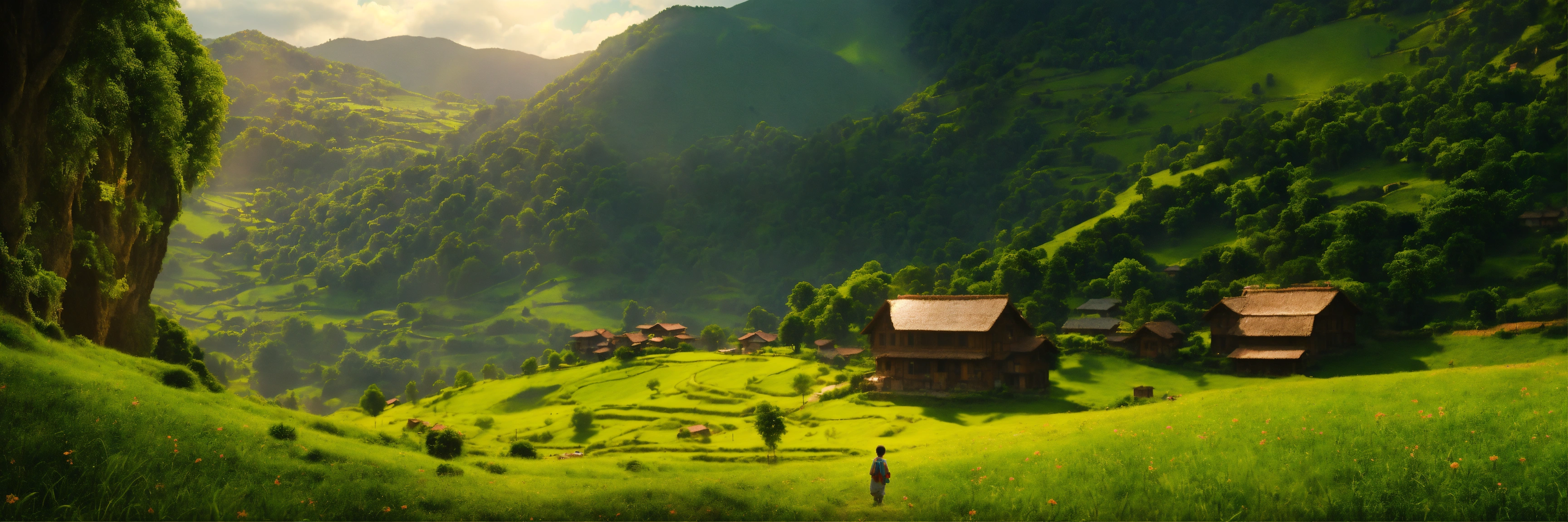 Once upon a time in a small village nestled in the heart of a lush green valley lift, a young boy named ananda ananda was known for his gentle nature and kind heart, detailed, 8k, focused, extreme details, super resolution, cinematic, masterpiece