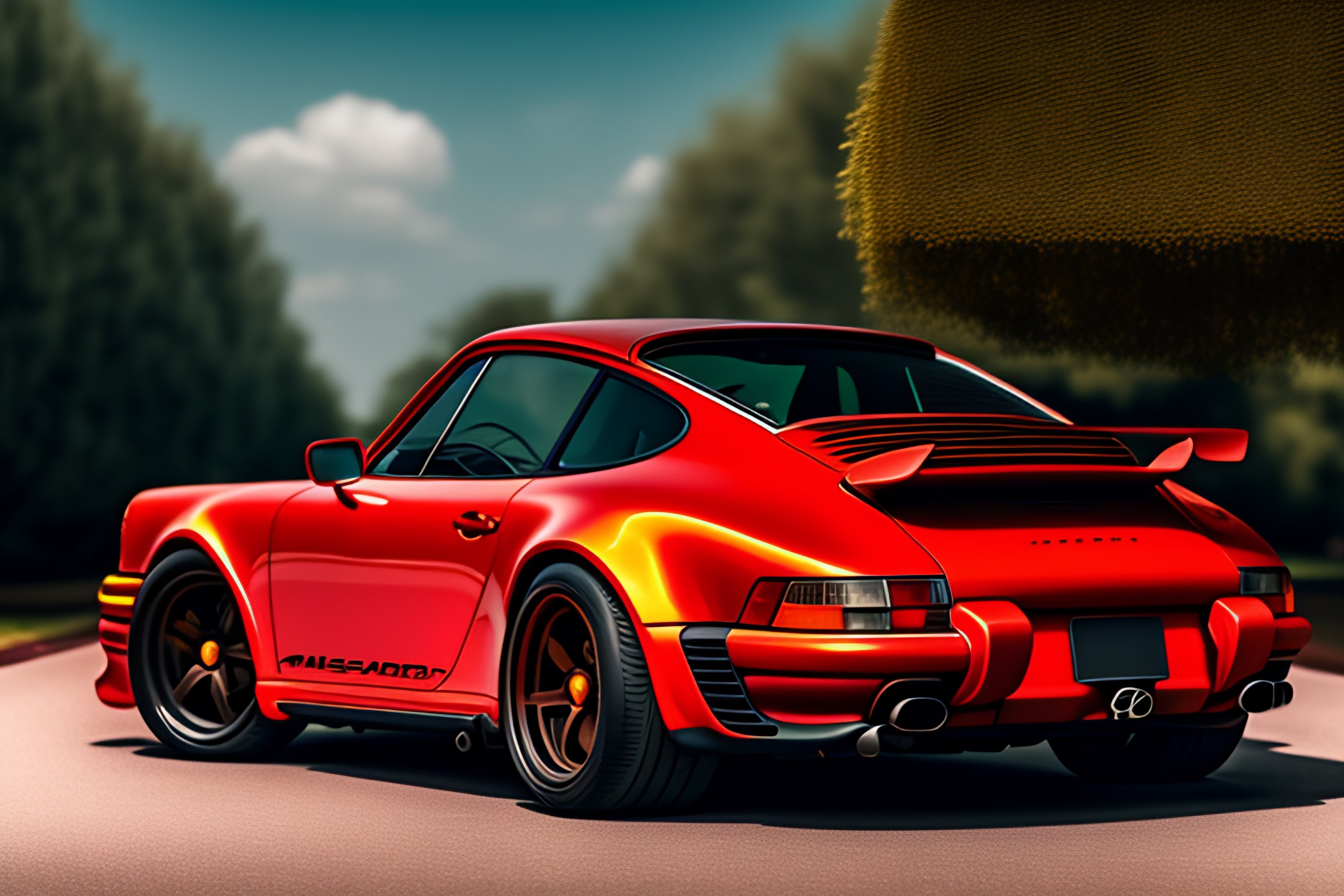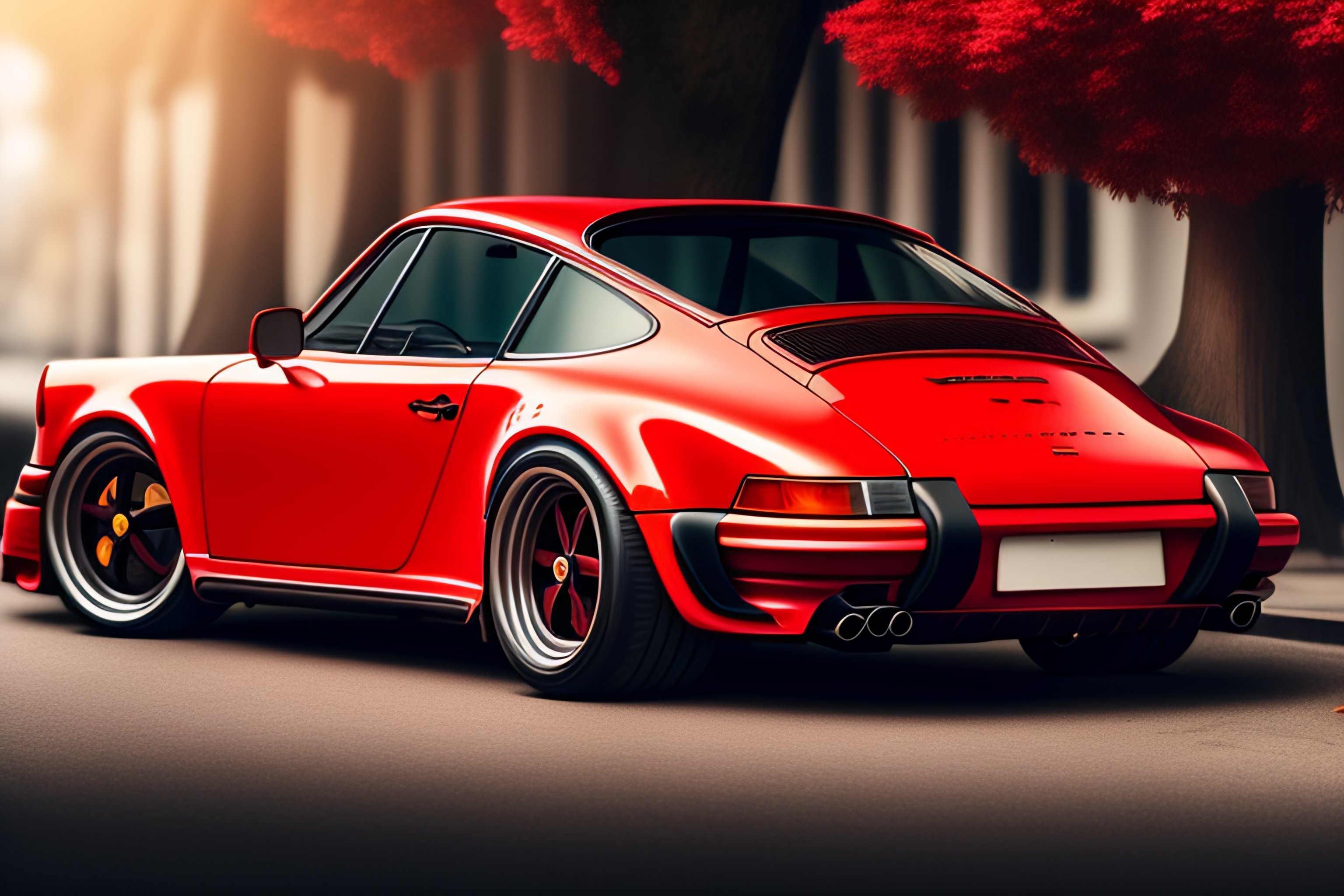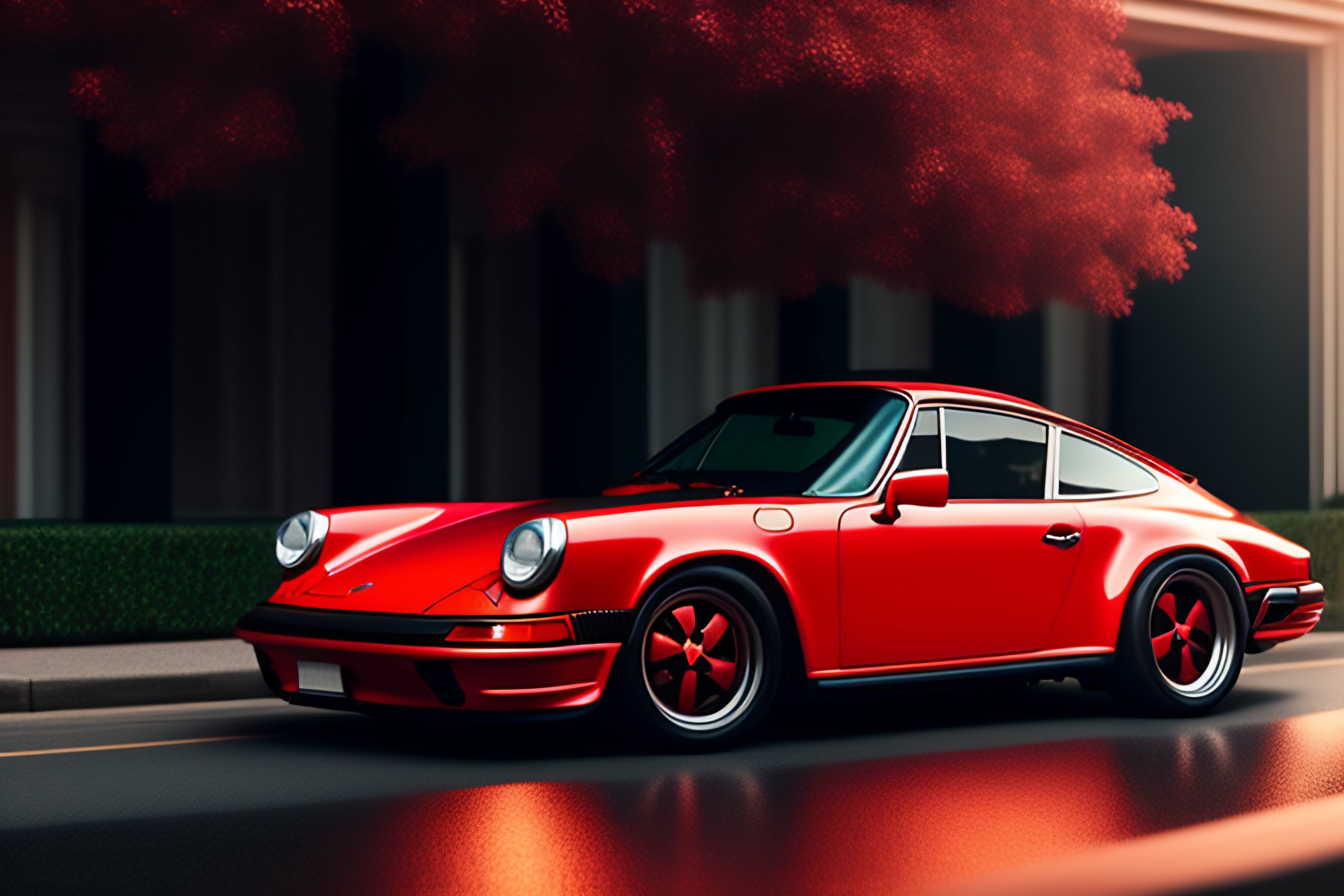 A red porsche 911, under a tree, on a street, hyper realistic, fine line art, ambient lighting, 8k, high resolution