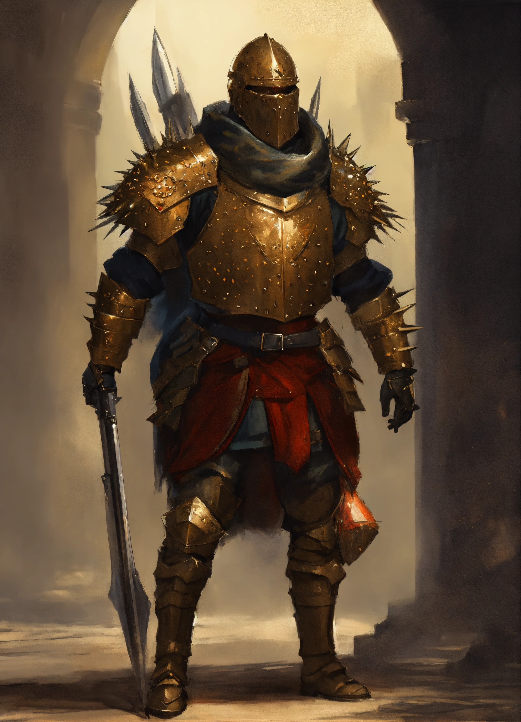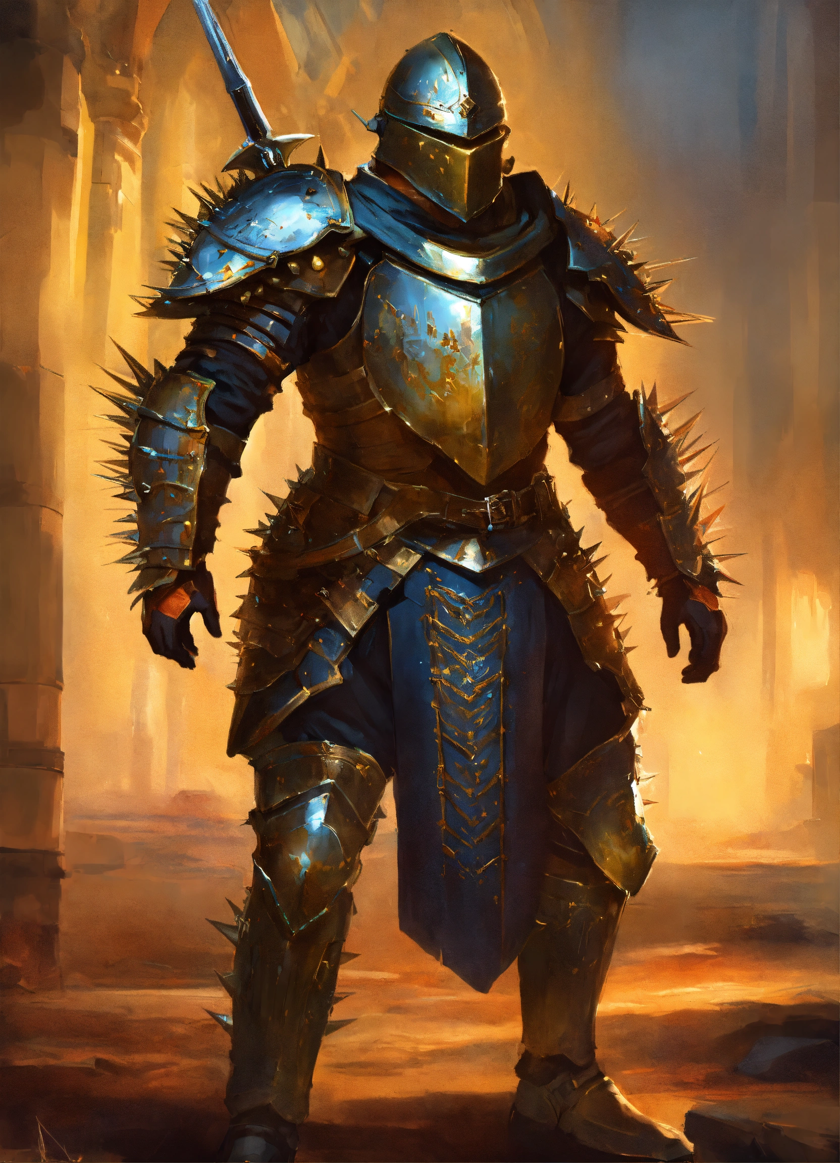 A human soldier with spiked loriga segmentada armour