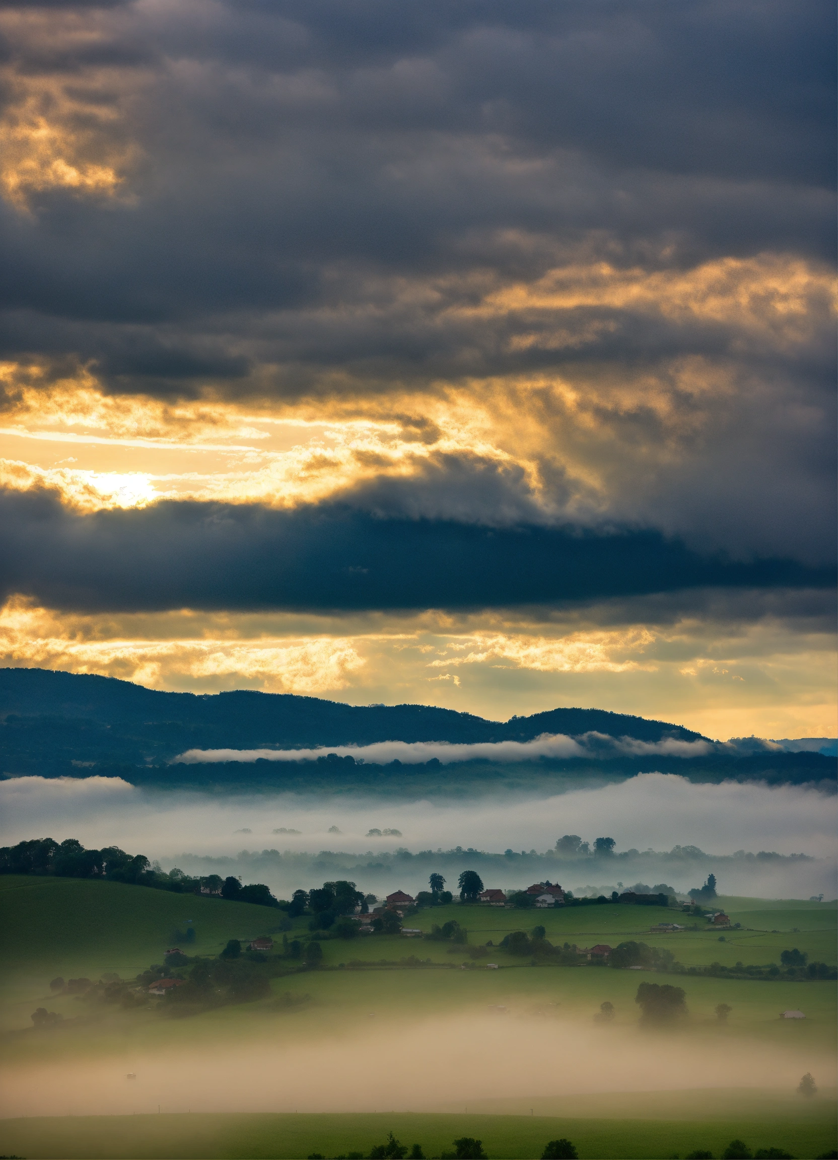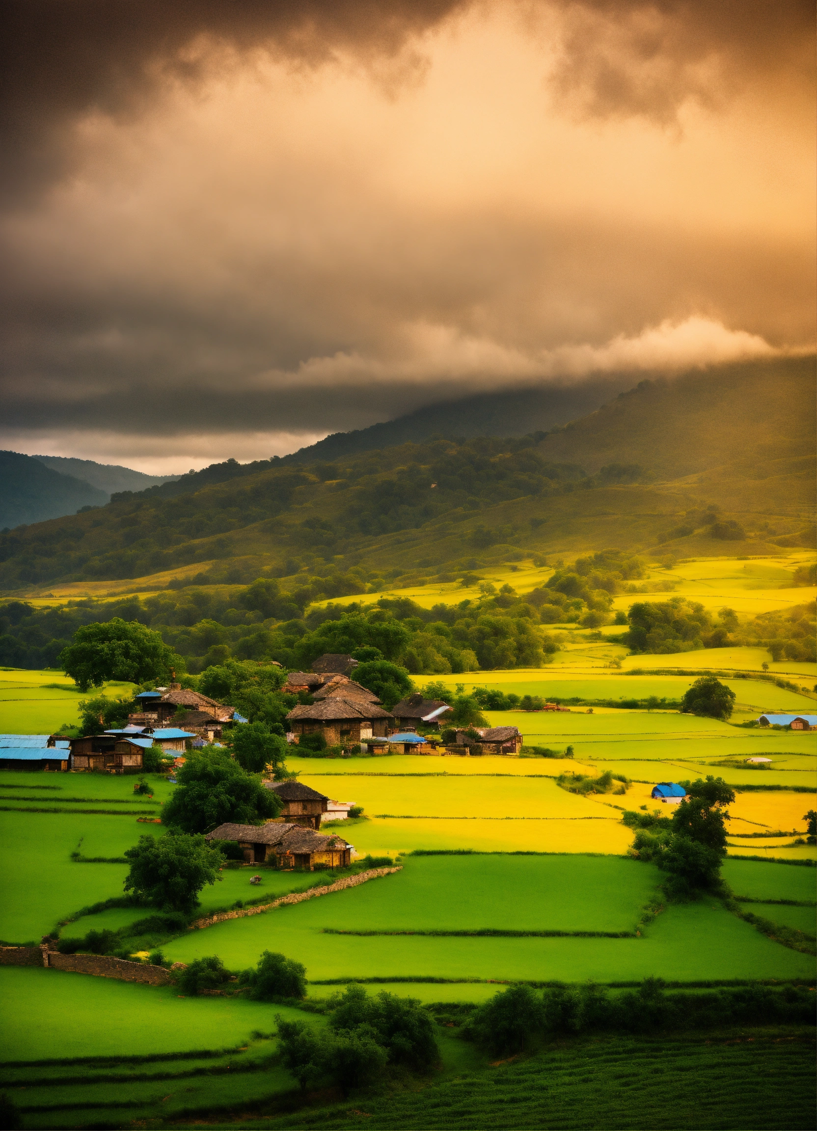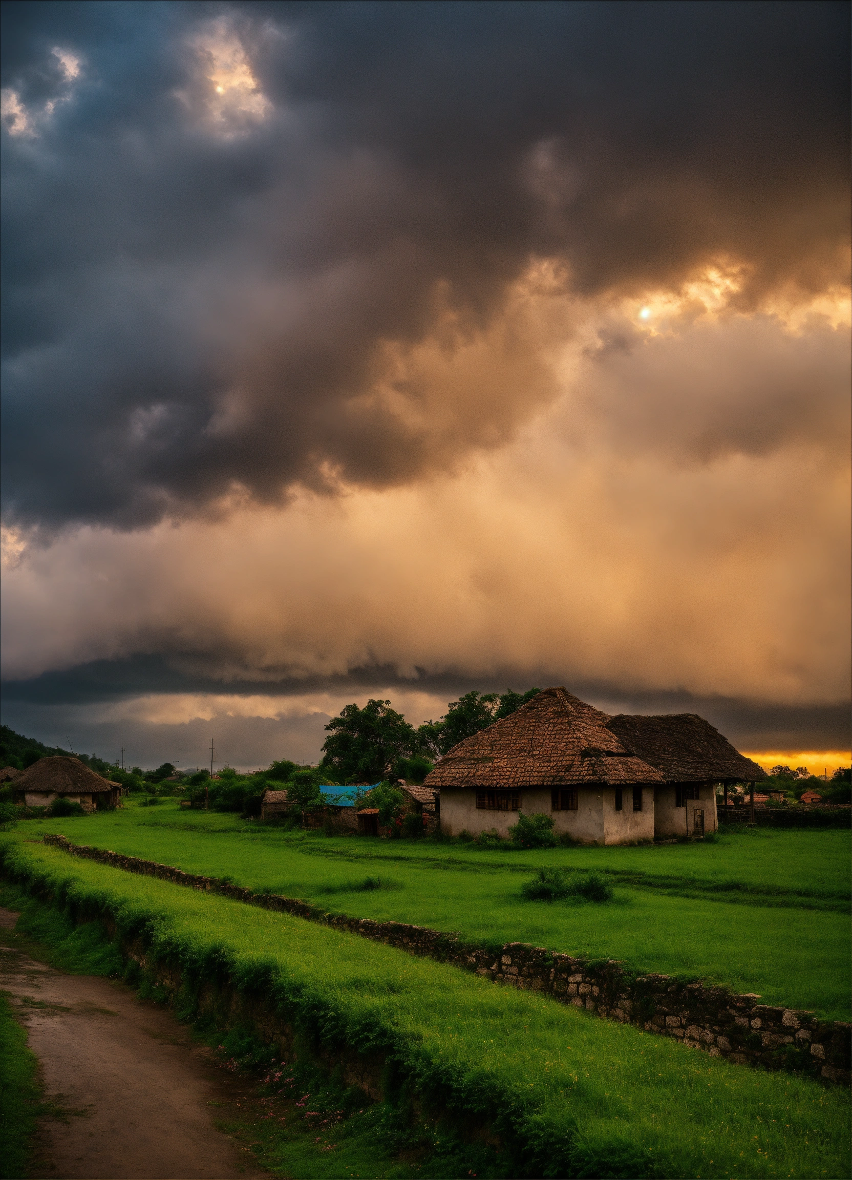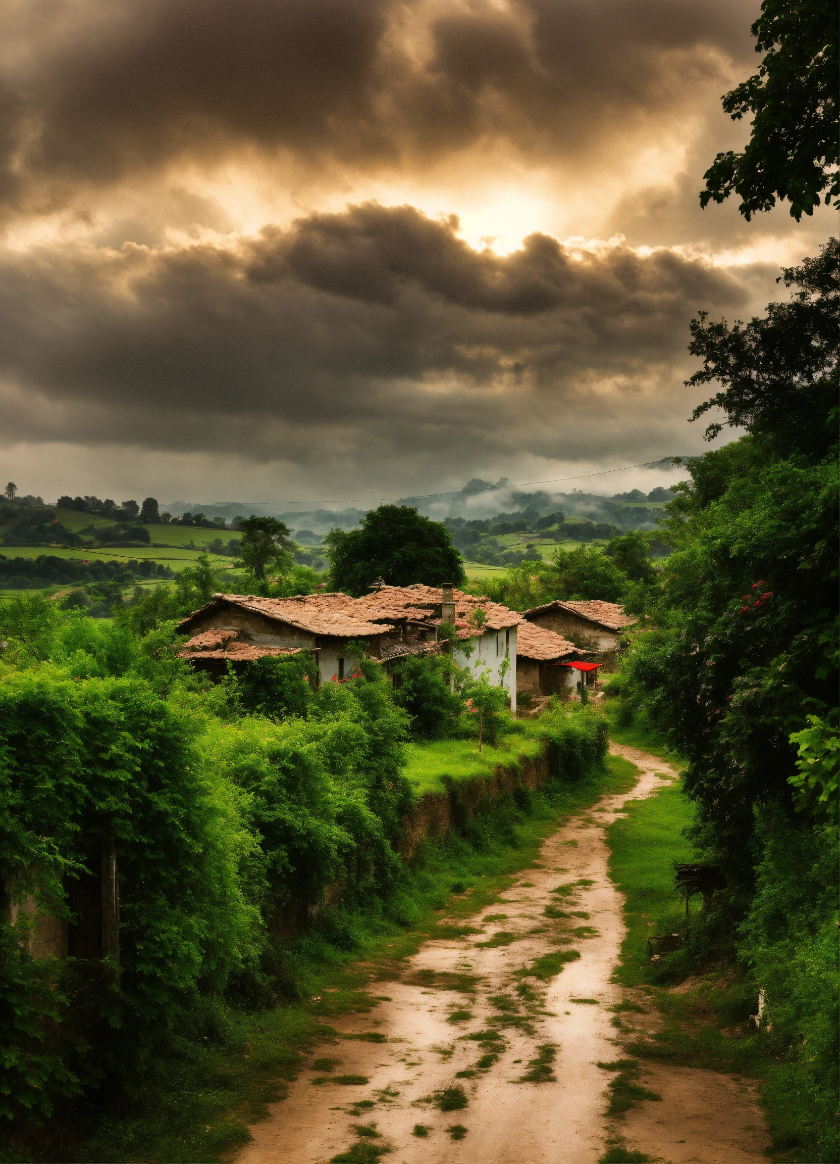 Cloudy scene in village
