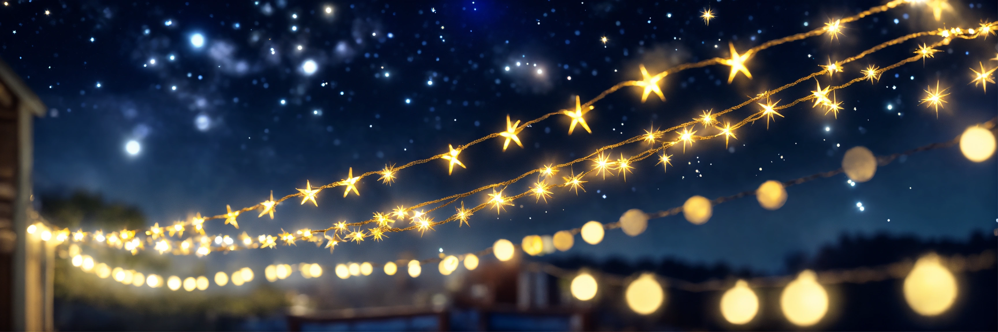 Shiny light garland on starry night