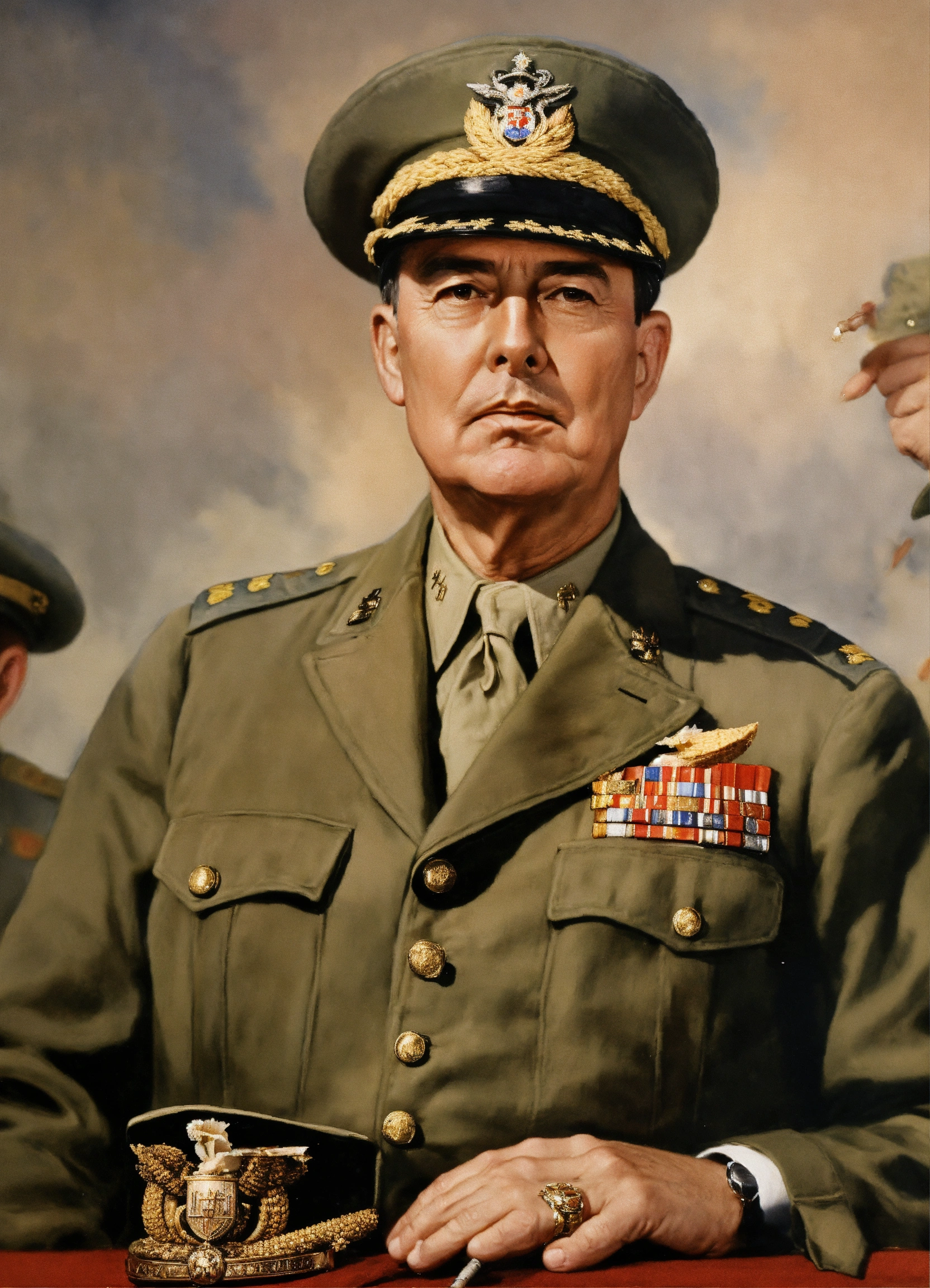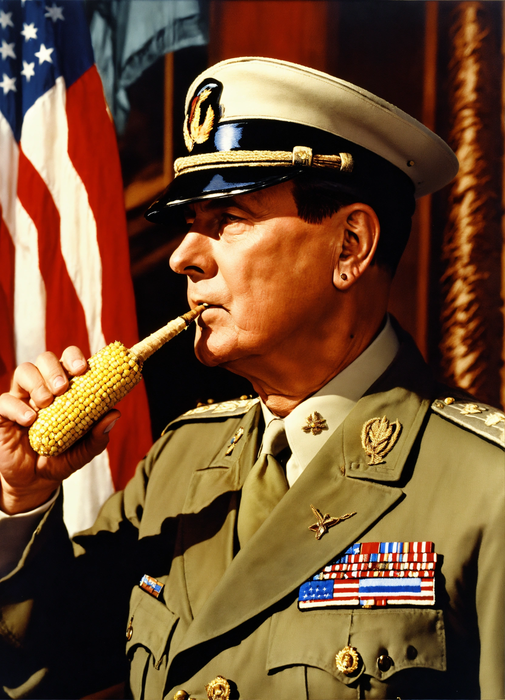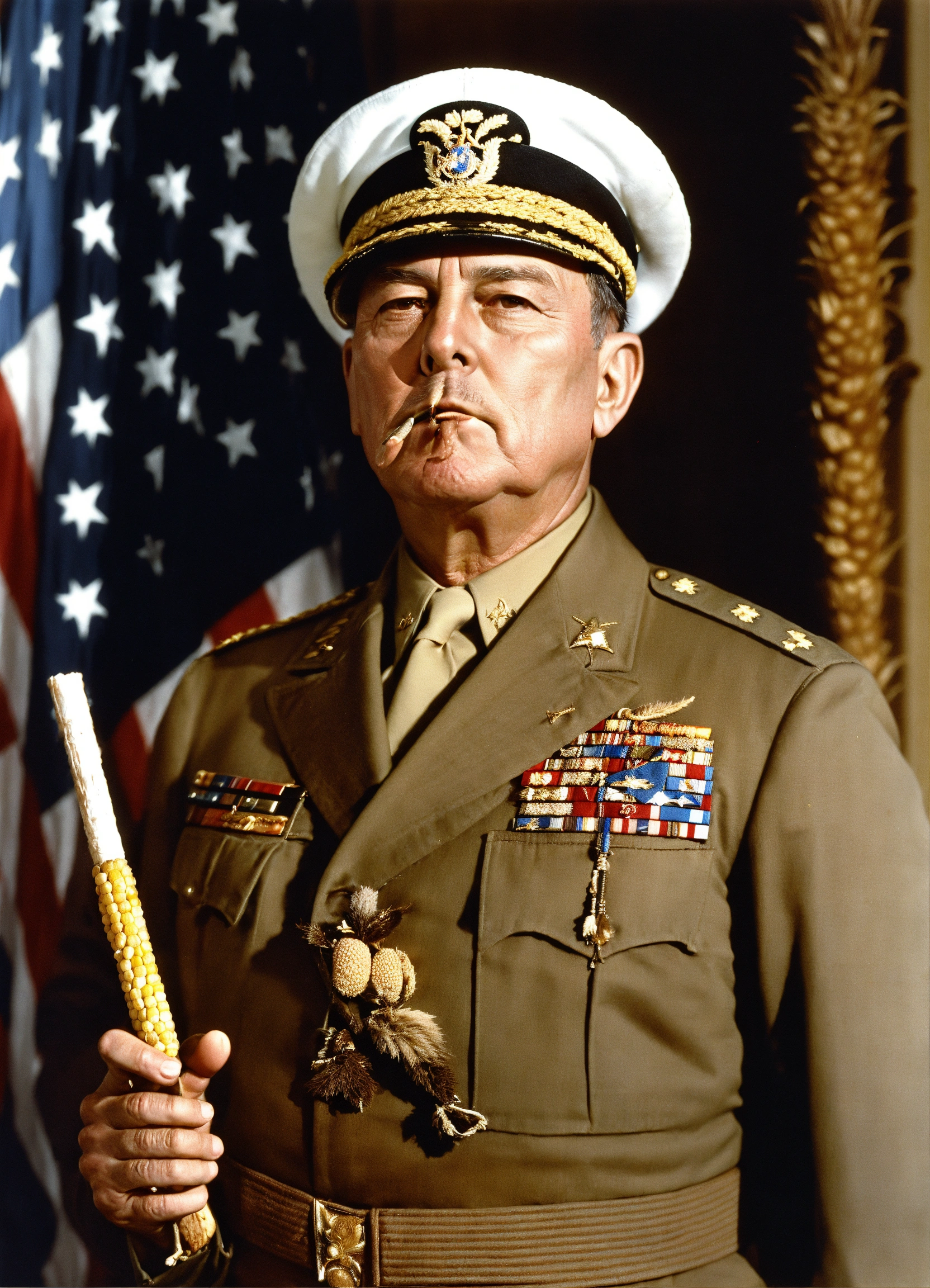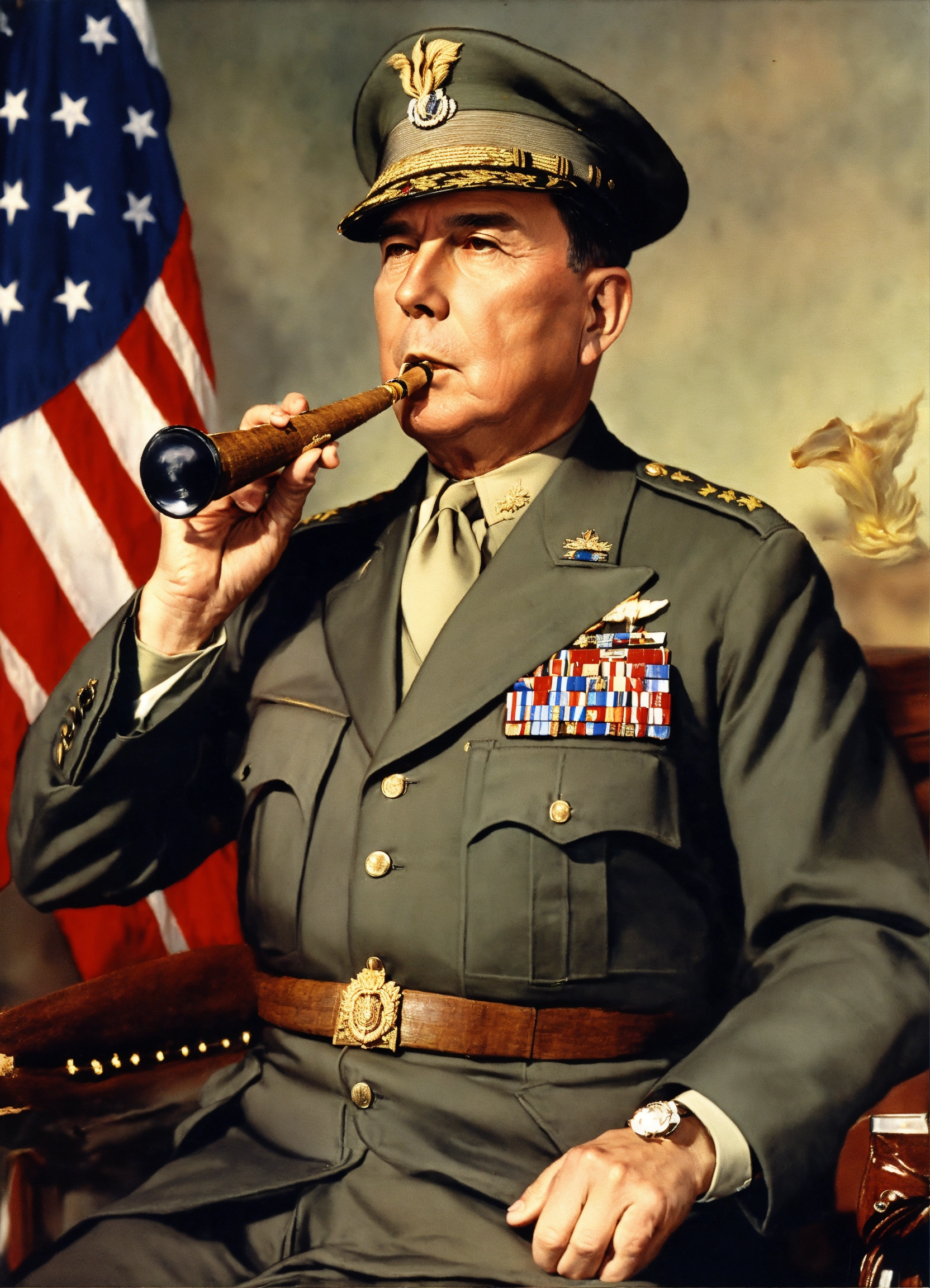 General douglas macarthur with a corncob pipe in his mouth being inaugurated as president of the united states