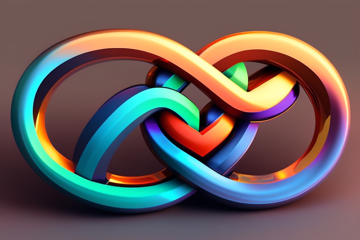Intertwined infinity symbol where one loop is slightly larger than the other, resembling two interconnected hearts. this reflects the idea of eternal and deep connections