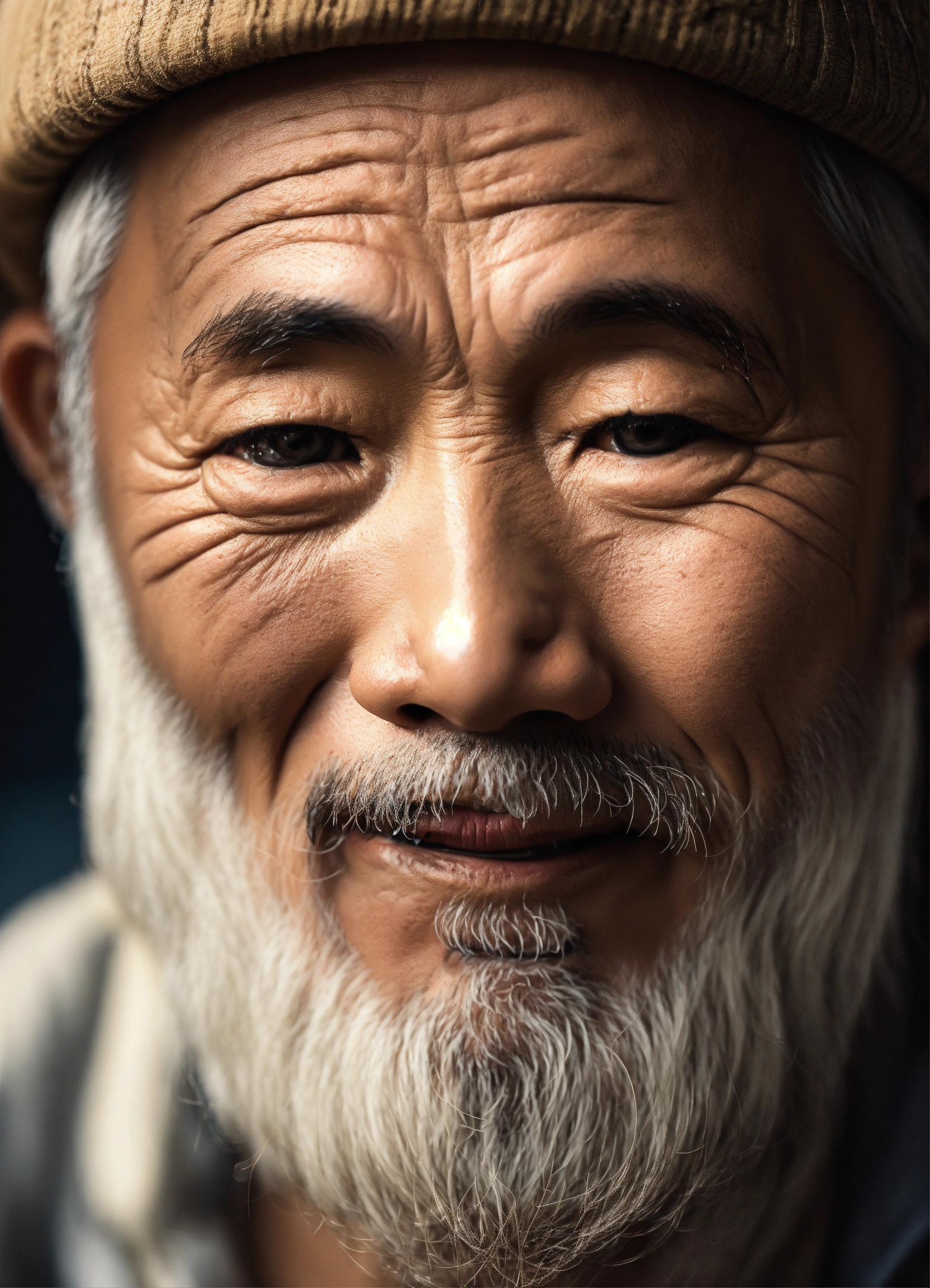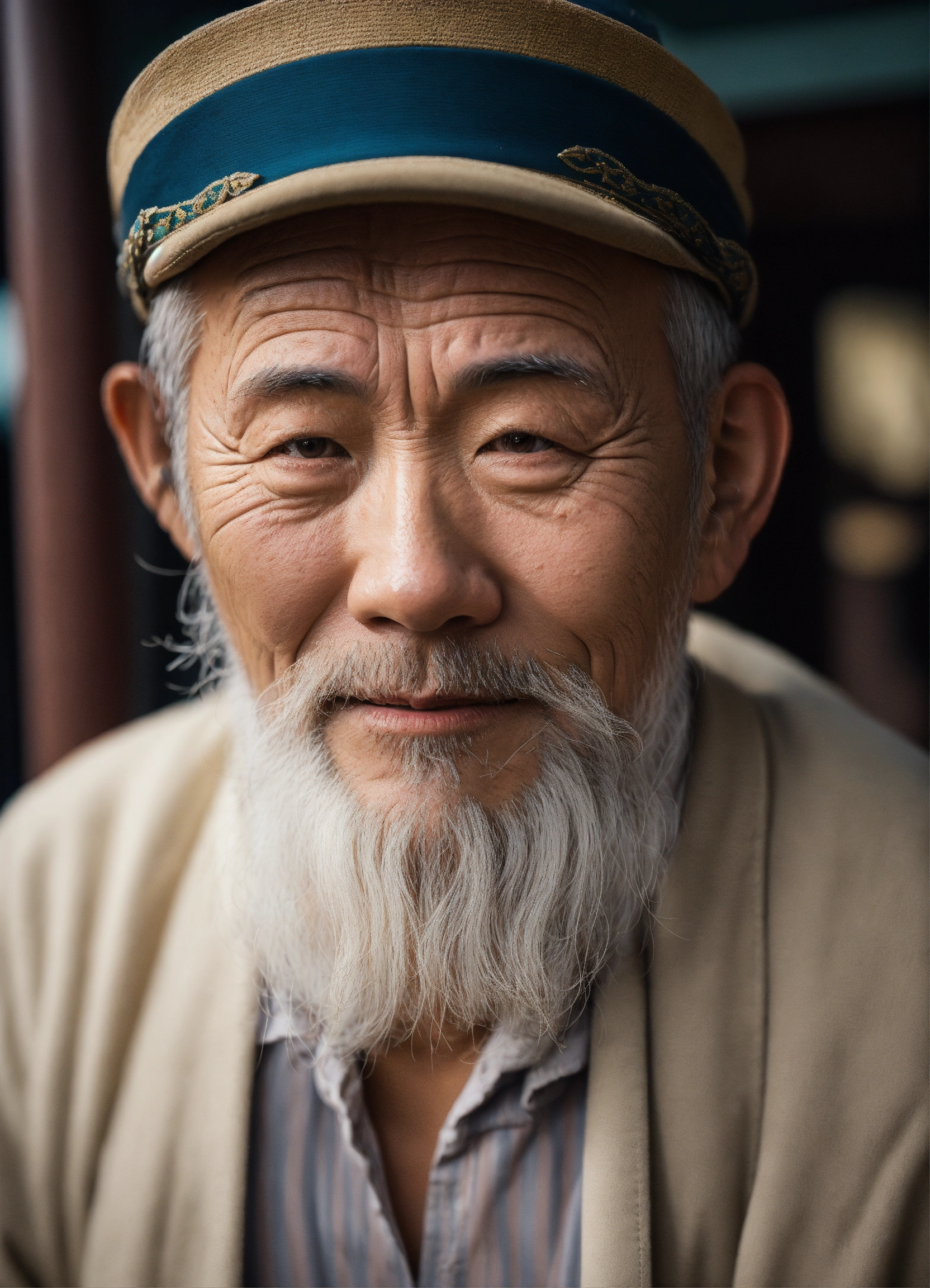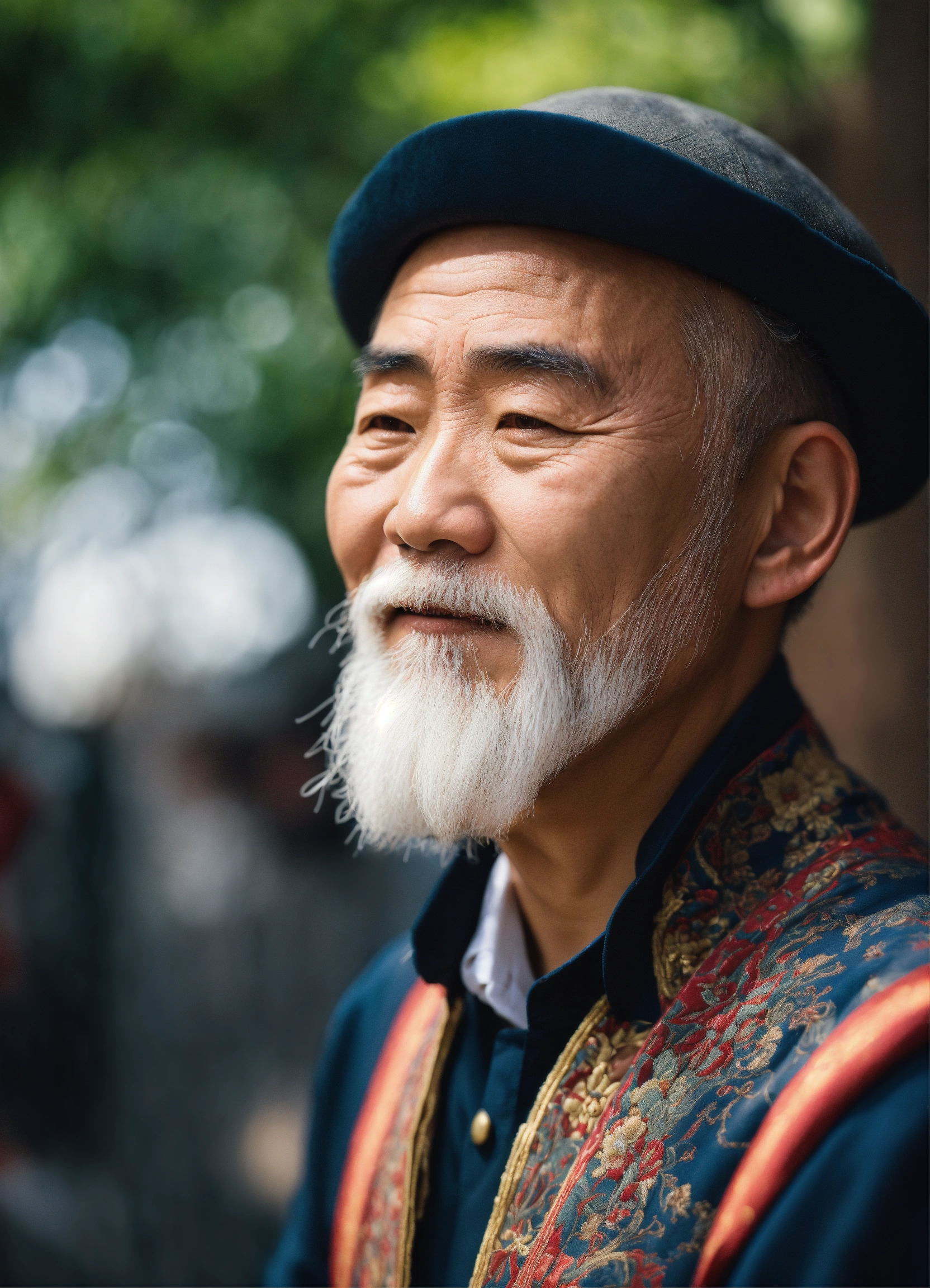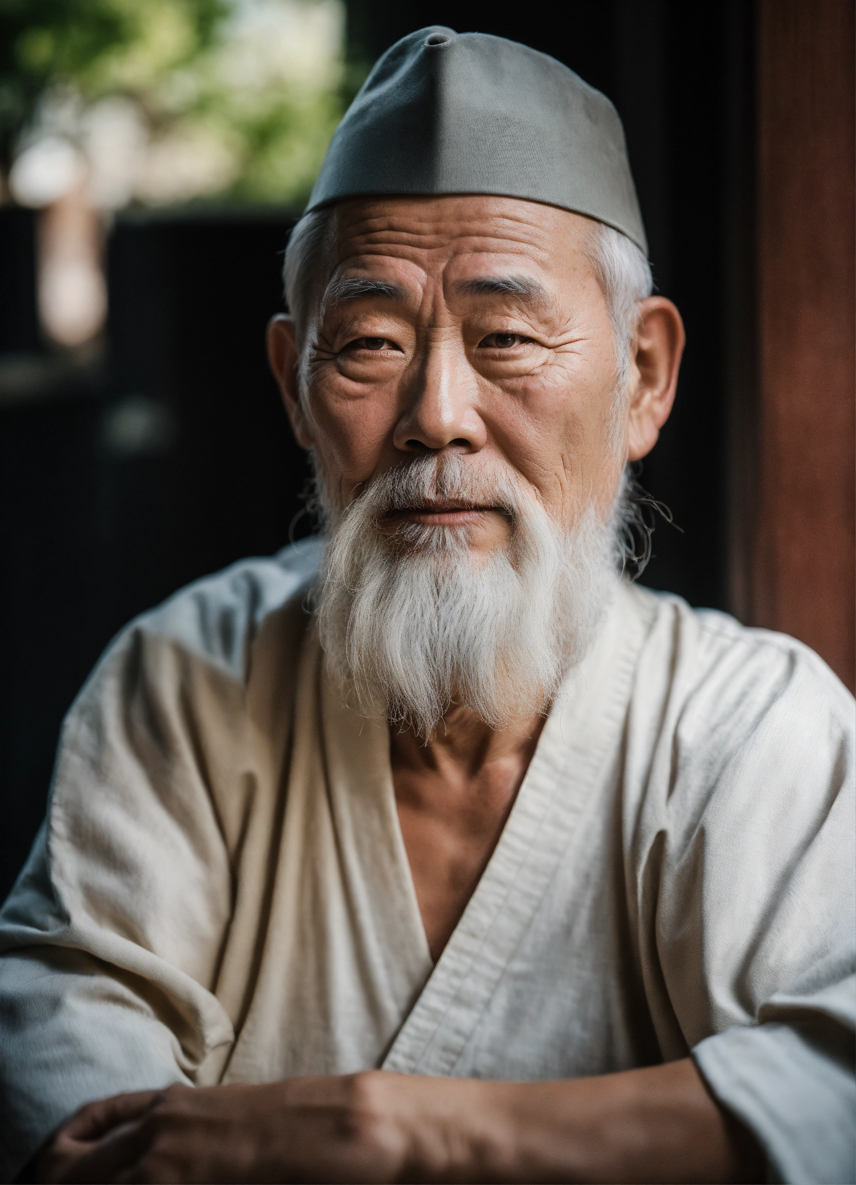 Un vieux homme chinois avec barbe blanche qui donne confiance