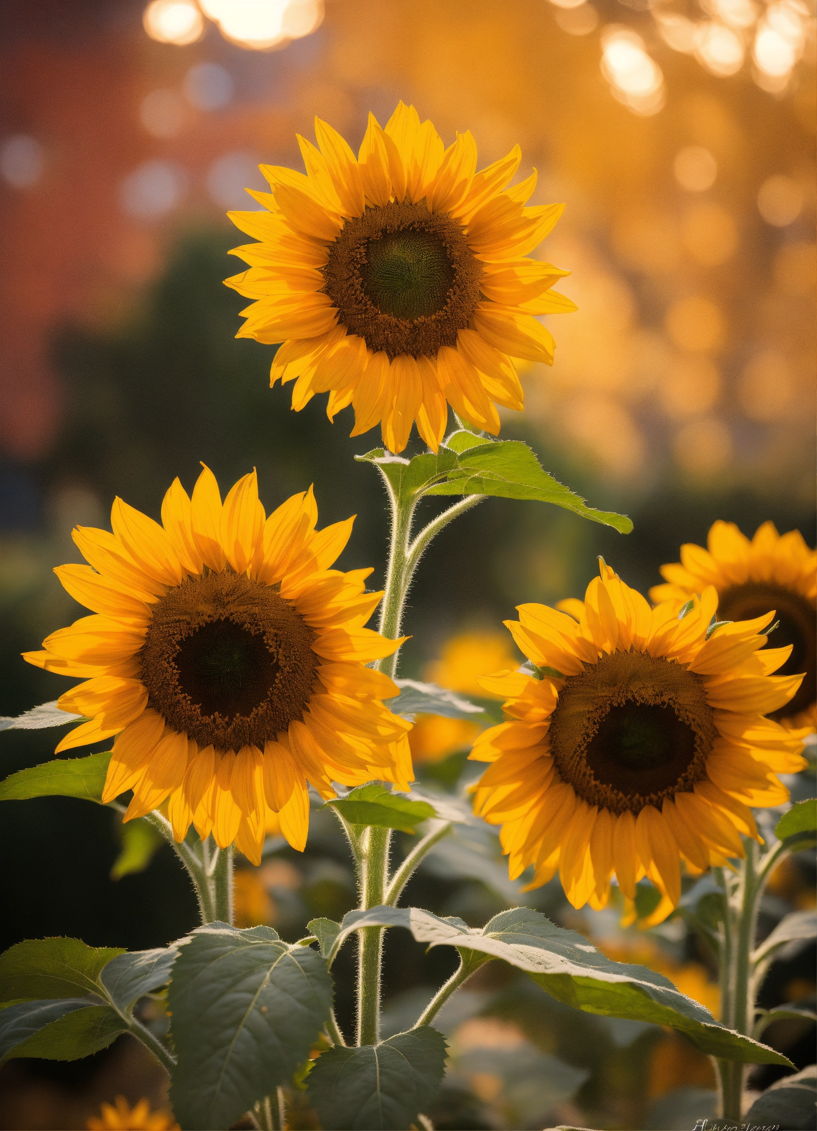Autumn sunflowers, elegant, luxury, clean, smooth, elegant, beautiful, highly detailed, sharp focus, studio photography, xf iq 4, 1 5 0 mp, 5 0 mm, iso 2 0 0, 1 / 1 6 0 s, realistic, natural light, octane render, adobe lightroom, rule of thirds, symmetrical balance, depth layering, polarizing filter, sense of depth, ai enhanced
