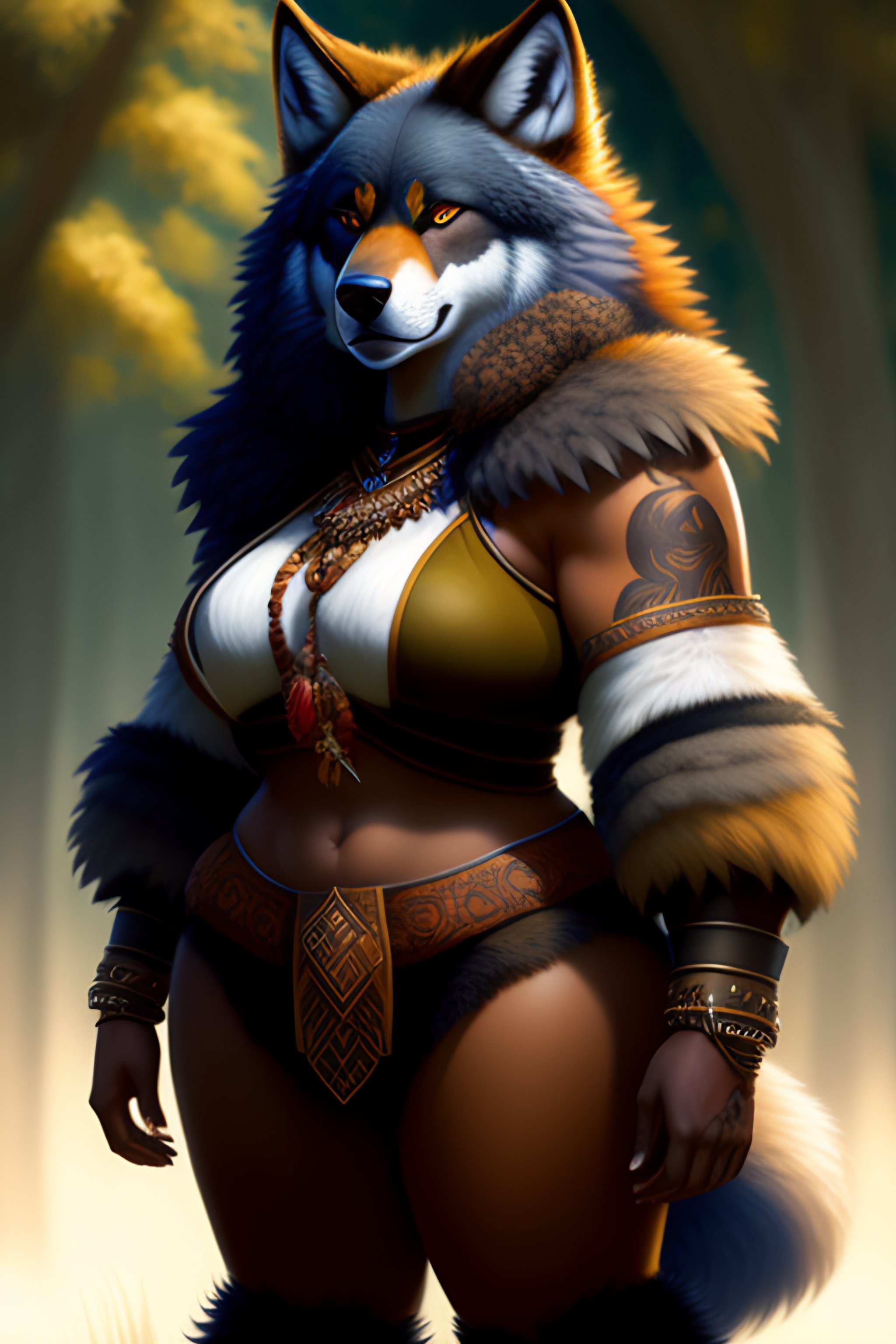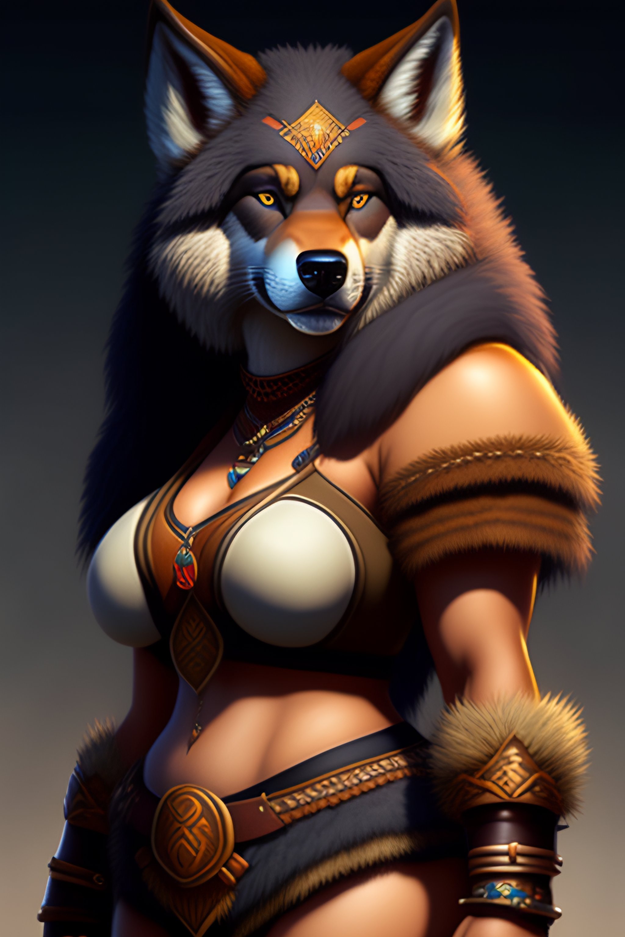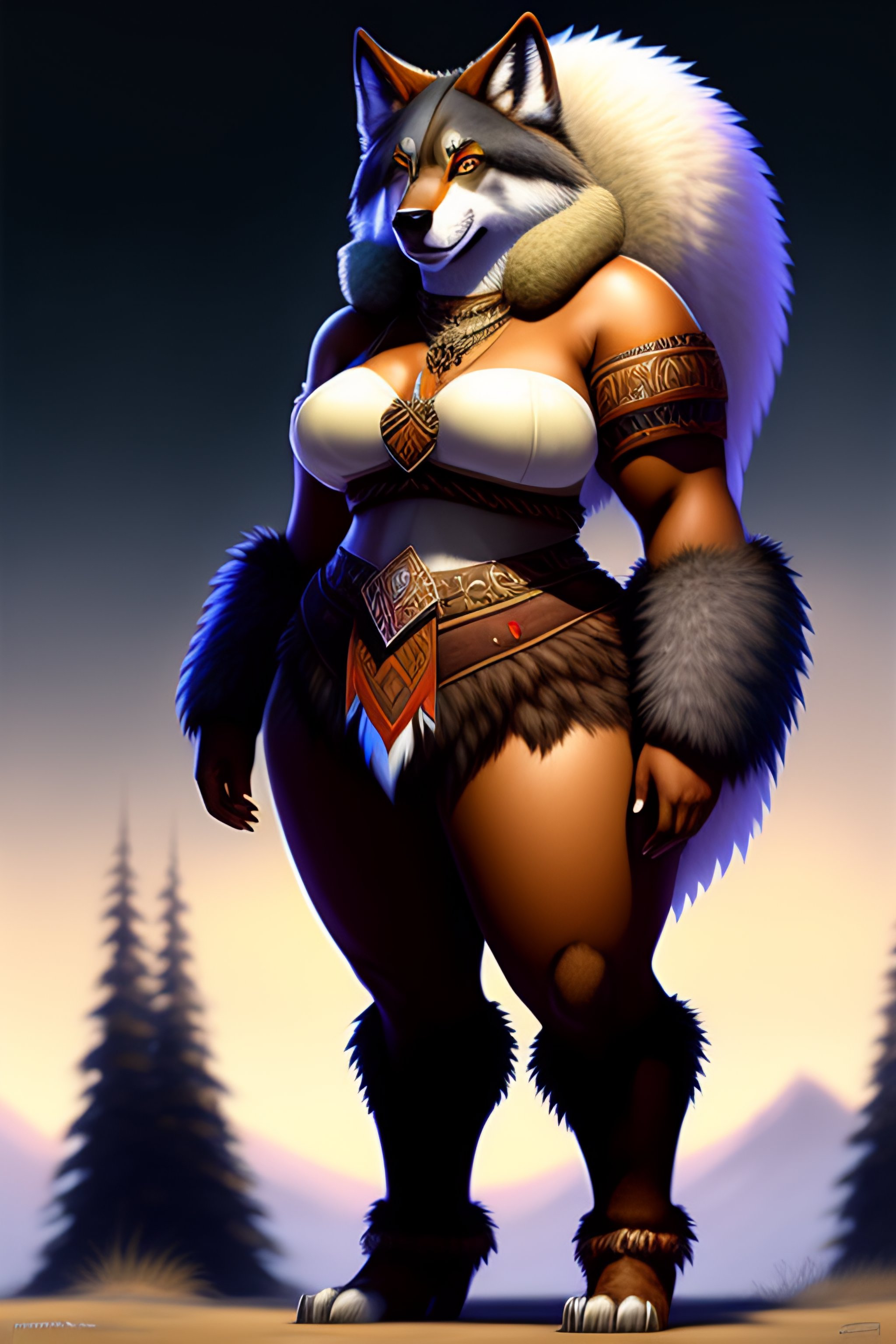 Female anthro wolf fursona, worgen, werewolf, furry, covered entirely in fur, cute, beautiful, big hands, plus size, wide hips, wolf female tribal warrior, character design, fluffy, concept art, painted in the style of artists james gurney, balto